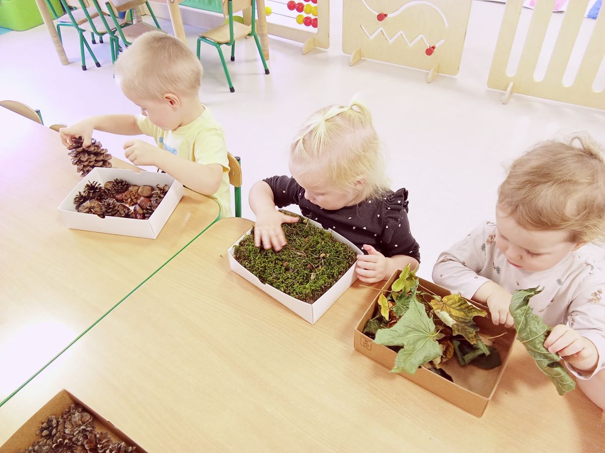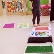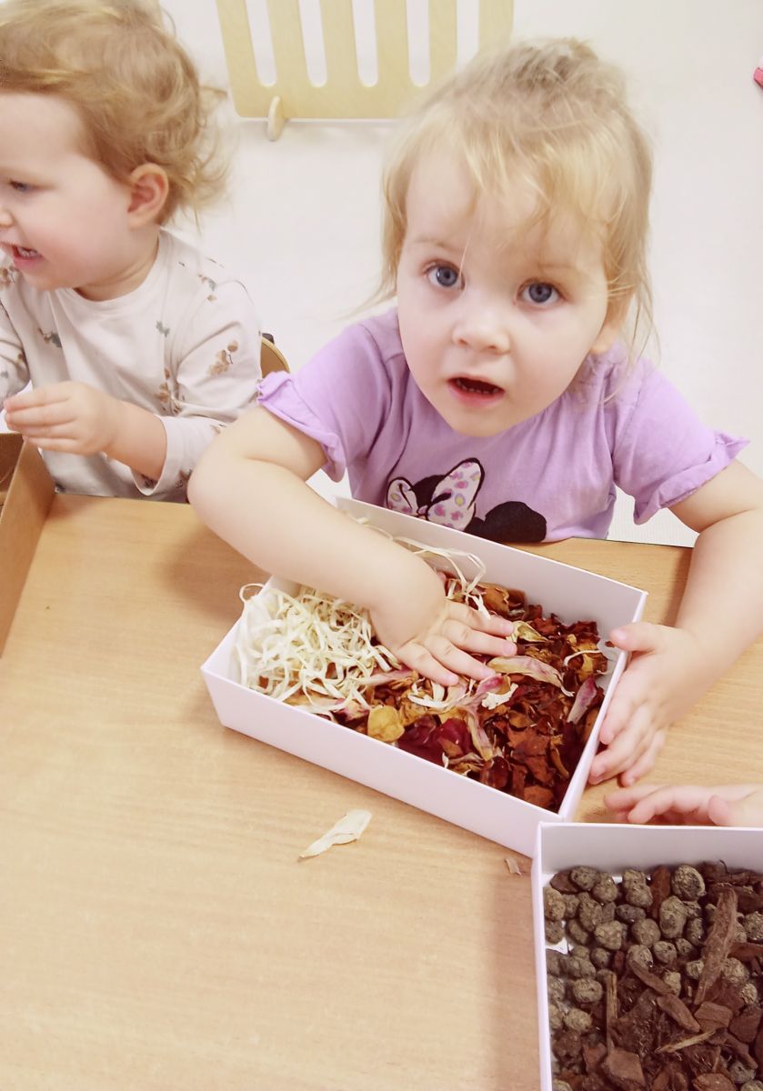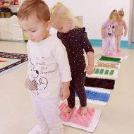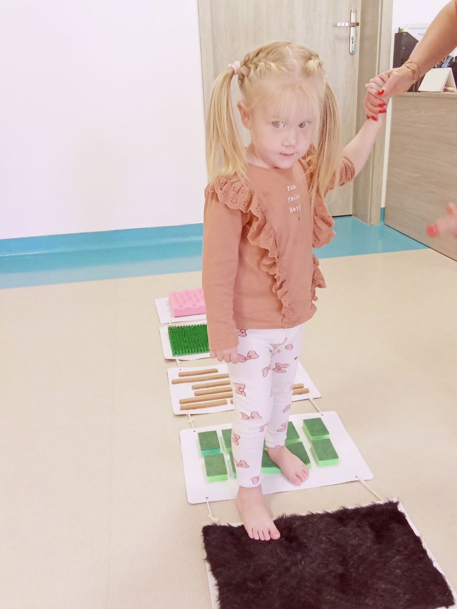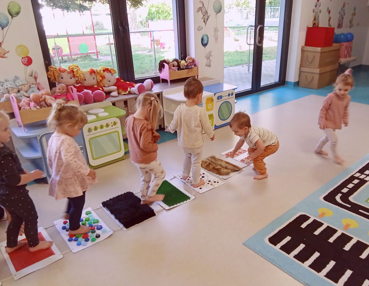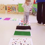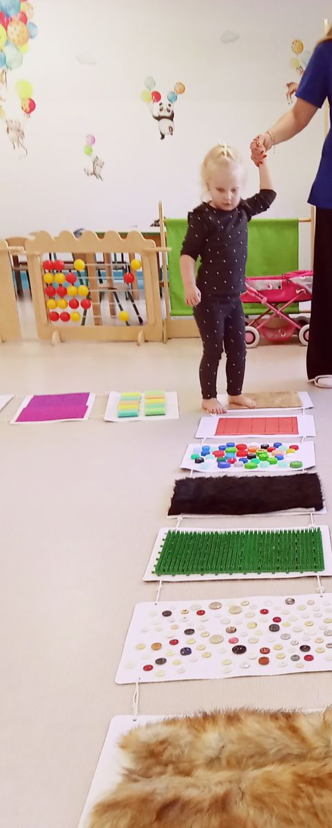 Zajęcia z pudełkami sensorycznymi oraz spacer po ścieżce sensorycznej to świetna zabawa mająca na celu stymulowanie zmysłów dzieci (wzroku, słuchu, dotyku, węchu).