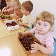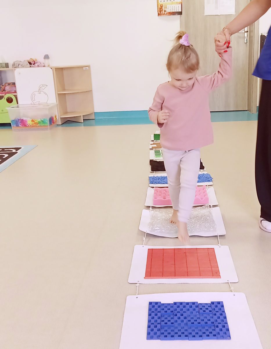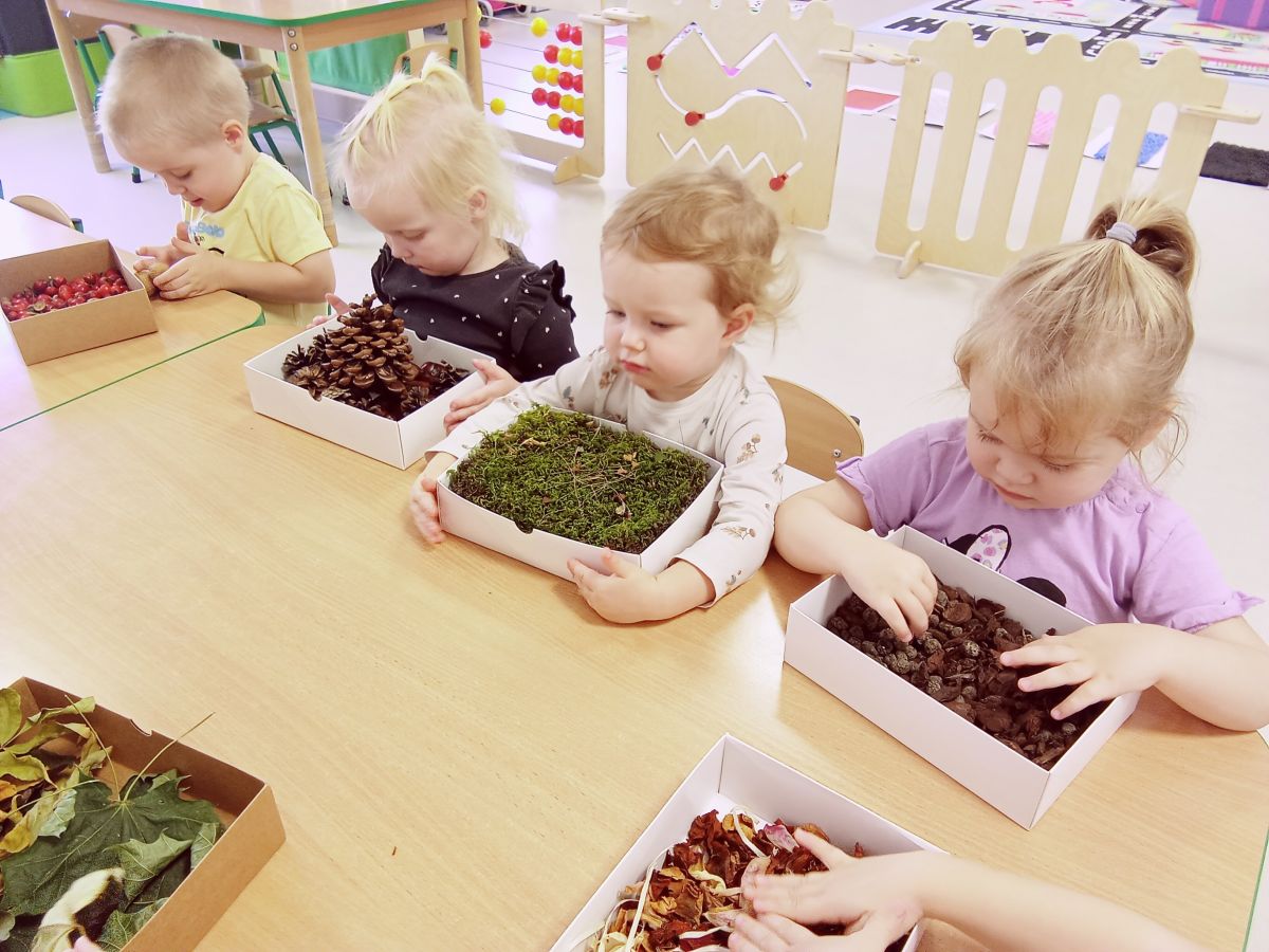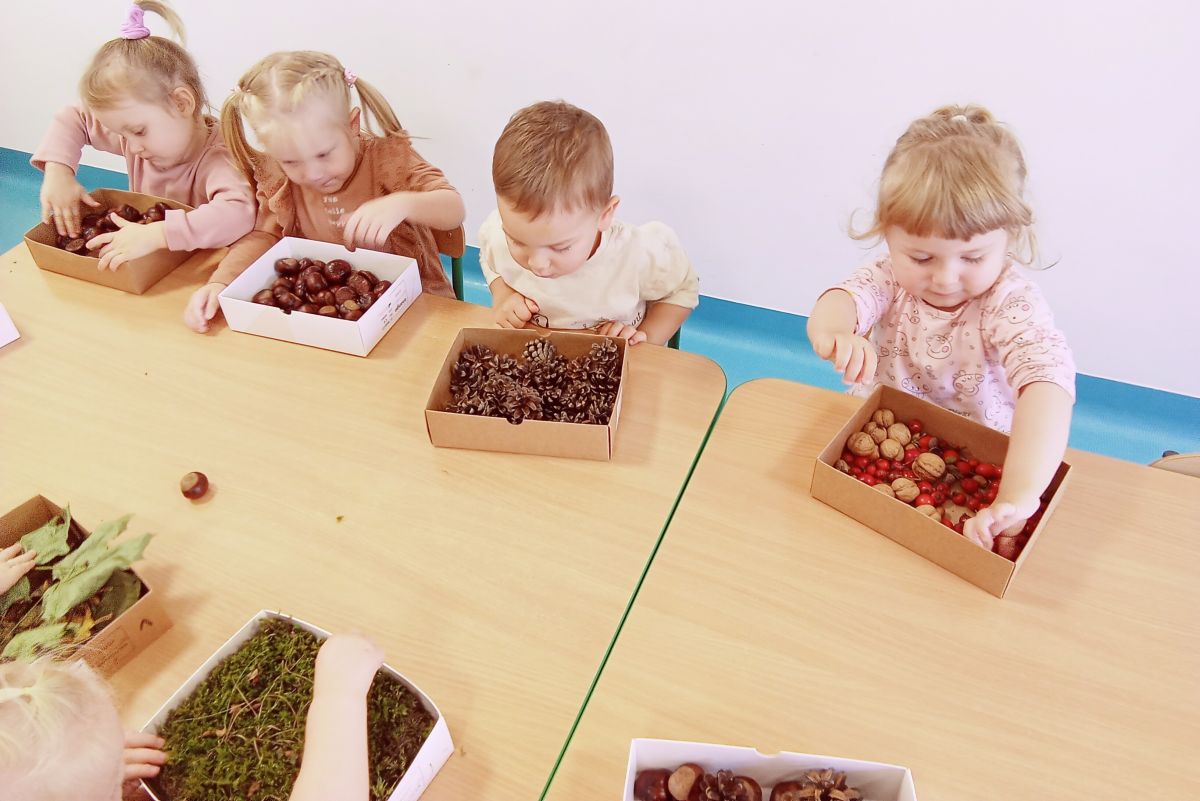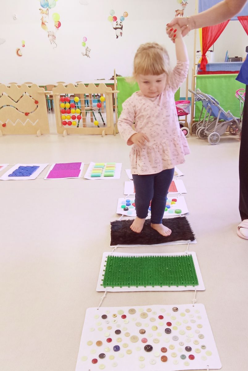 Zajęcia z pudełkami sensorycznymi oraz spacer po ścieżce sensorycznej to świetna zabawa mająca na celu stymulowanie zmysłów dzieci (wzroku, słuchu, dotyku, węchu).