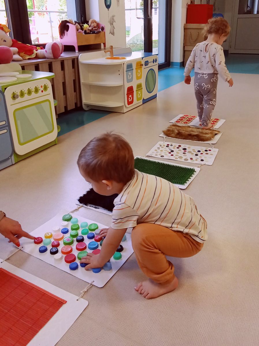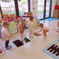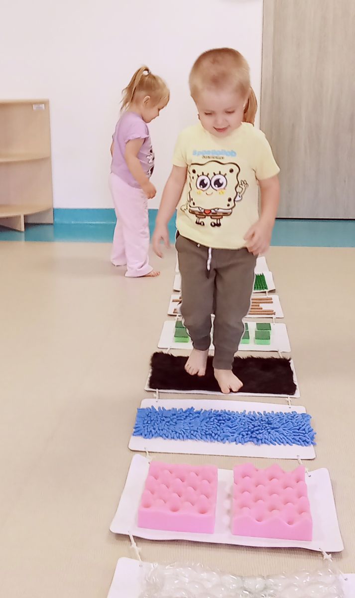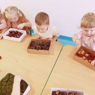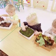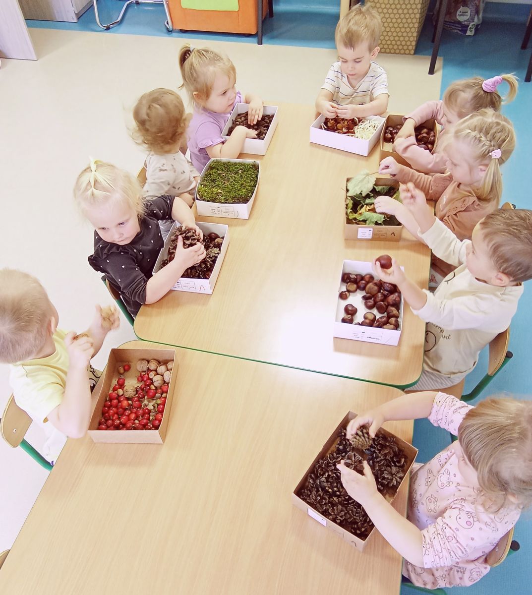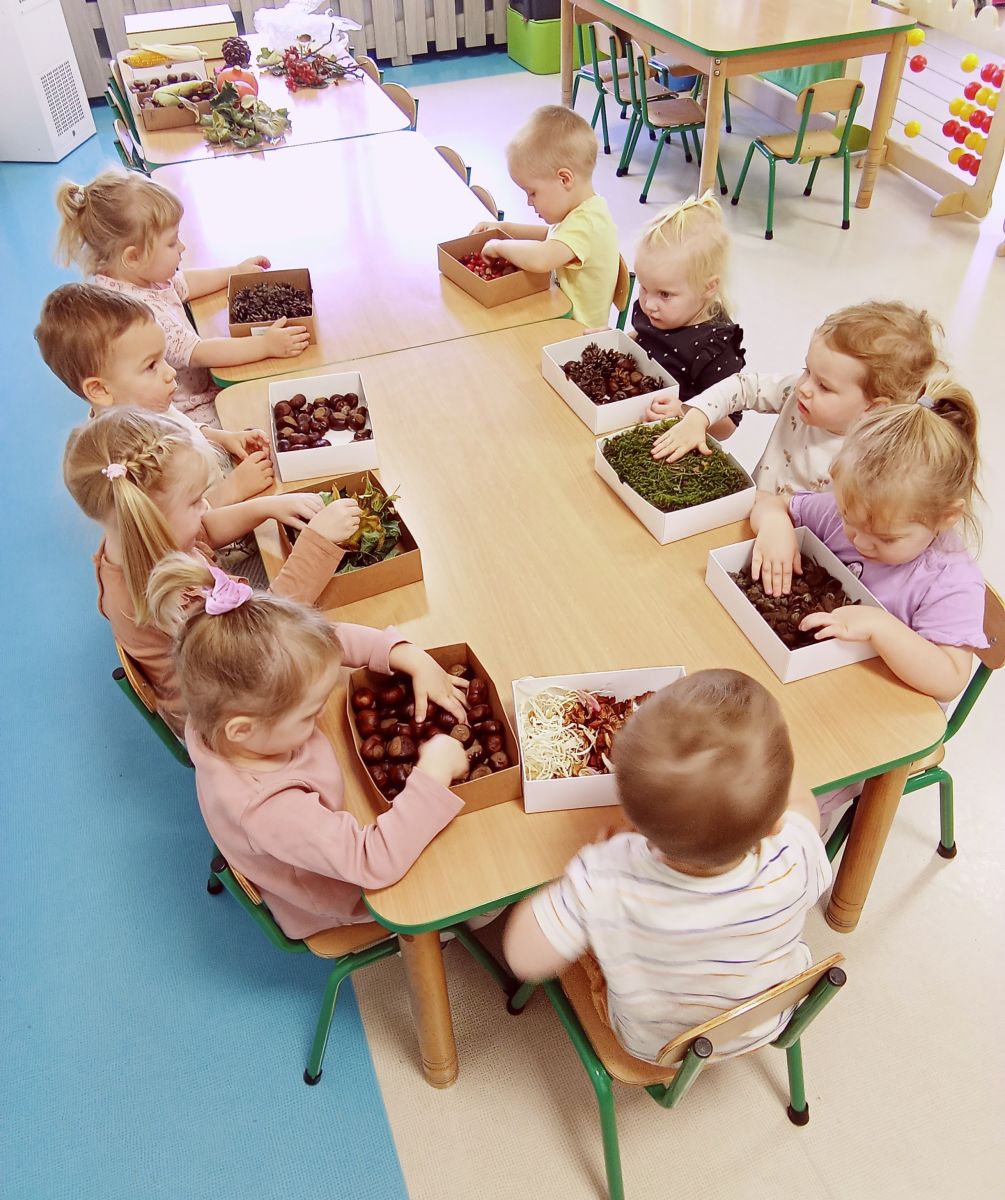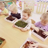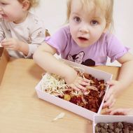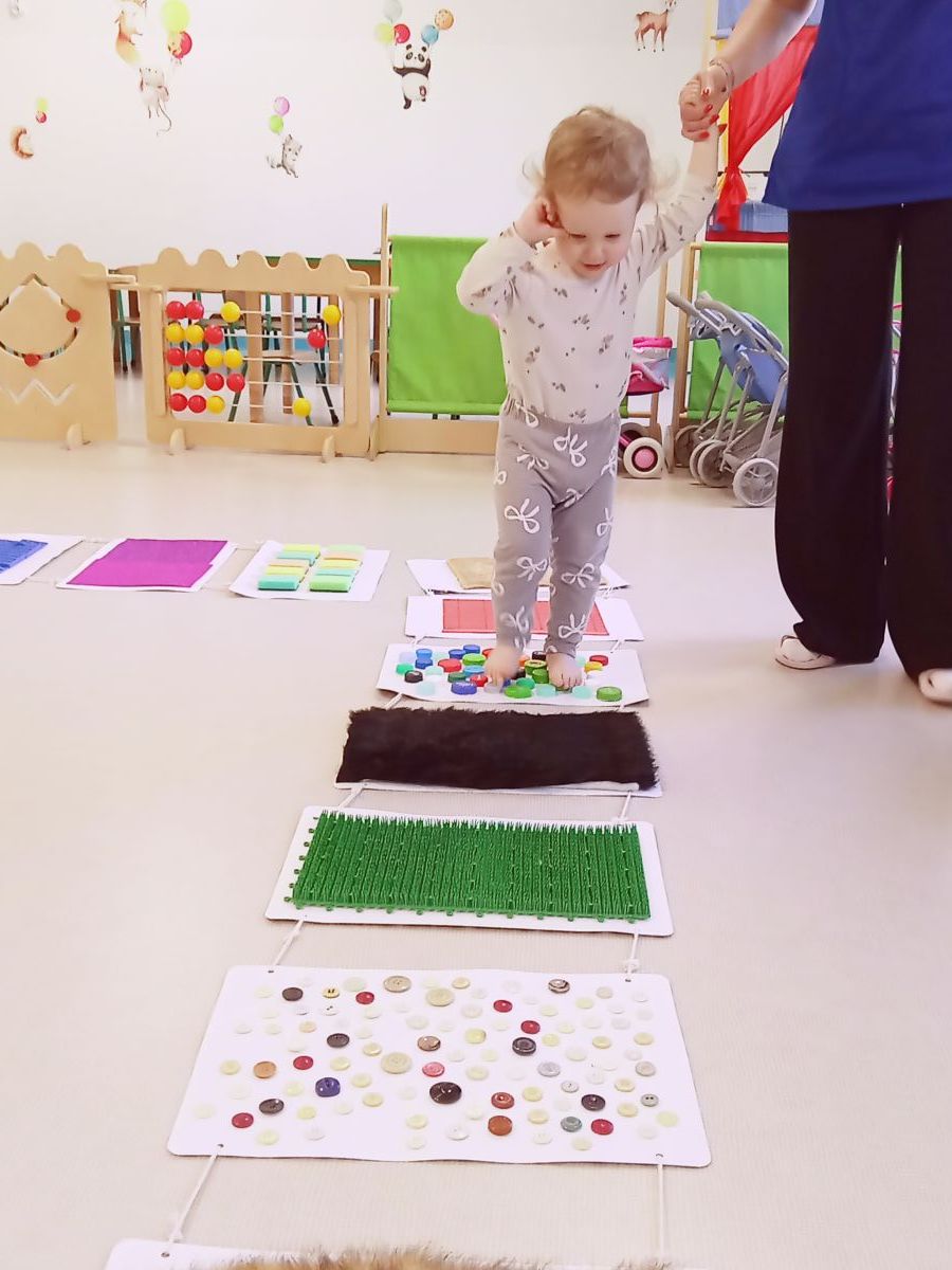 Zajęcia z pudełkami sensorycznymi oraz spacer po ścieżce sensorycznej to świetna zabawa mająca na celu stymulowanie zmysłów dzieci (wzroku, słuchu, dotyku, węchu).