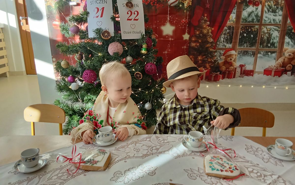 Z okazji Dnia Babci i Dnia Dziadka, dzieci wzięły udział w zabawie inscenizowanej pt.: "Czas na herbatkę z Babcią i z Dziadkiem". W rolach głównych wystąpili: Babcia i Dziadek.