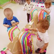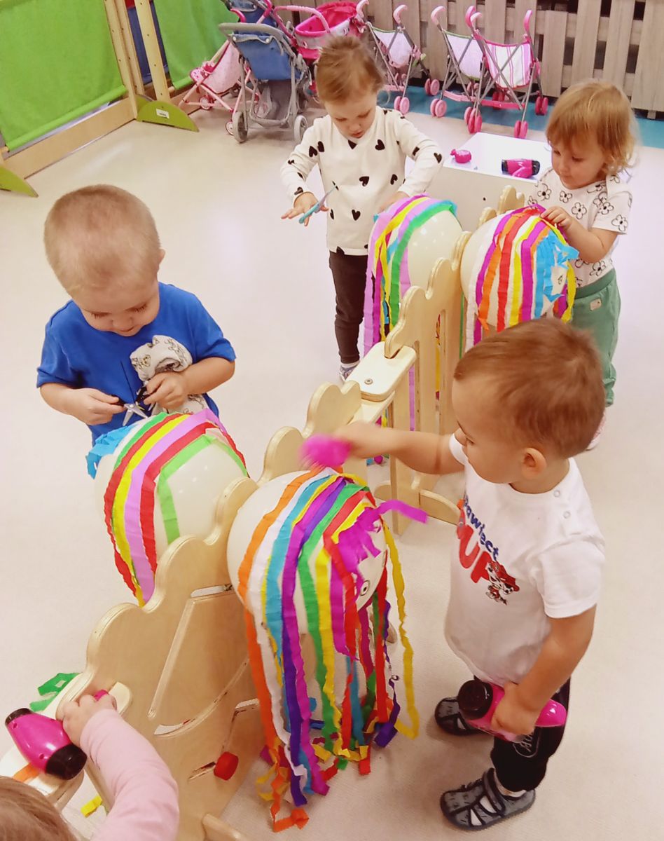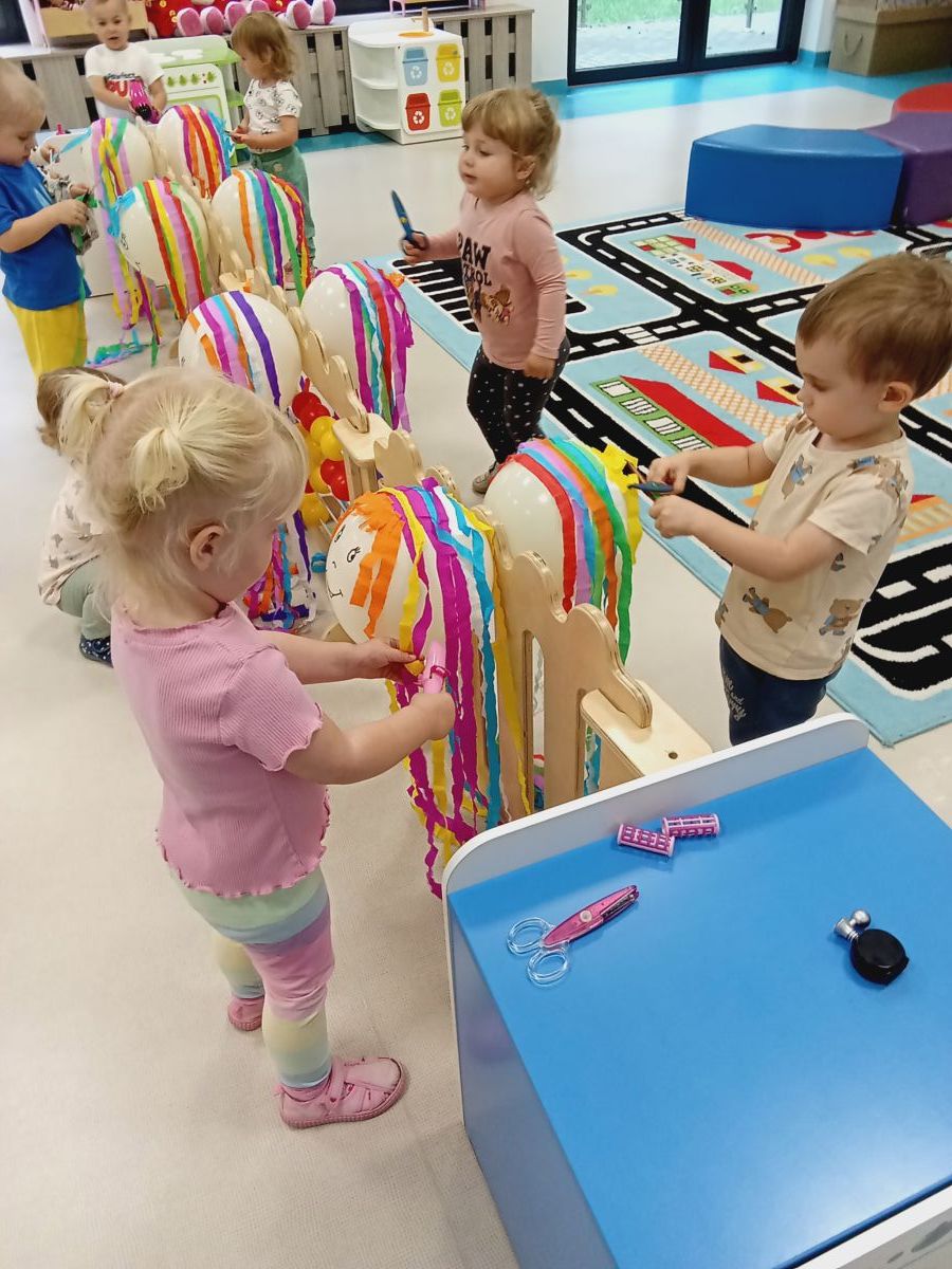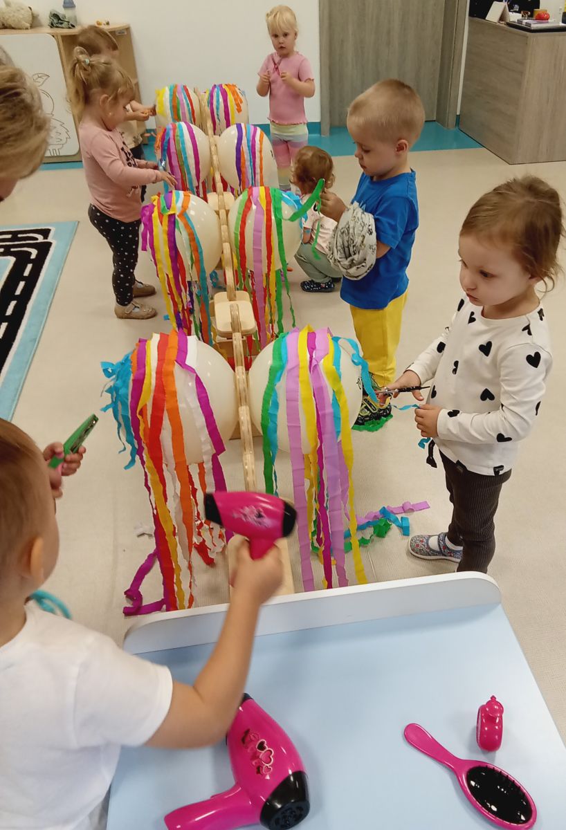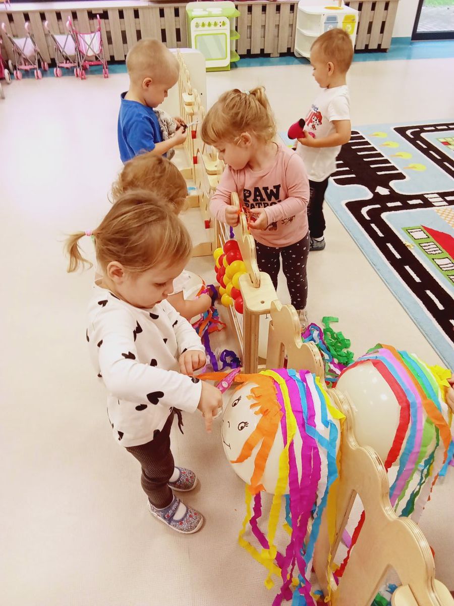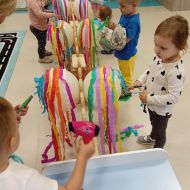 Dzisiejsza zabawa miała na celu wspierać sprawność małych rączek.