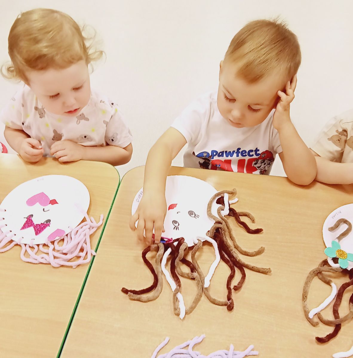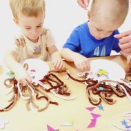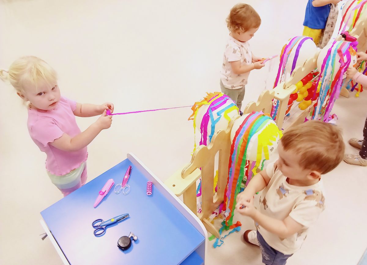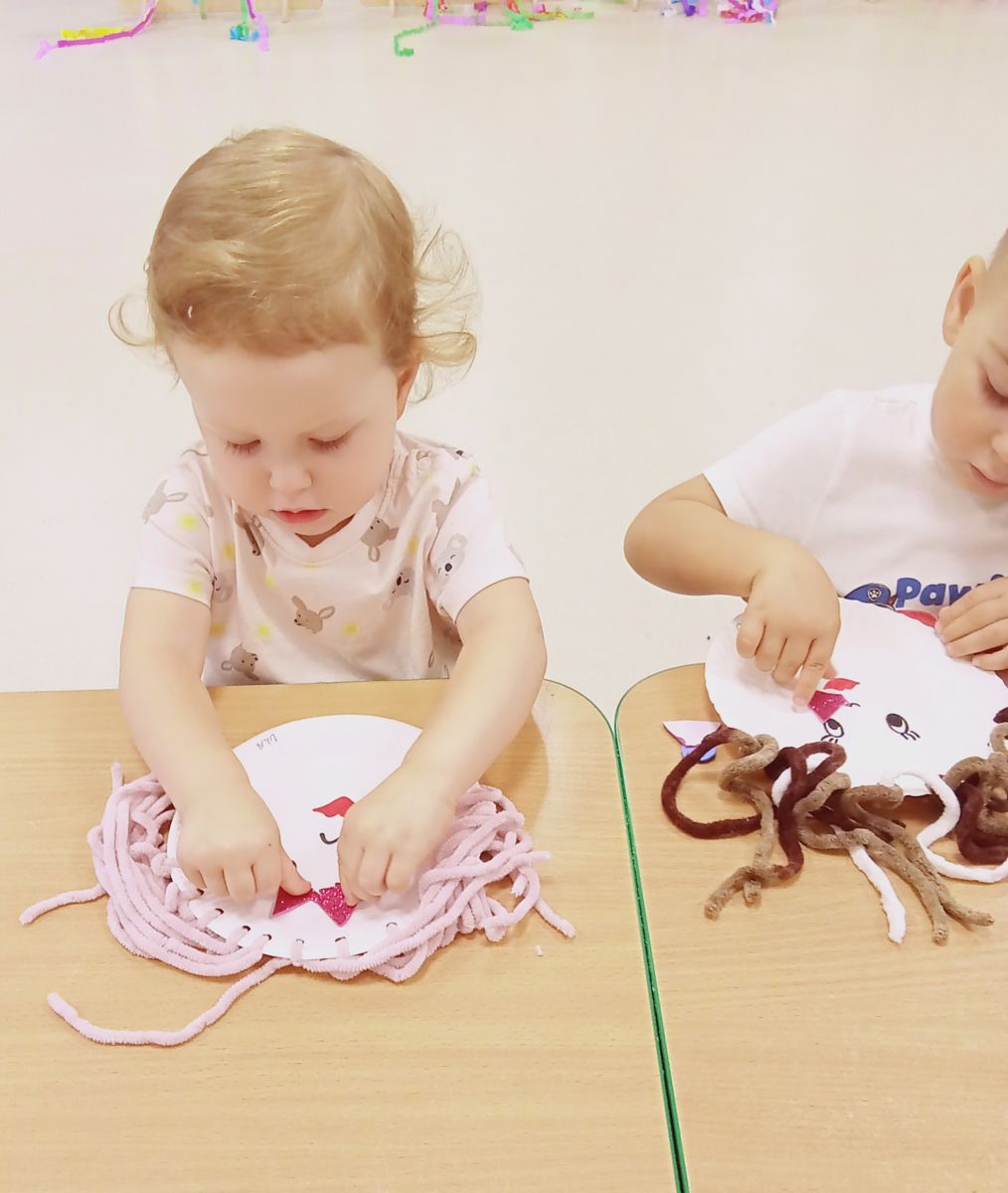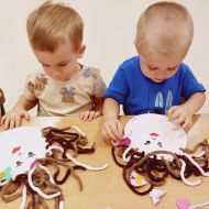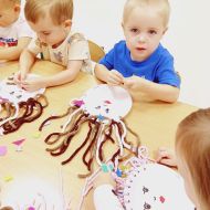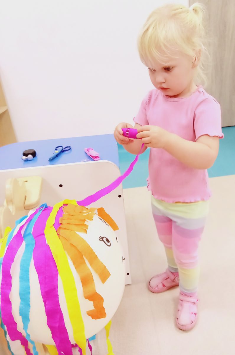 Dzisiejsza zabawa miała na celu wspierać sprawność małych rączek.