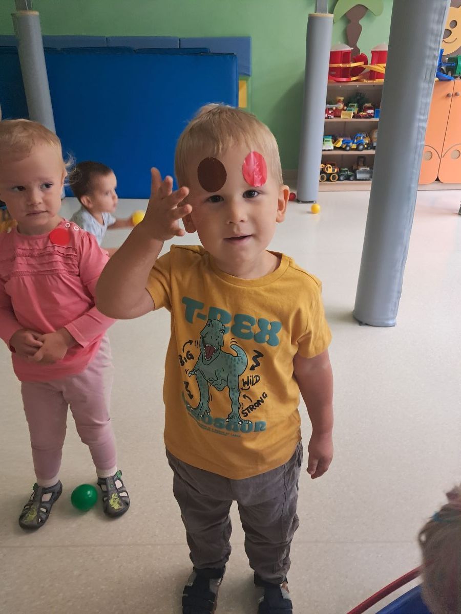 Opublikowano: śr., 10/02/2024 - 14:32 DZIEŃ KROPKI Międzynarodowy Dzień Kropki to wspaniały moment na rozmaite zabawy tematyczne. Starszaczki poznawały piosenki i wierszyki o kropce, turlały i rzucały kolorowymi piłeczkami oraz zdobiły się wzajemnie kropkami w różnych rozmiarach.