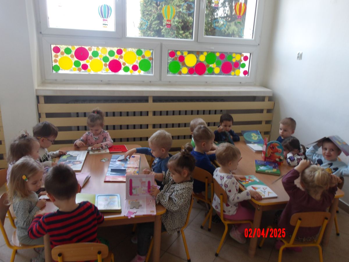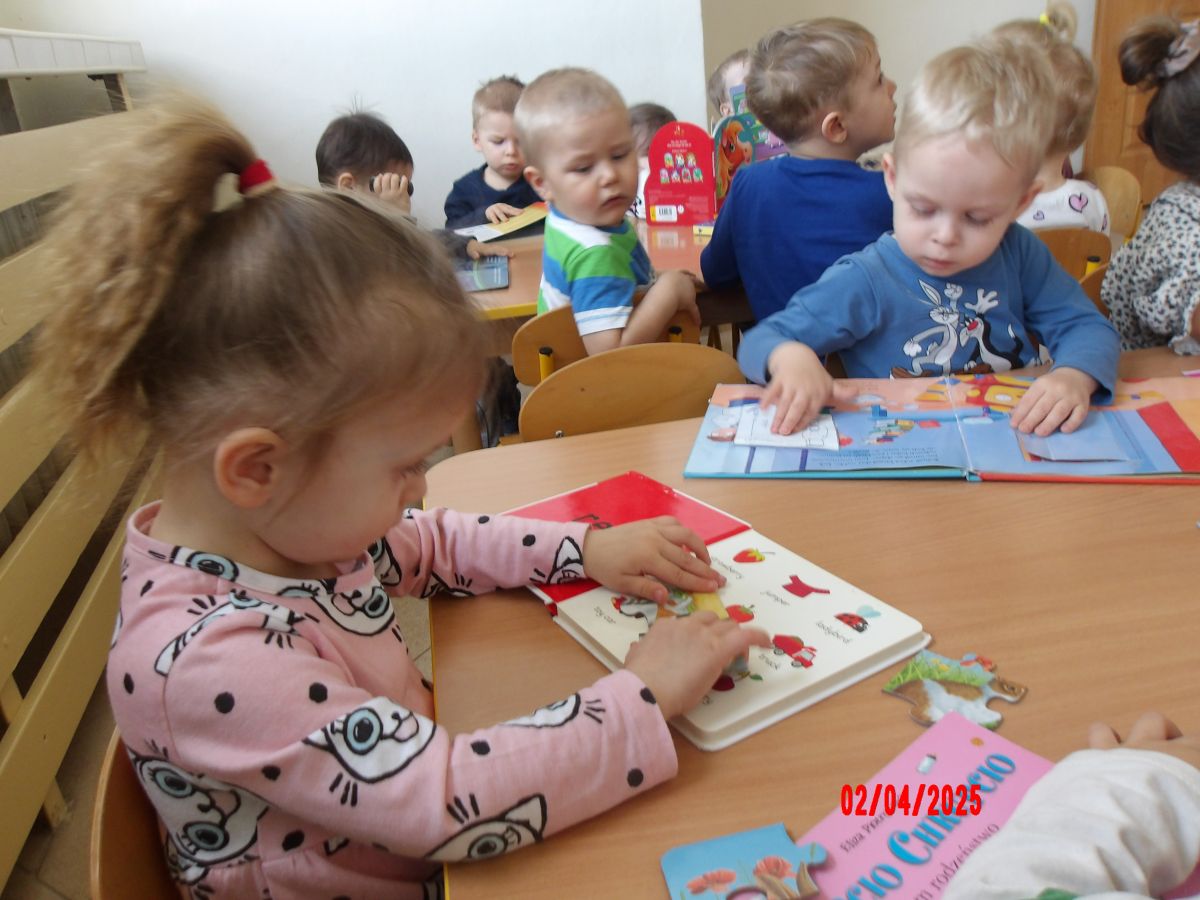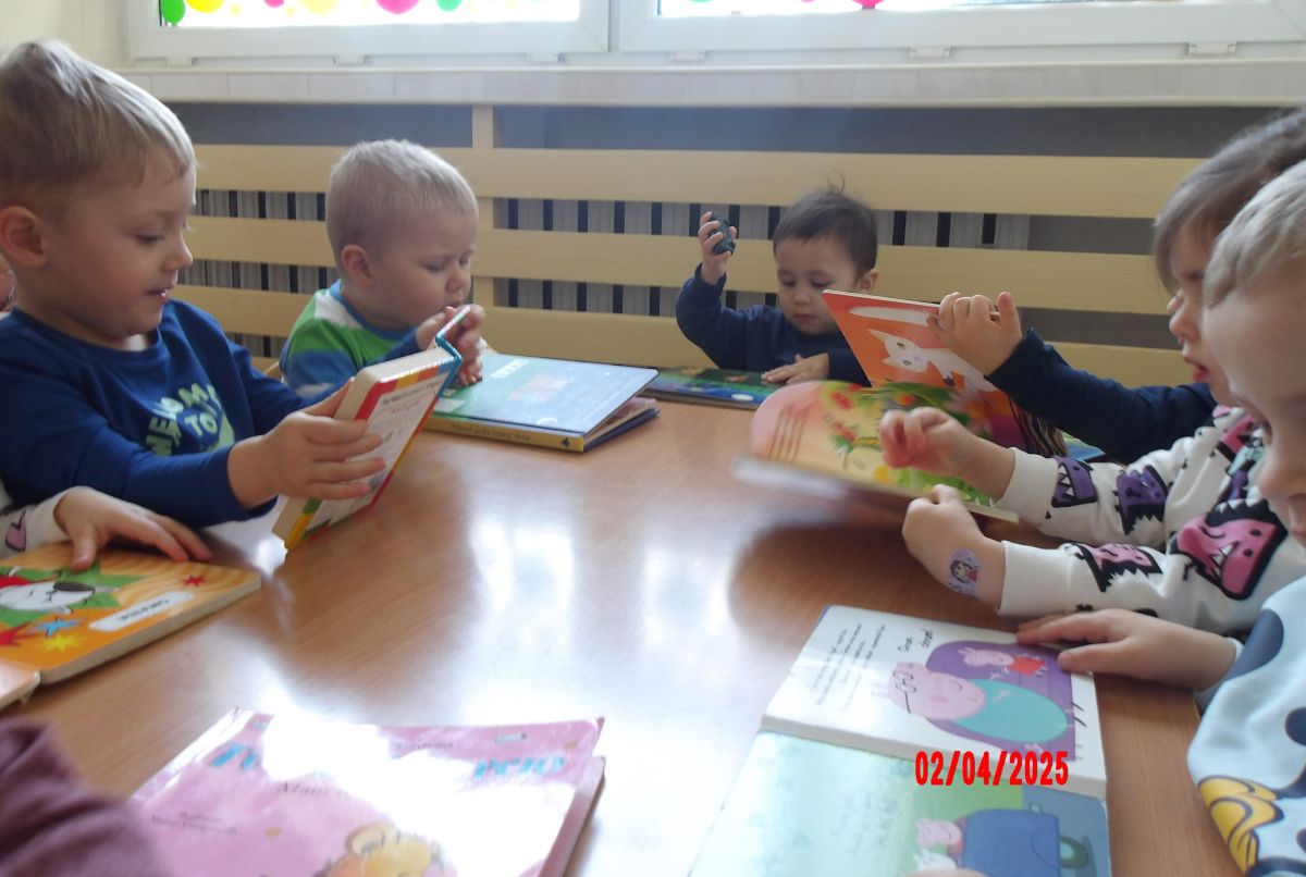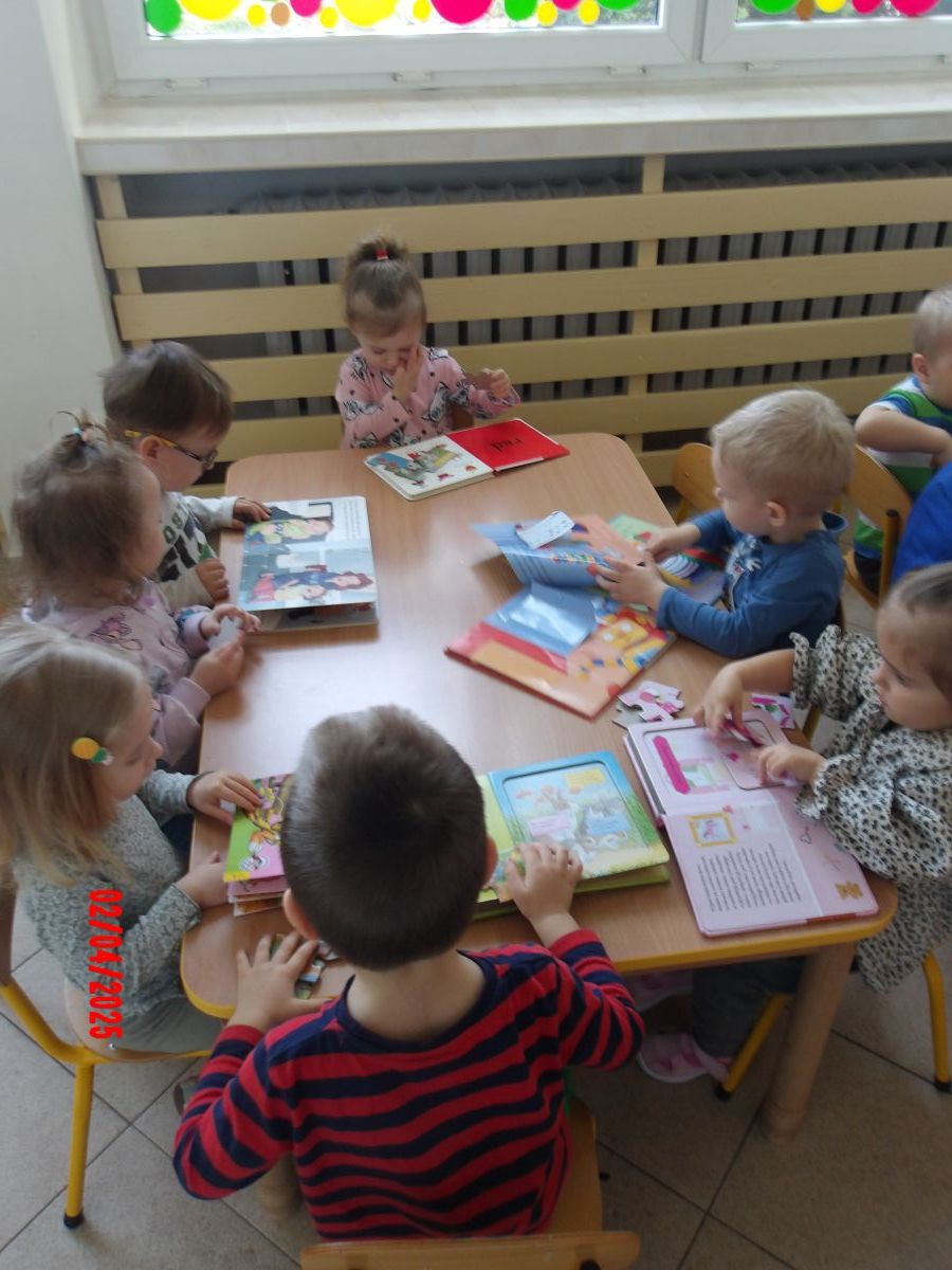 Opublikowano: śr., 04/02/2025 - 14:37 Promując Dzień Książki, Średniaczki oglądały mnóstwo książeczek. Szukały w nich postaci oraz zwierząt. Ciekawość dzieci została rozbudzona poprzez książeczki z puzzlami w środku.