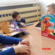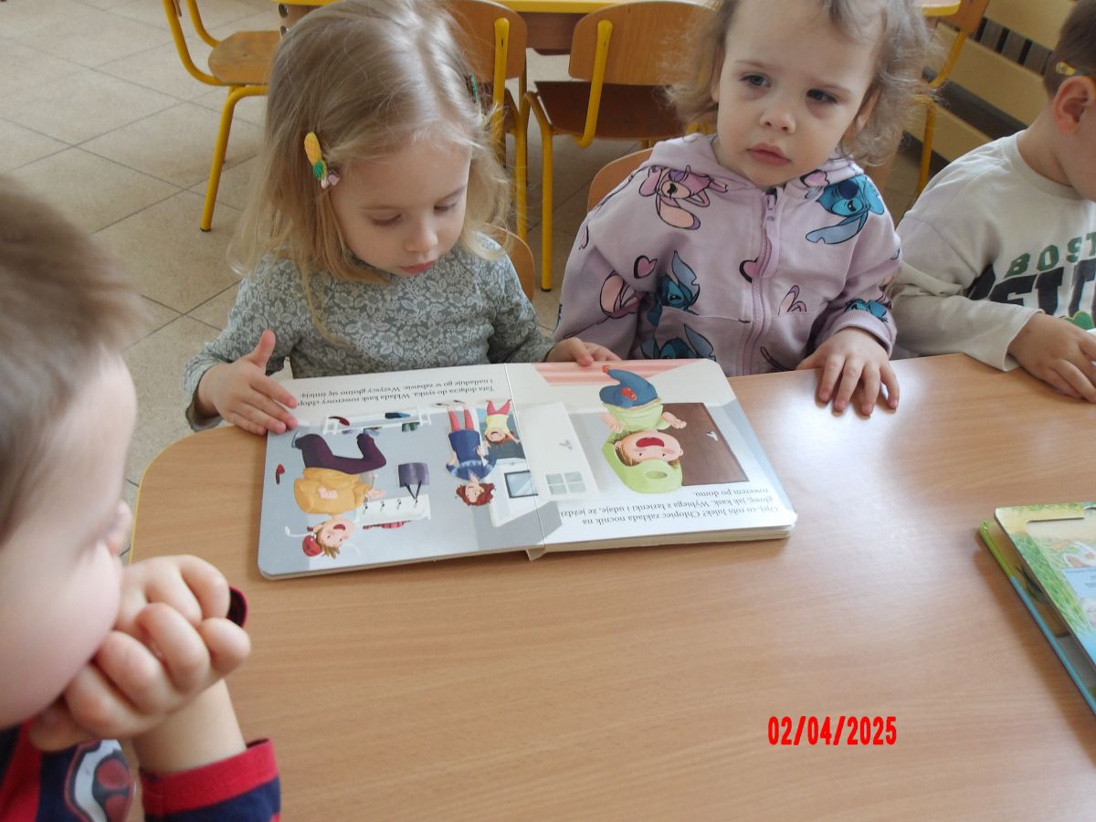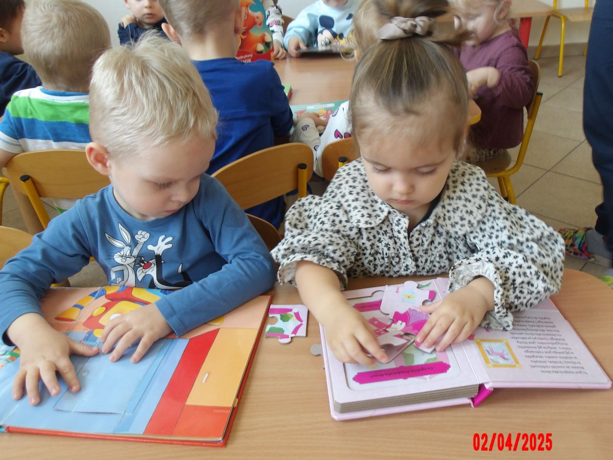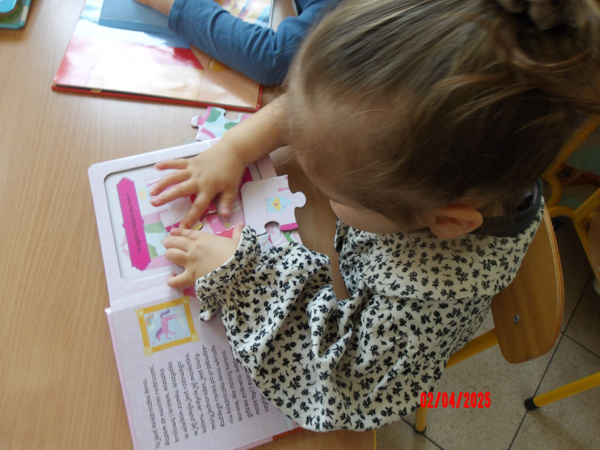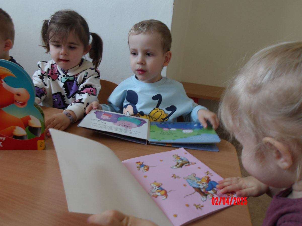 Opublikowano: śr., 04/02/2025 - 14:37 Promując Dzień Książki, Średniaczki oglądały mnóstwo książeczek. Szukały w nich postaci oraz zwierząt. Ciekawość dzieci została rozbudzona poprzez książeczki z puzzlami w środku.