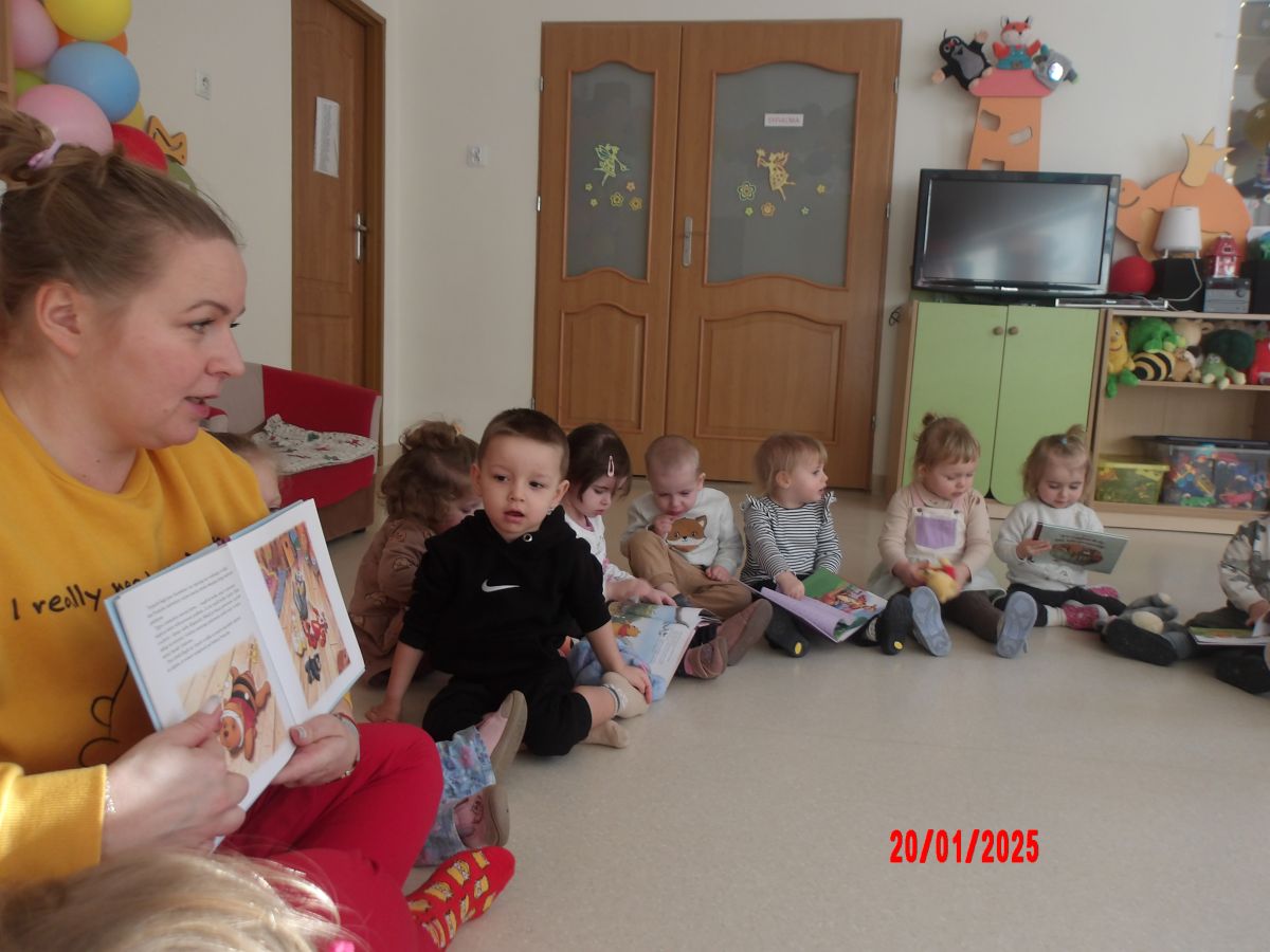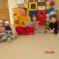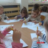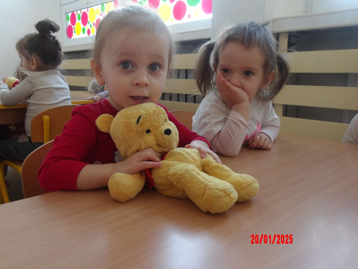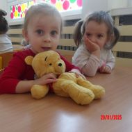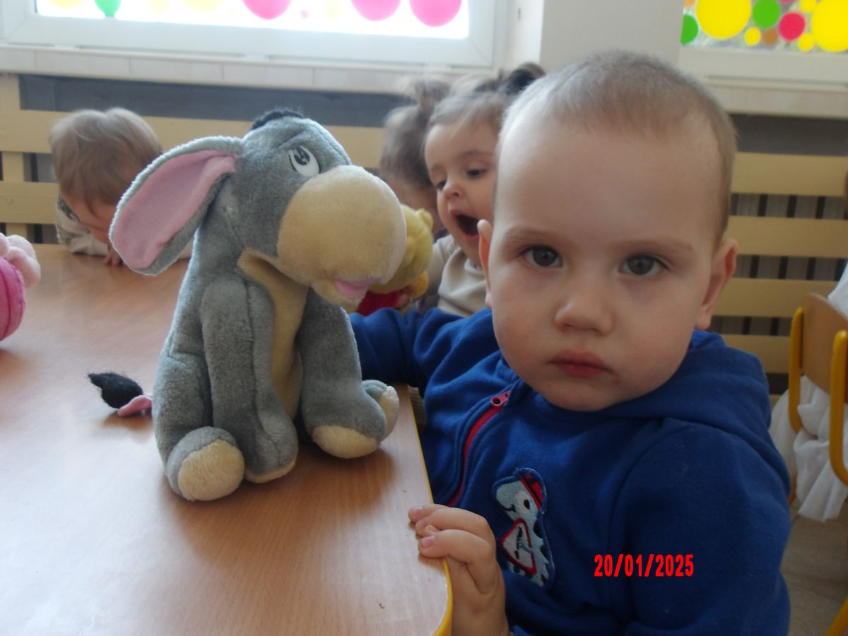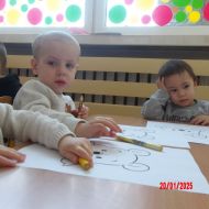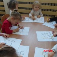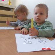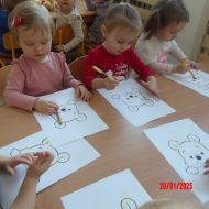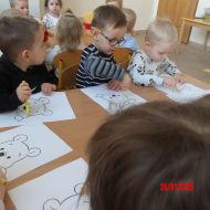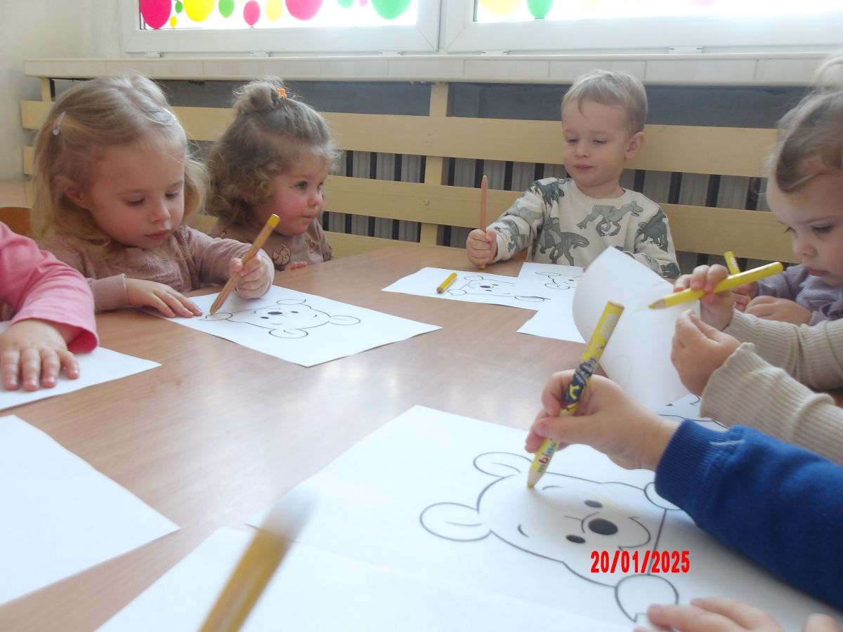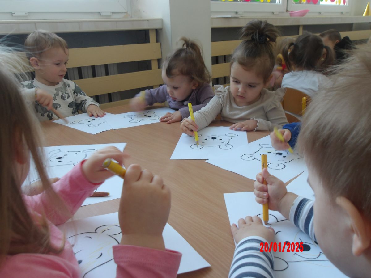 Dzieci wykonały również pracę plastyczną pt. "Kubuś Puchatek". Podczas kolorowania, dwulatki wysłuchały tytułowej piosenki z bajki telewizyjnej "Już pora wstać.".