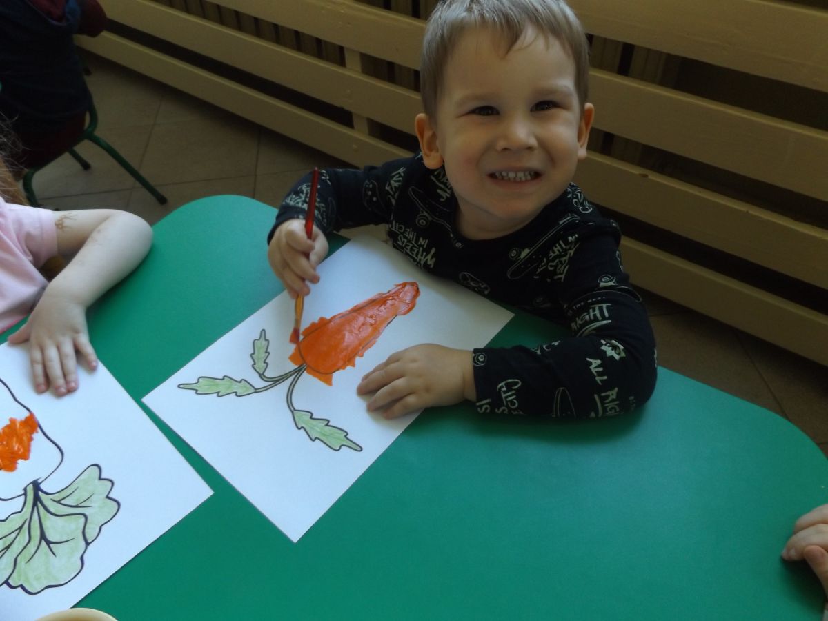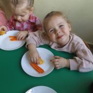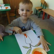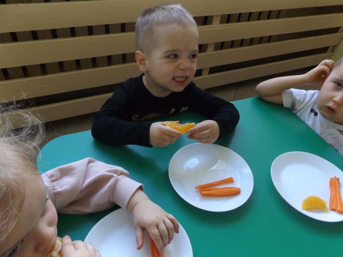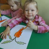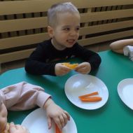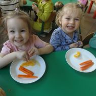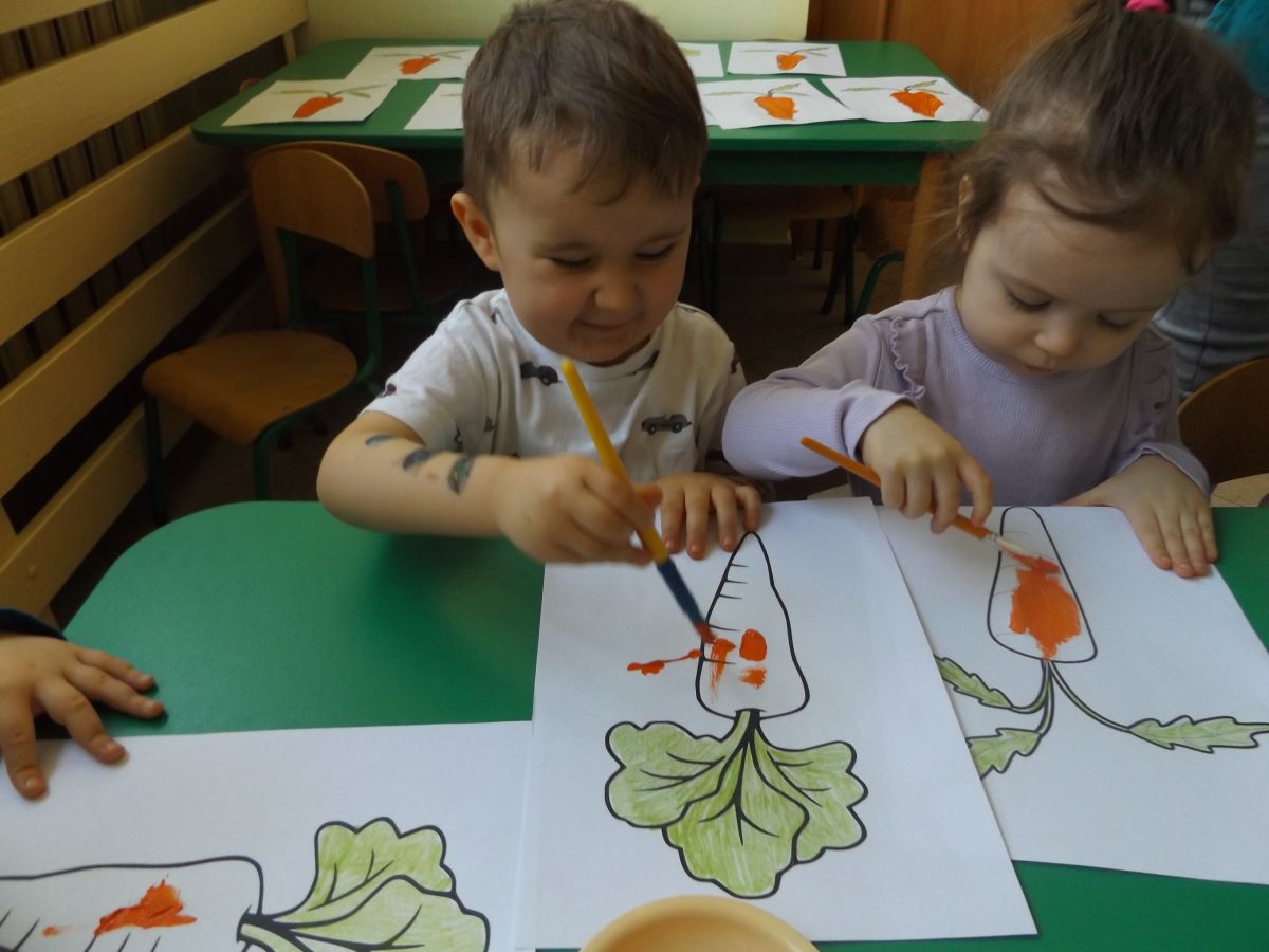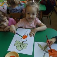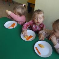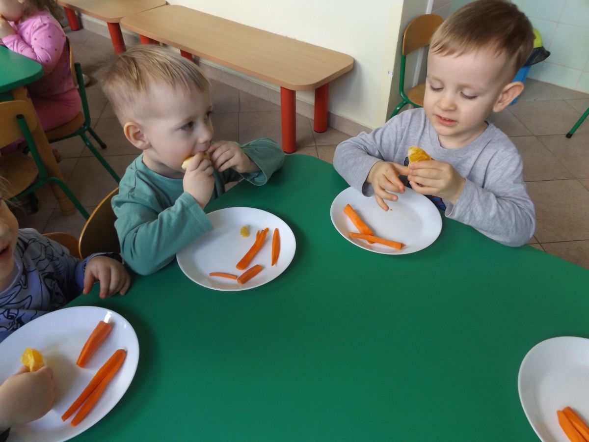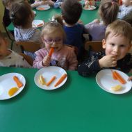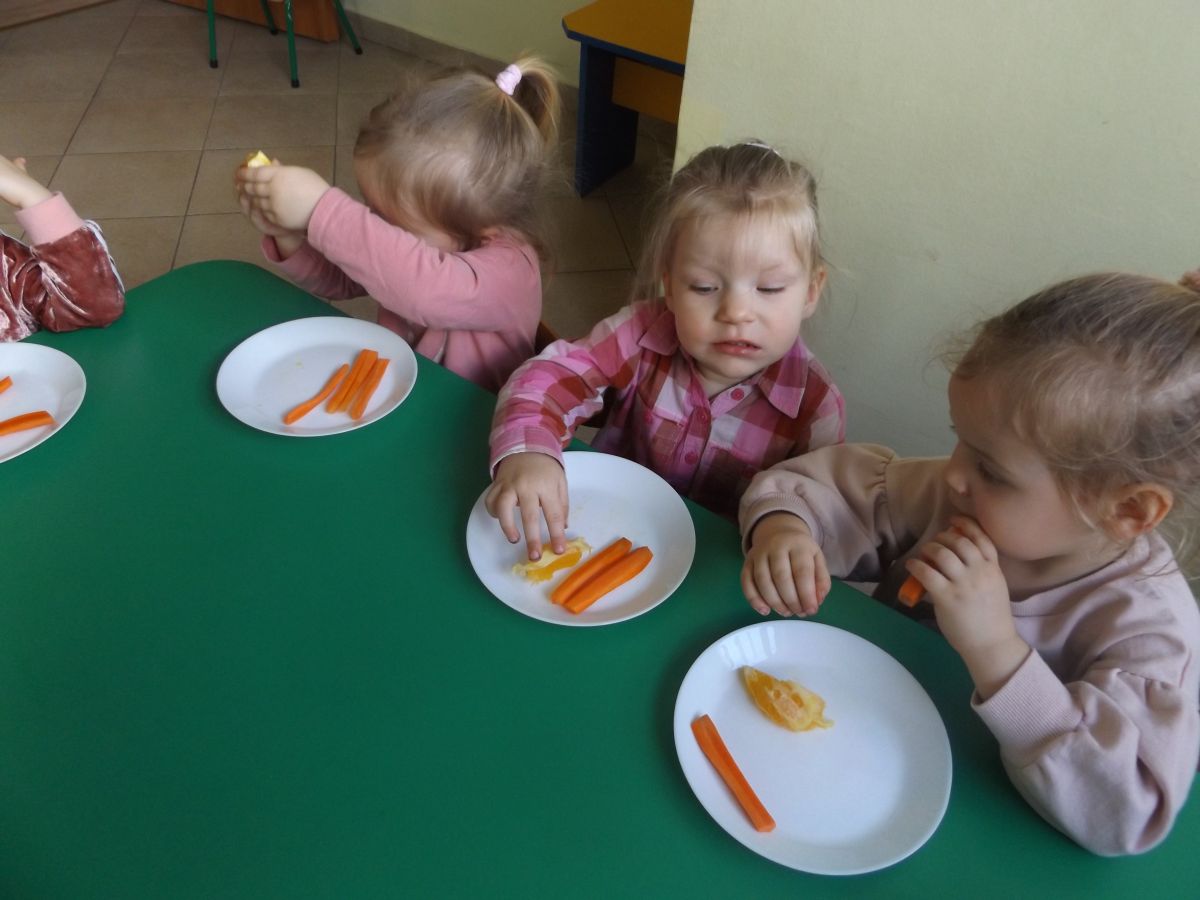 Podczas Międzynarodowego Dnia Marchewki dzieciaki pomalowały farbami swoje marcheweczki starając się nie wyjeżdżać za linię pędzlami, dowiedziały się o zdrowotnych właściwościach tego warzywa oraz schrupały je na drugie śniadanie w towarzystwie pomarańczy.