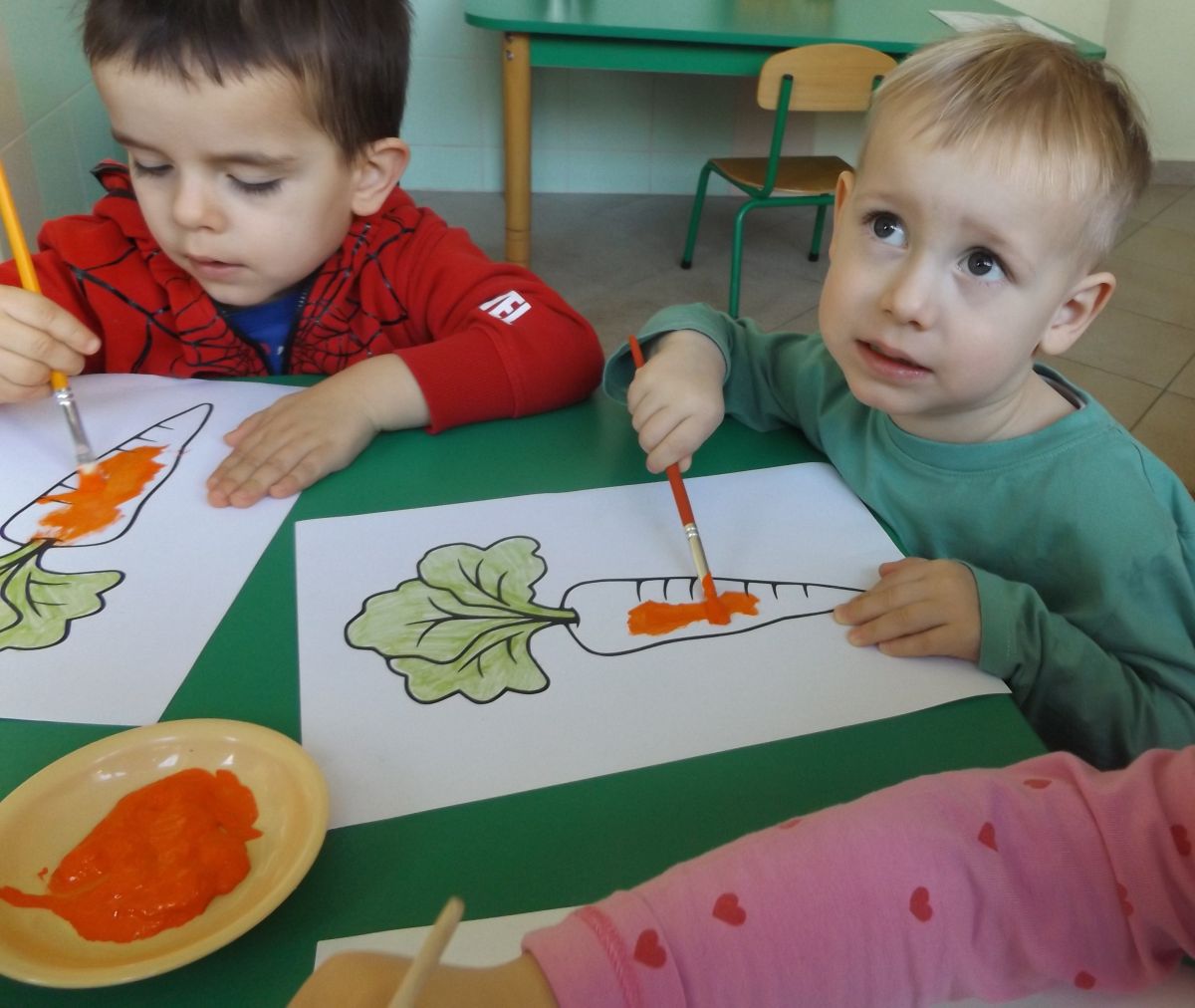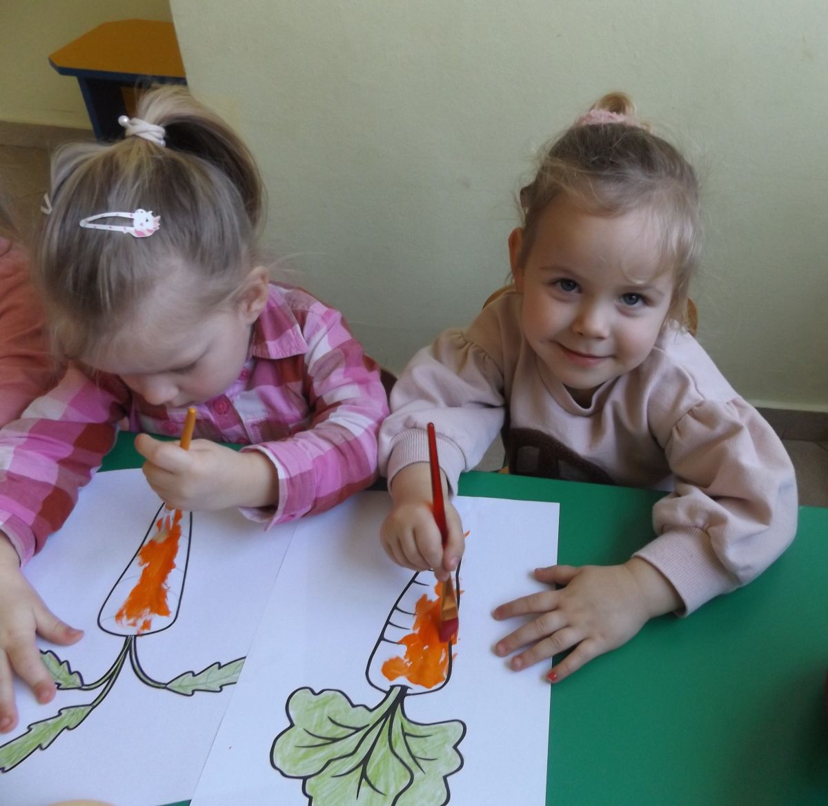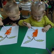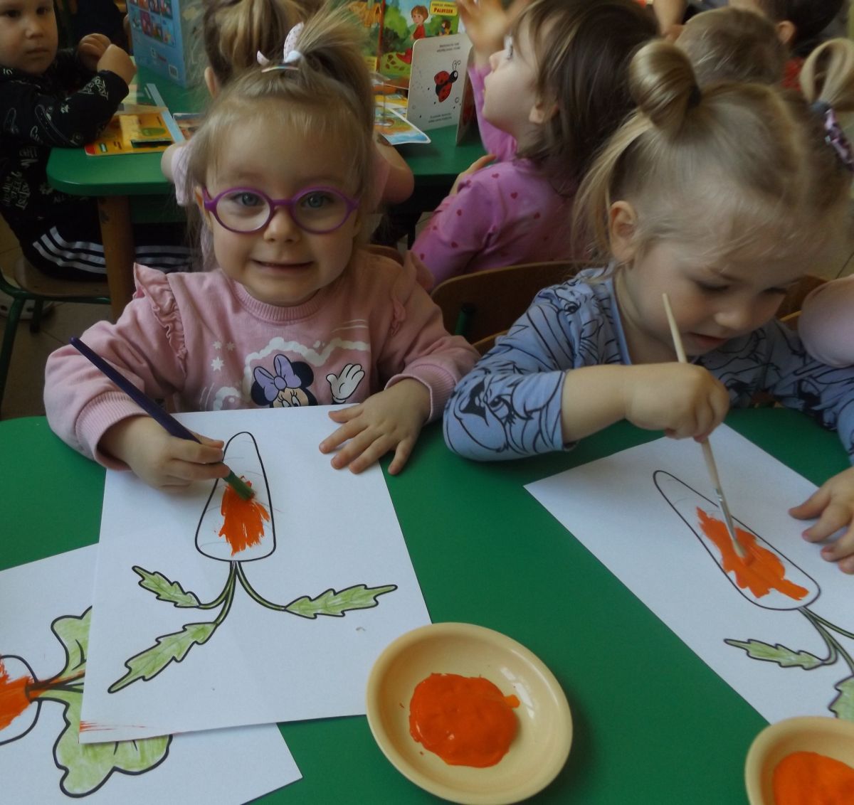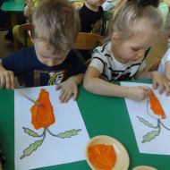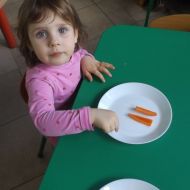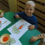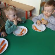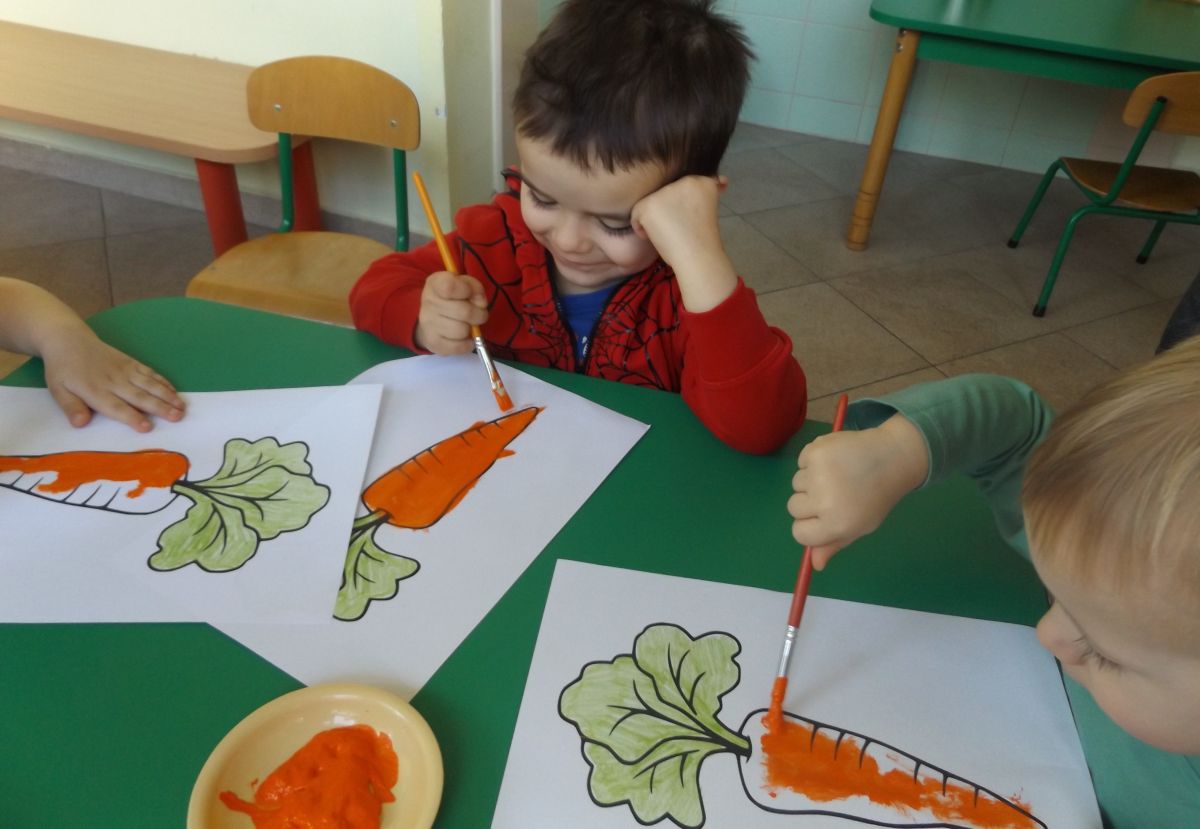 Podczas Międzynarodowego Dnia Marchewki dzieciaki pomalowały farbami swoje marcheweczki starając się nie wyjeżdżać za linię pędzlami, dowiedziały się o zdrowotnych właściwościach tego warzywa oraz schrupały je na drugie śniadanie w towarzystwie pomarańczy.