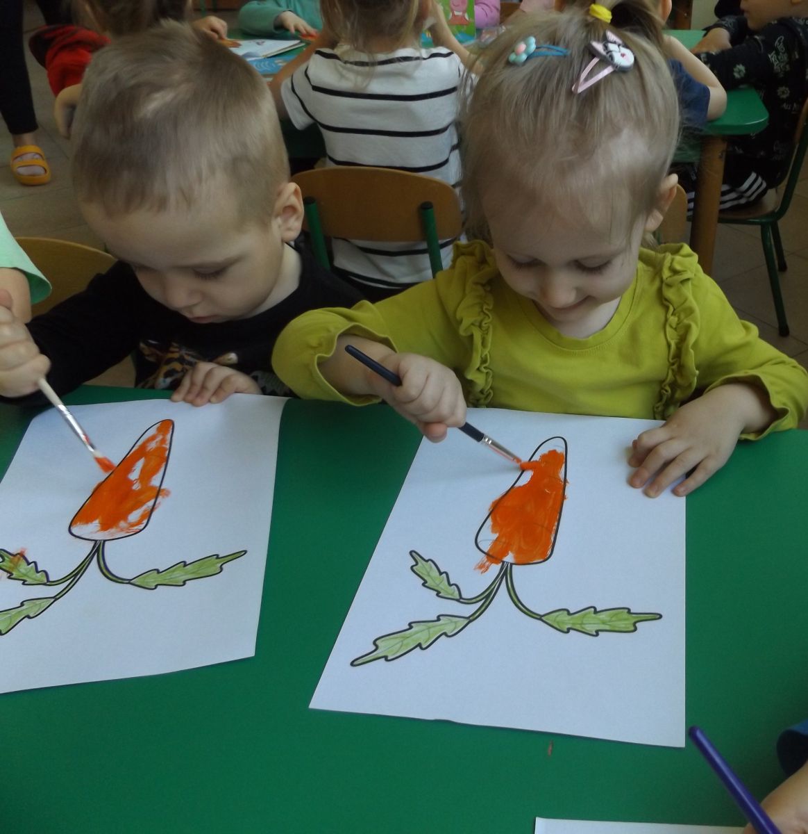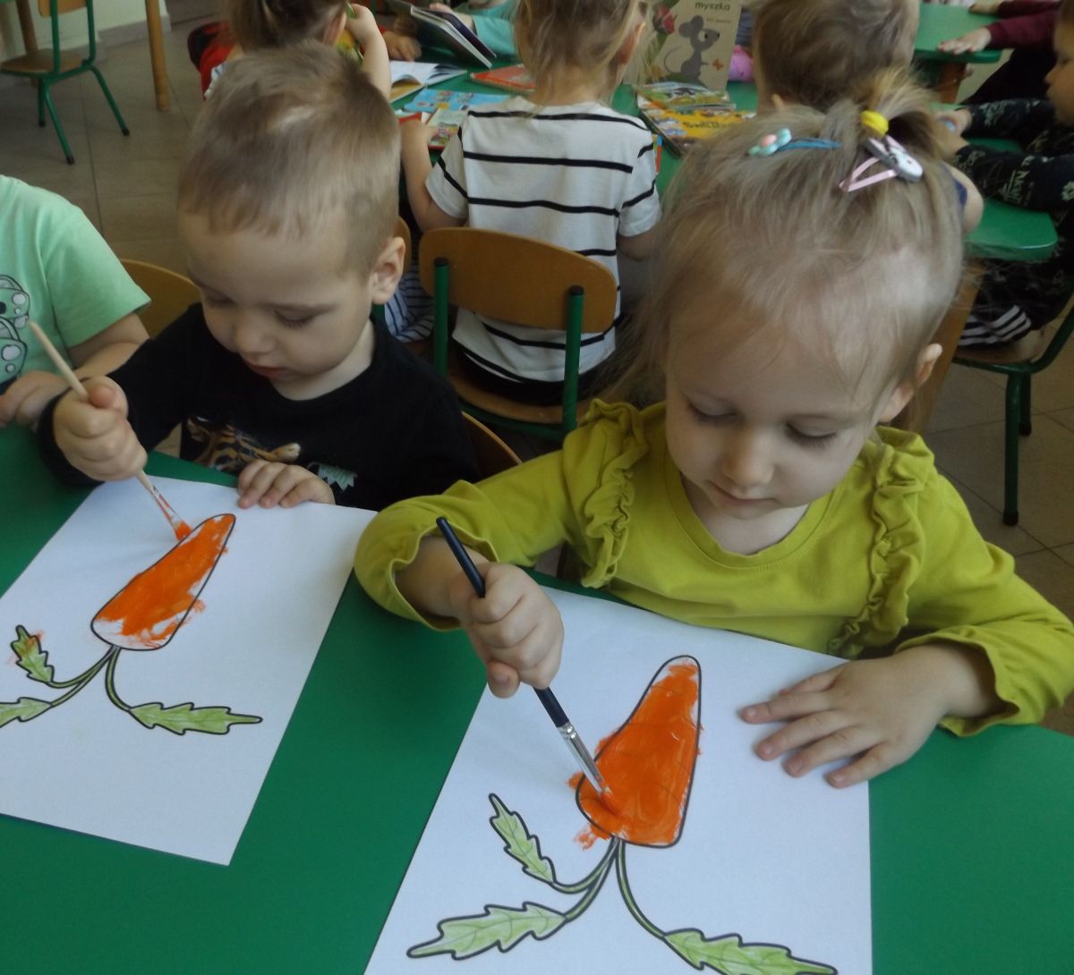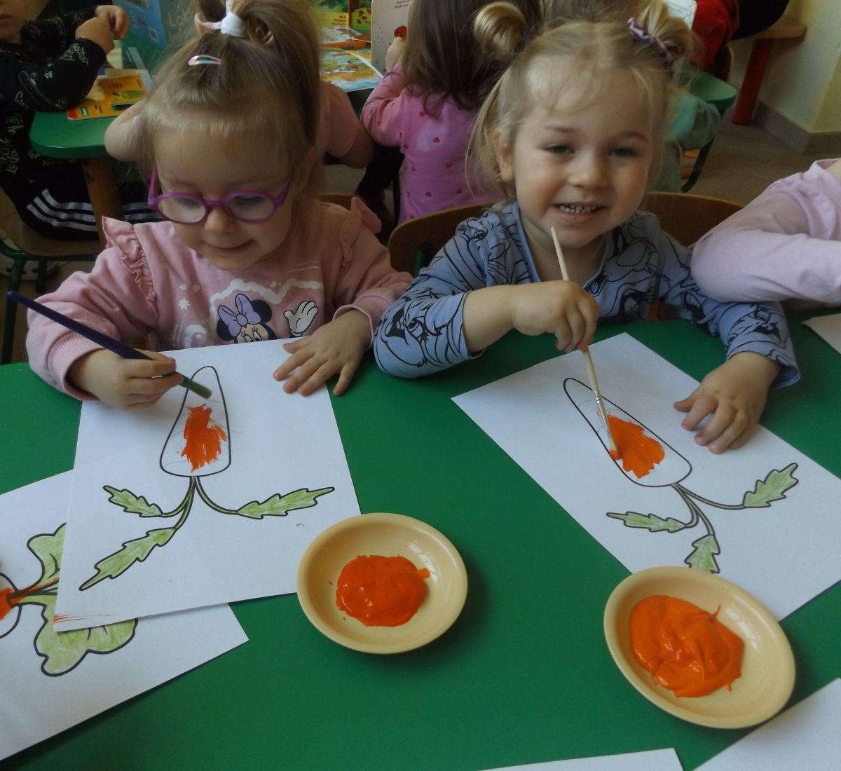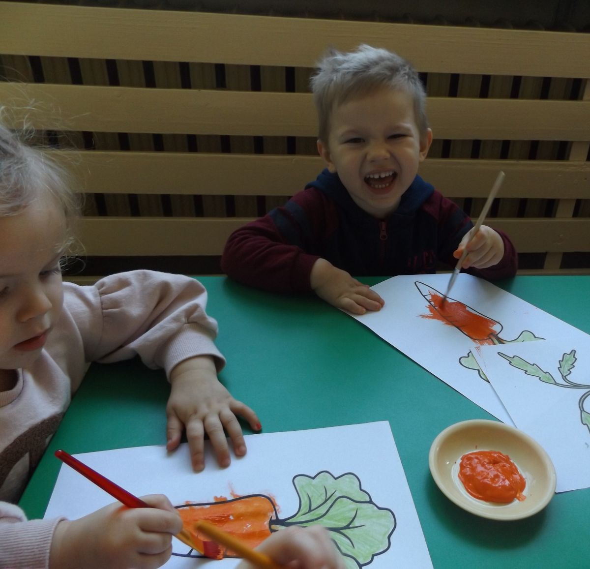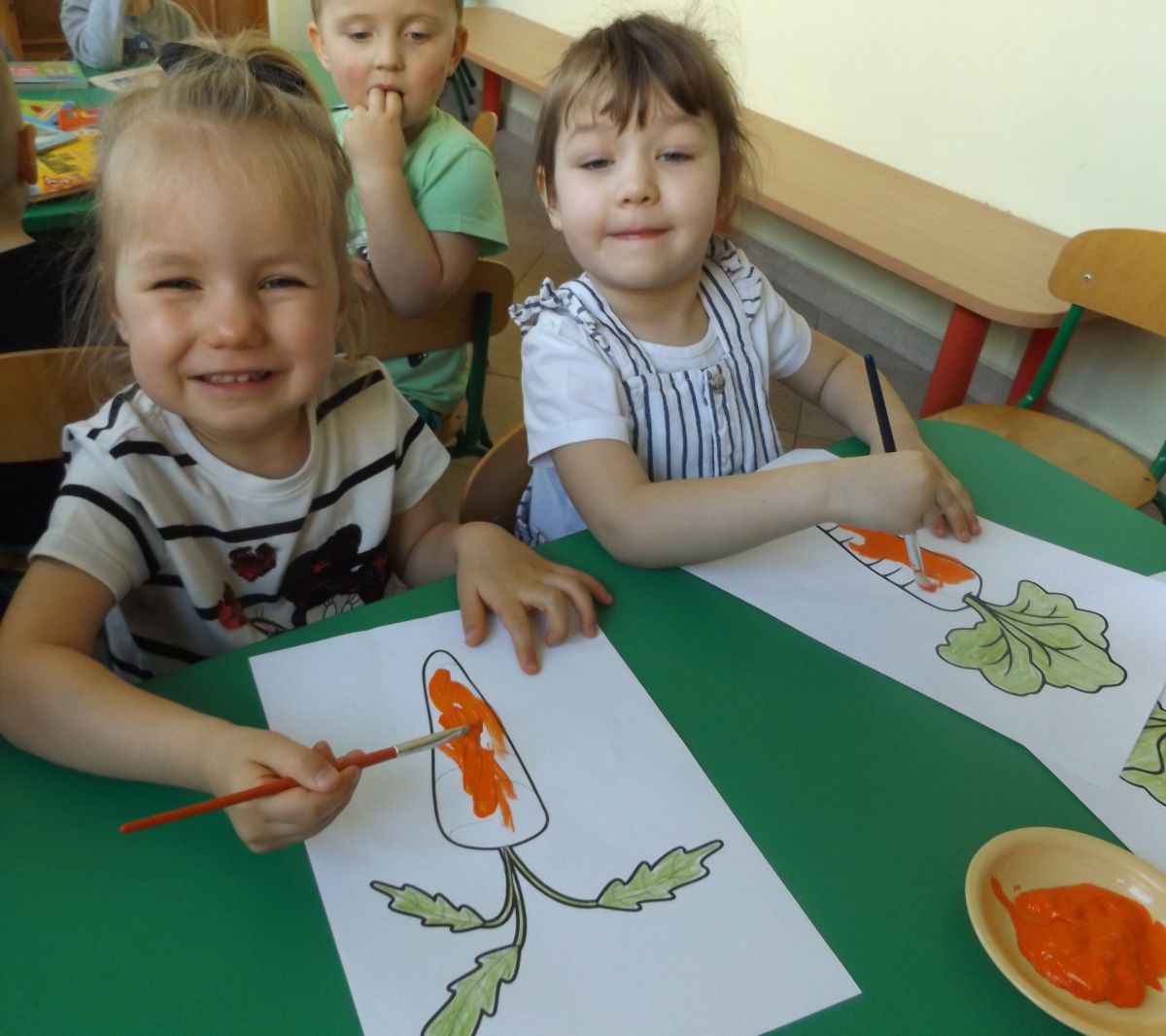 Podczas Międzynarodowego Dnia Marchewki dzieciaki pomalowały farbami swoje marcheweczki starając się nie wyjeżdżać za linię pędzlami, dowiedziały się o zdrowotnych właściwościach tego warzywa oraz schrupały je na drugie śniadanie w towarzystwie pomarańczy.