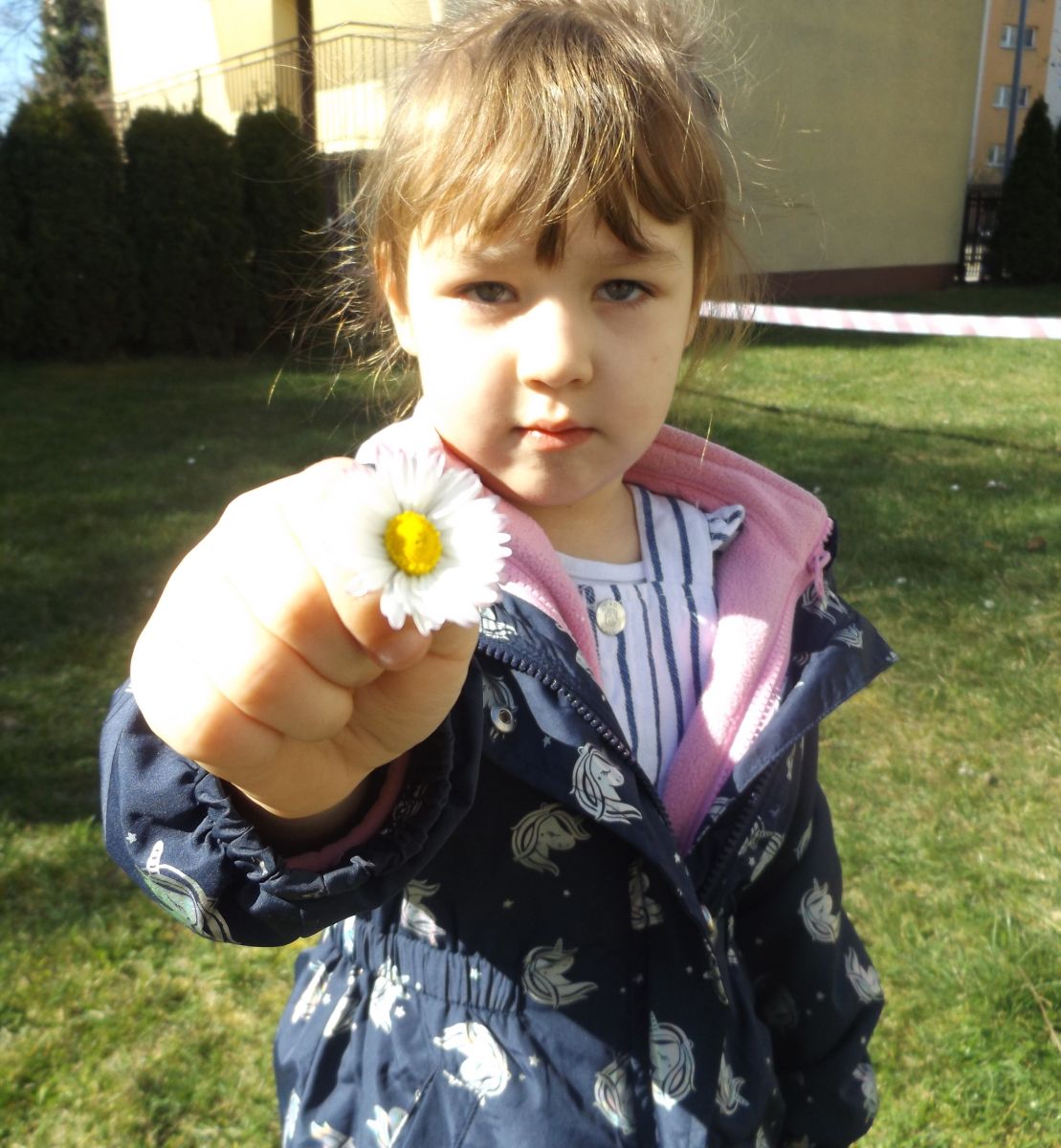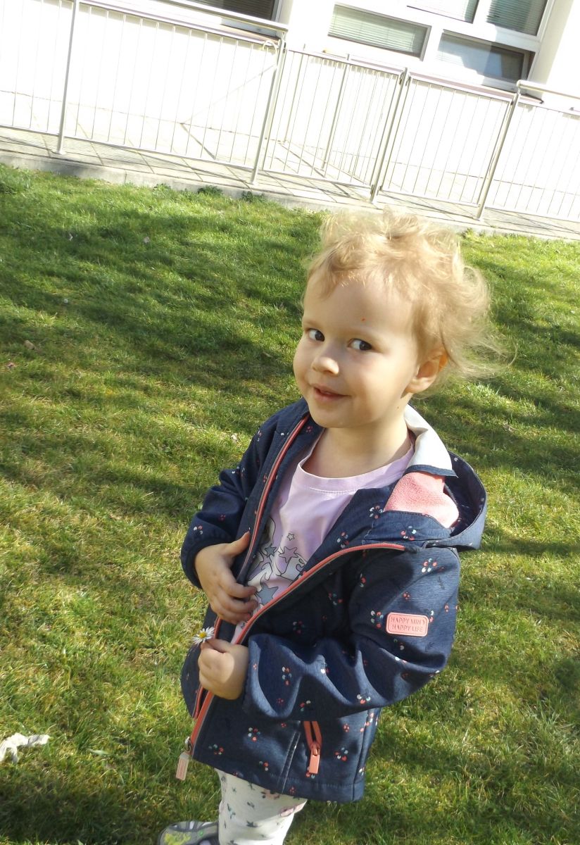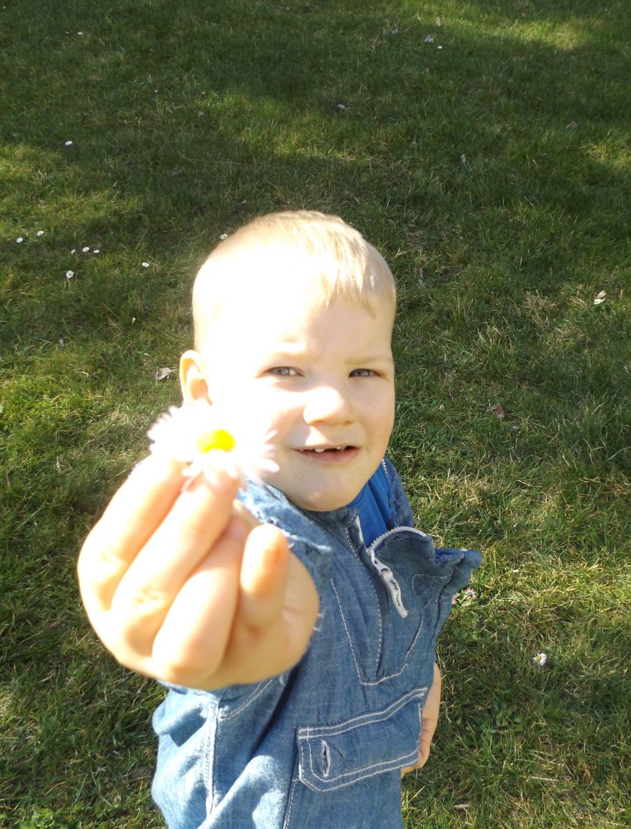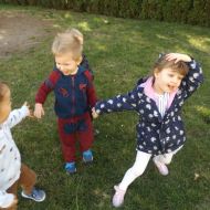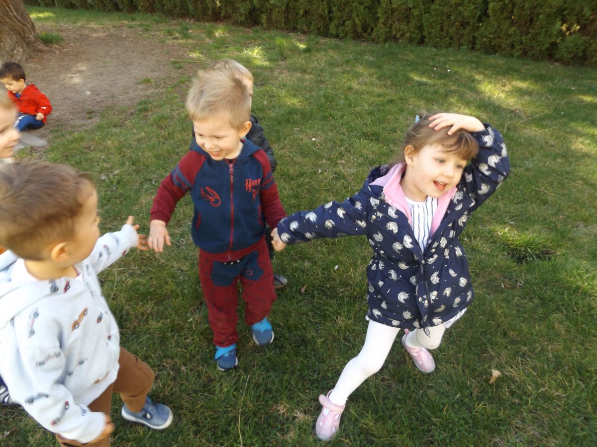 Po pełnym witamin posiłku uwalniały swoją energię podczas harców na świeżym powietrzu. Chłopcom bardzo spodobało się zbieranie dla cioci stokrotek a dziewczynki robiły tort z trawy i szyszek, ozdabiały go pięknymi kwiatuszkami :)