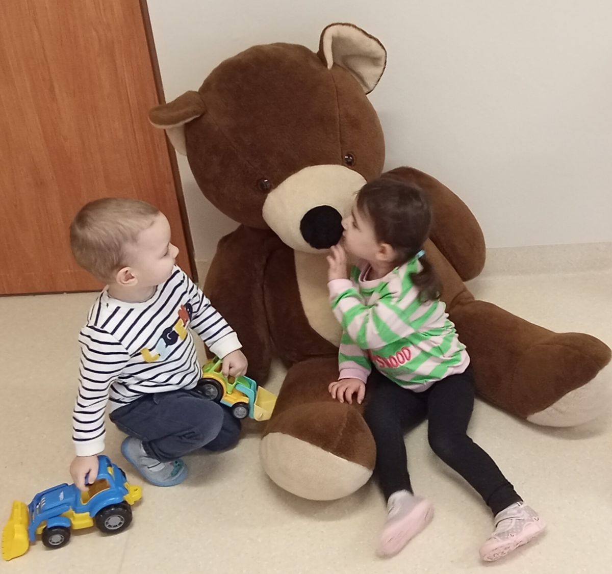 Opublikowano: pon., 11/24/2025 - 12:55 Dziś grupę Starszaków odwiedził wielki niedźwiedź. Dzieci nie mogły się od niego oderwać. Było przytulanie, głaskanie, tarmoszenie oraz całusy i relaks w jego objęciach.