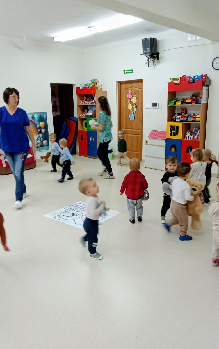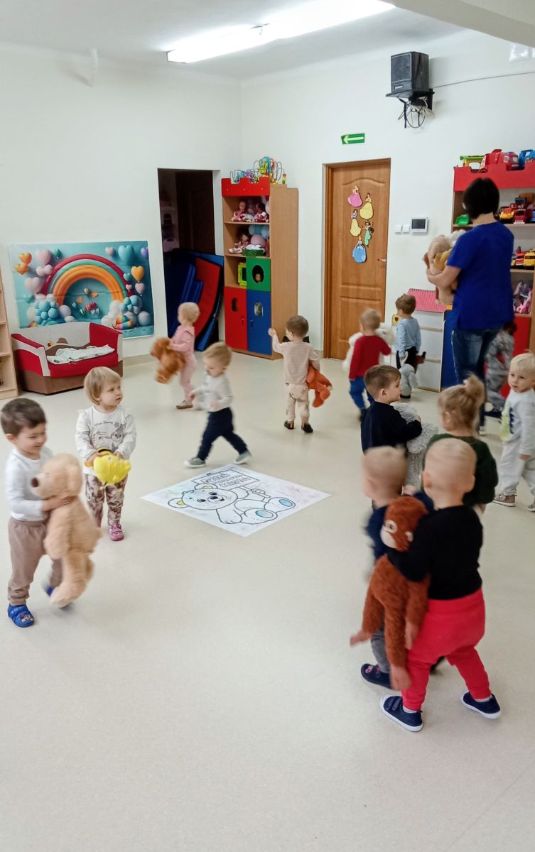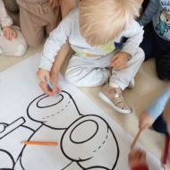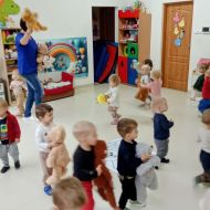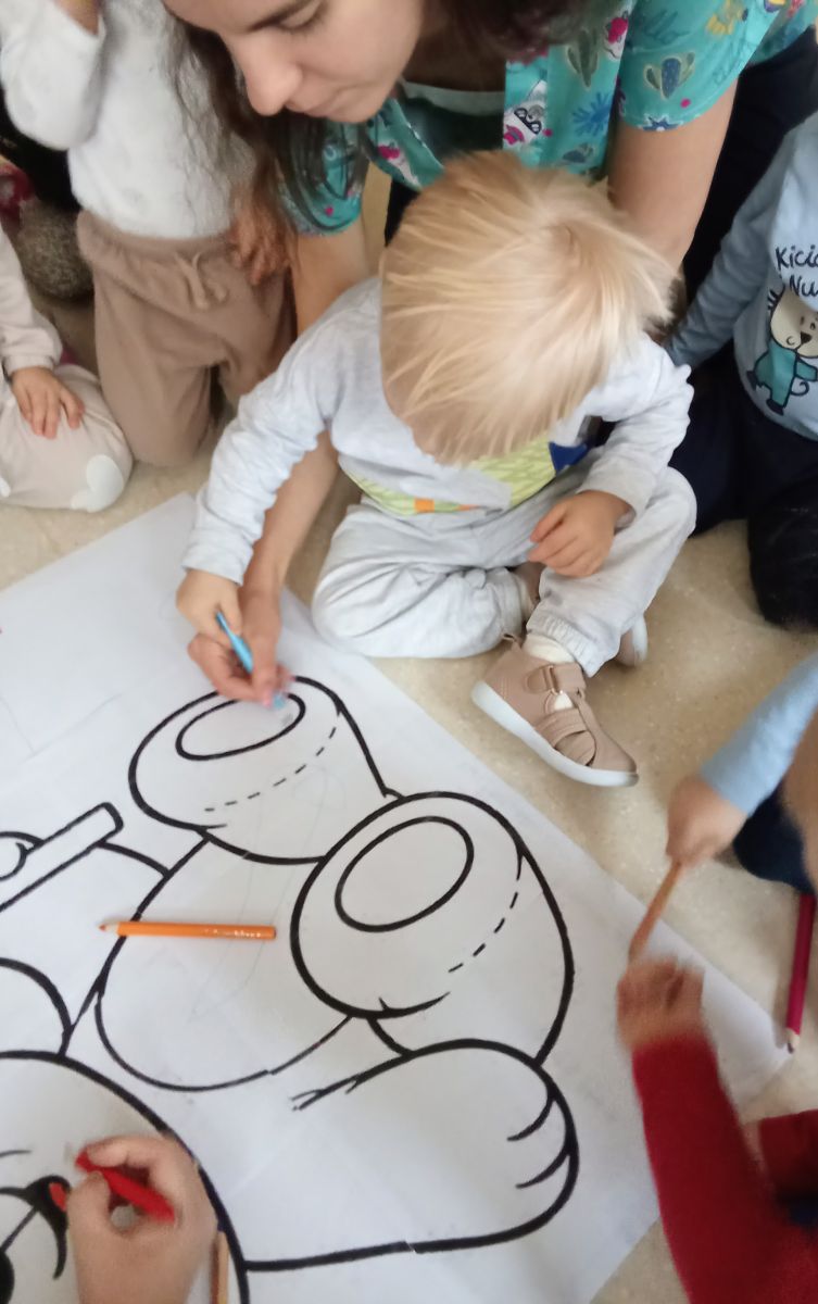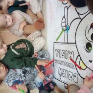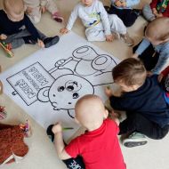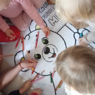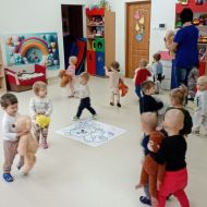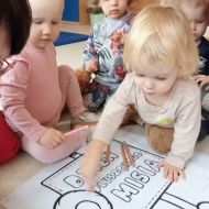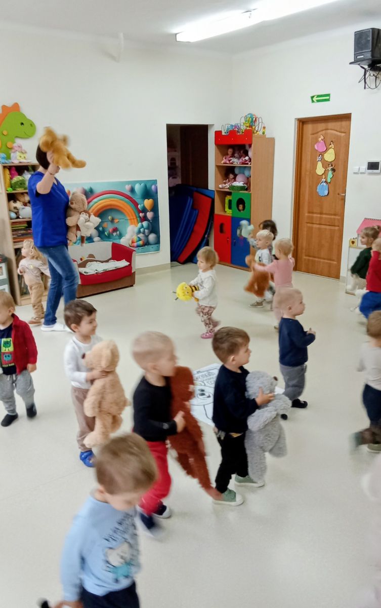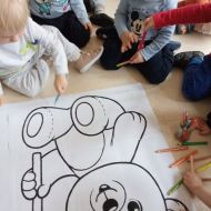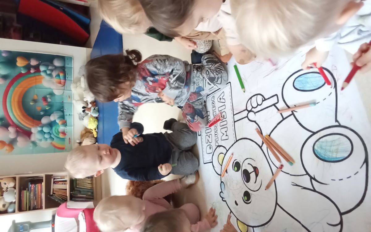 Dzieci przyniosły swoje ulubione pluszaki, które z dumą prezentowały. Następnie, Średniaczki kolorowały dużego misia, tworząc piękną, kolorową pracę plastyczną. Nie zabrakło również tańców z misiami, które wprowadziły wszystkich w świetny nastrój. Na zakończenie misiowych zabaw, maskotki zostały utulone do snu, przy kołysance "Pluszowe niedźwiadki".
