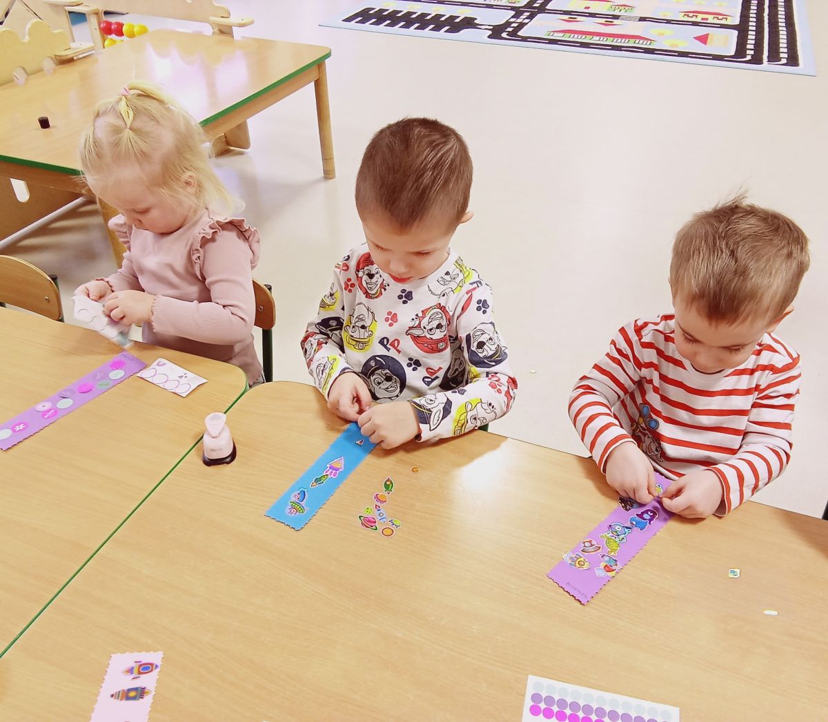 Dzieci samodzielnie stworzyły zakładki ozdabiając je kolorowymi naklejkami, poznały również zasady dbania o książeczki 📚