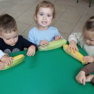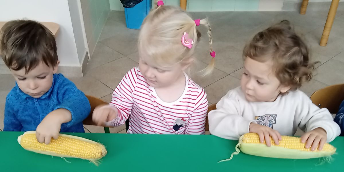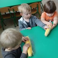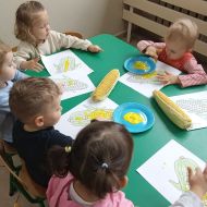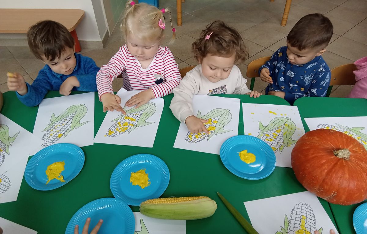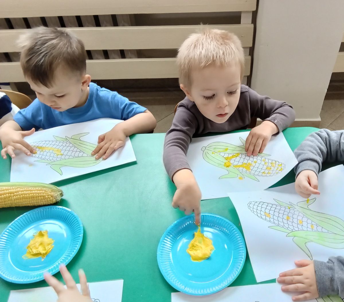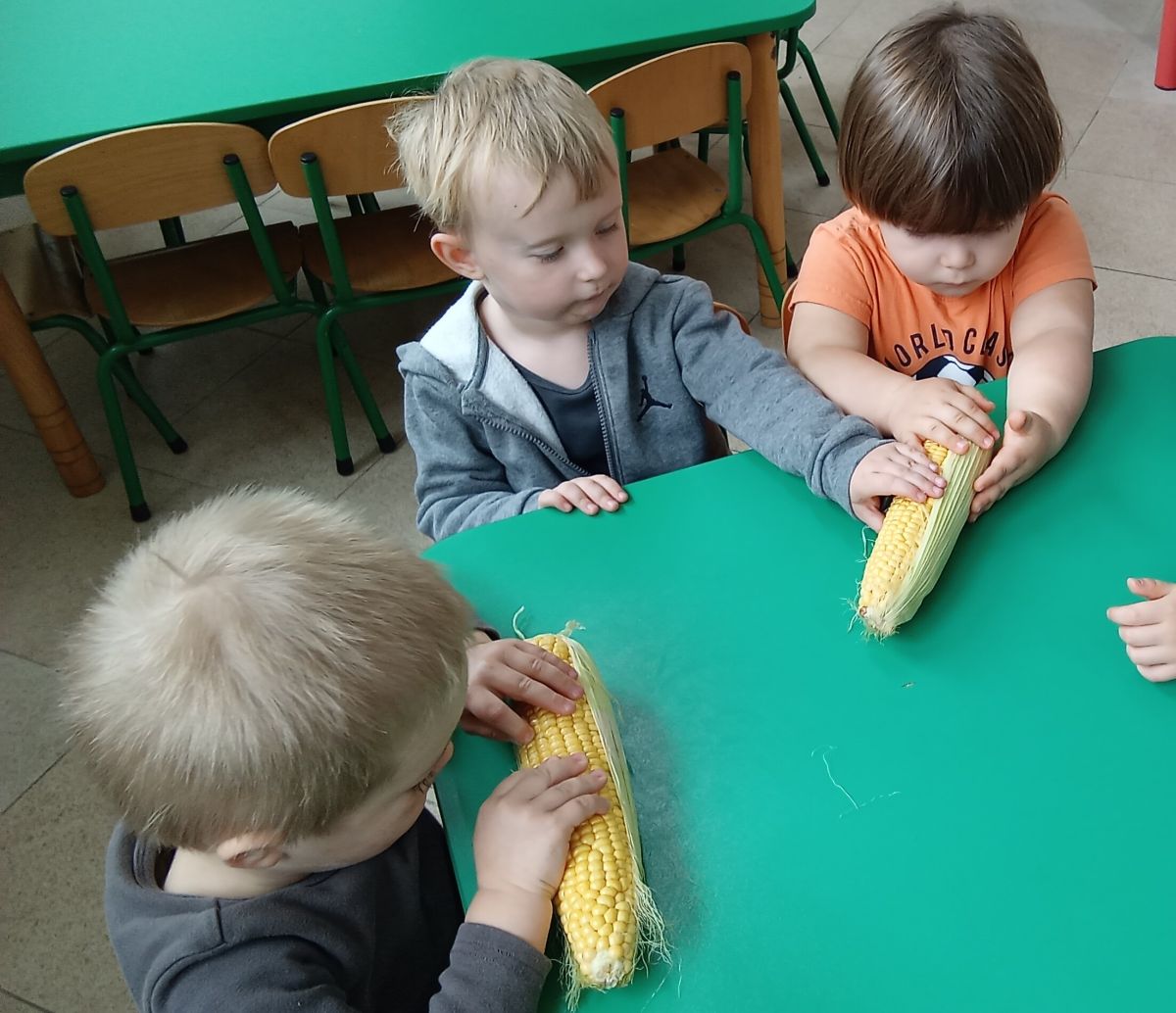 Opublikowano: wt., 10/07/2025 - 13:18 Dziś dzieci poznały kukurydzę - dotykały, wąchały oraz wykonały paluszkami zamoczonymi w farbie piękne prace plastyczne.Takie zajęcia to nie tylko świetna zabawa, ale też doskonałe ćwiczenie małych rączek.