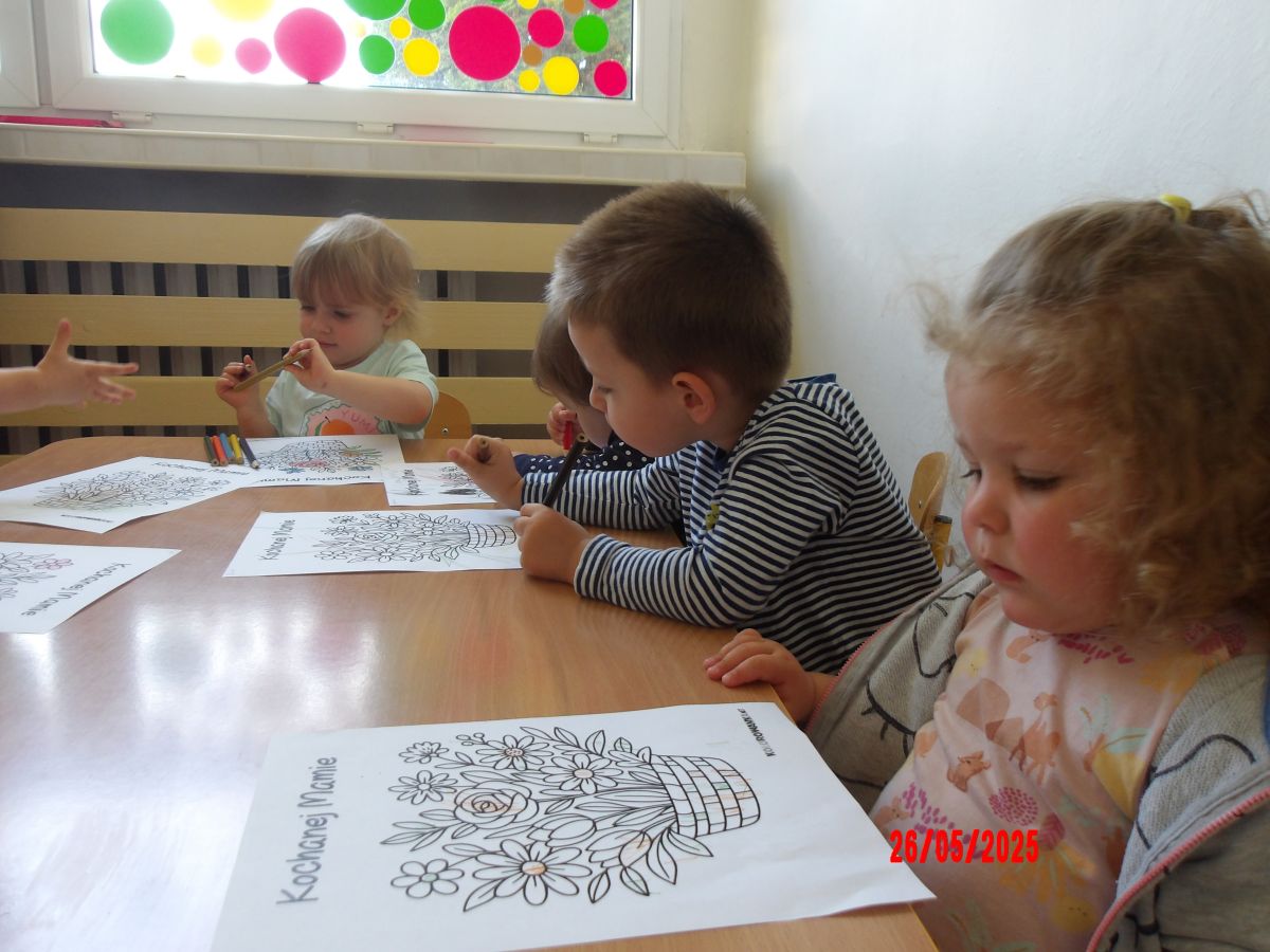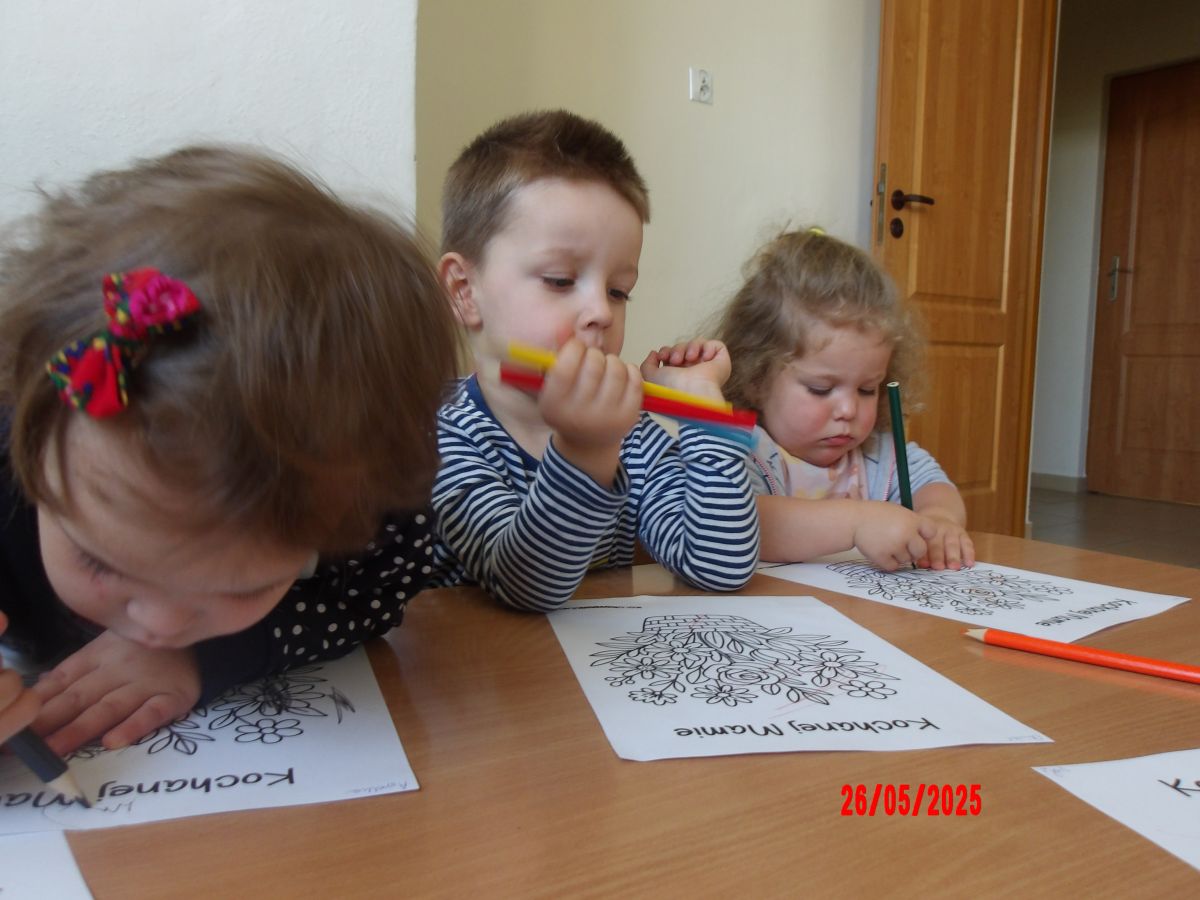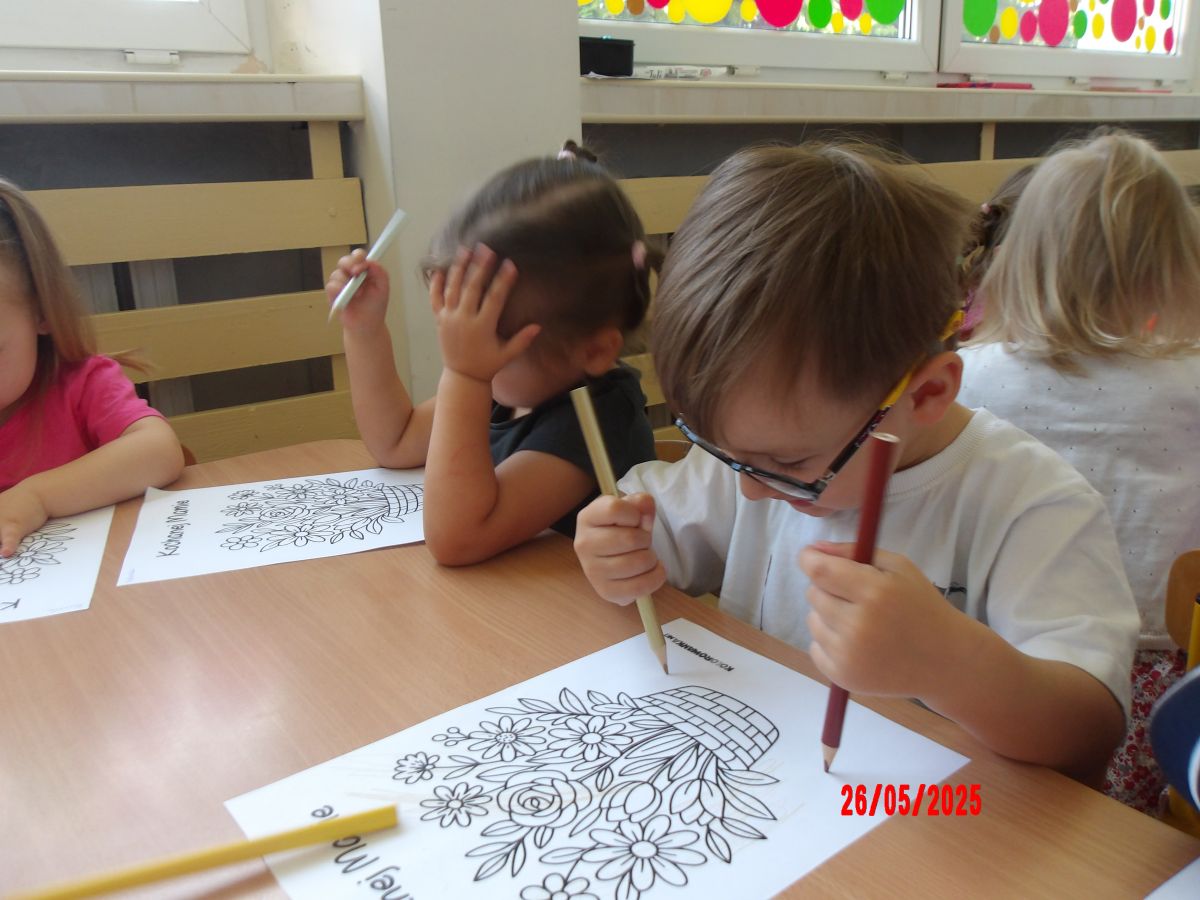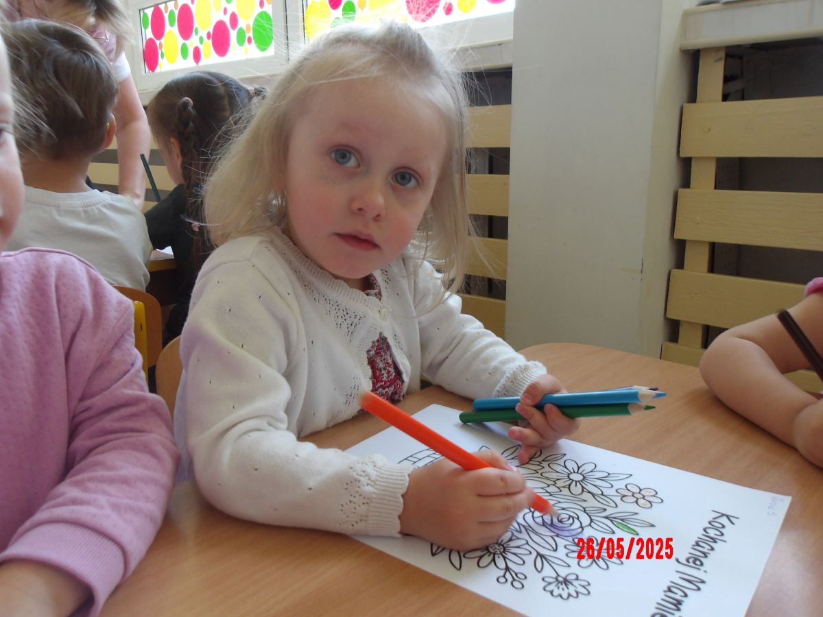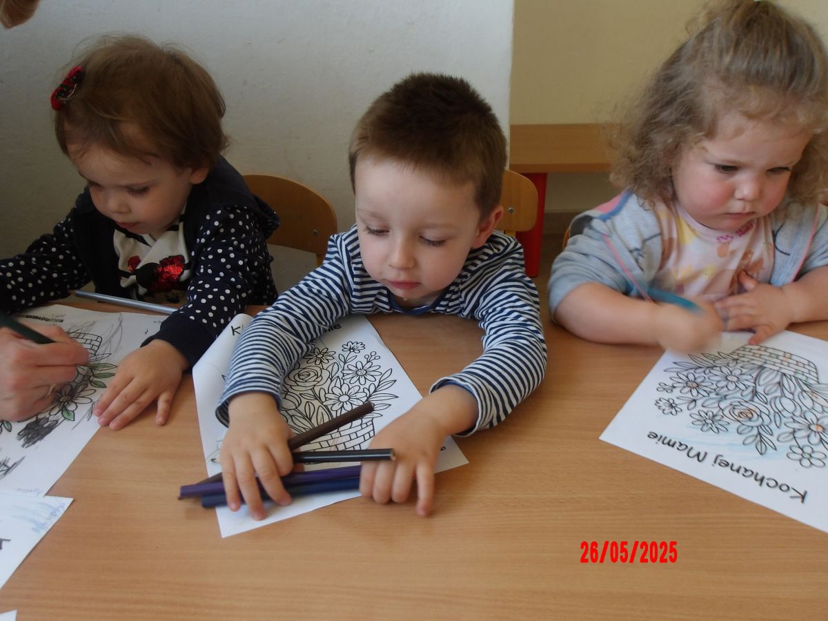 Opublikowano: wt., 05/27/2025 - 08:06 Średniaczki z okazji Dnia Mamy samodzielnie wykonały upominek pt.: "Kwiatki dla mamy".Dzieci z ogromnym zaangażowaniem i w dużym skupieniu tworzyły swoje prace.