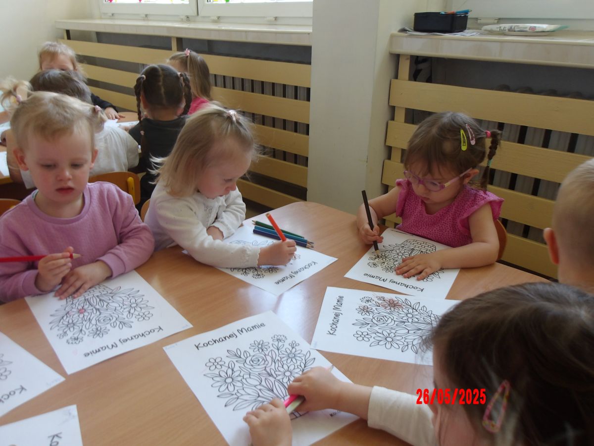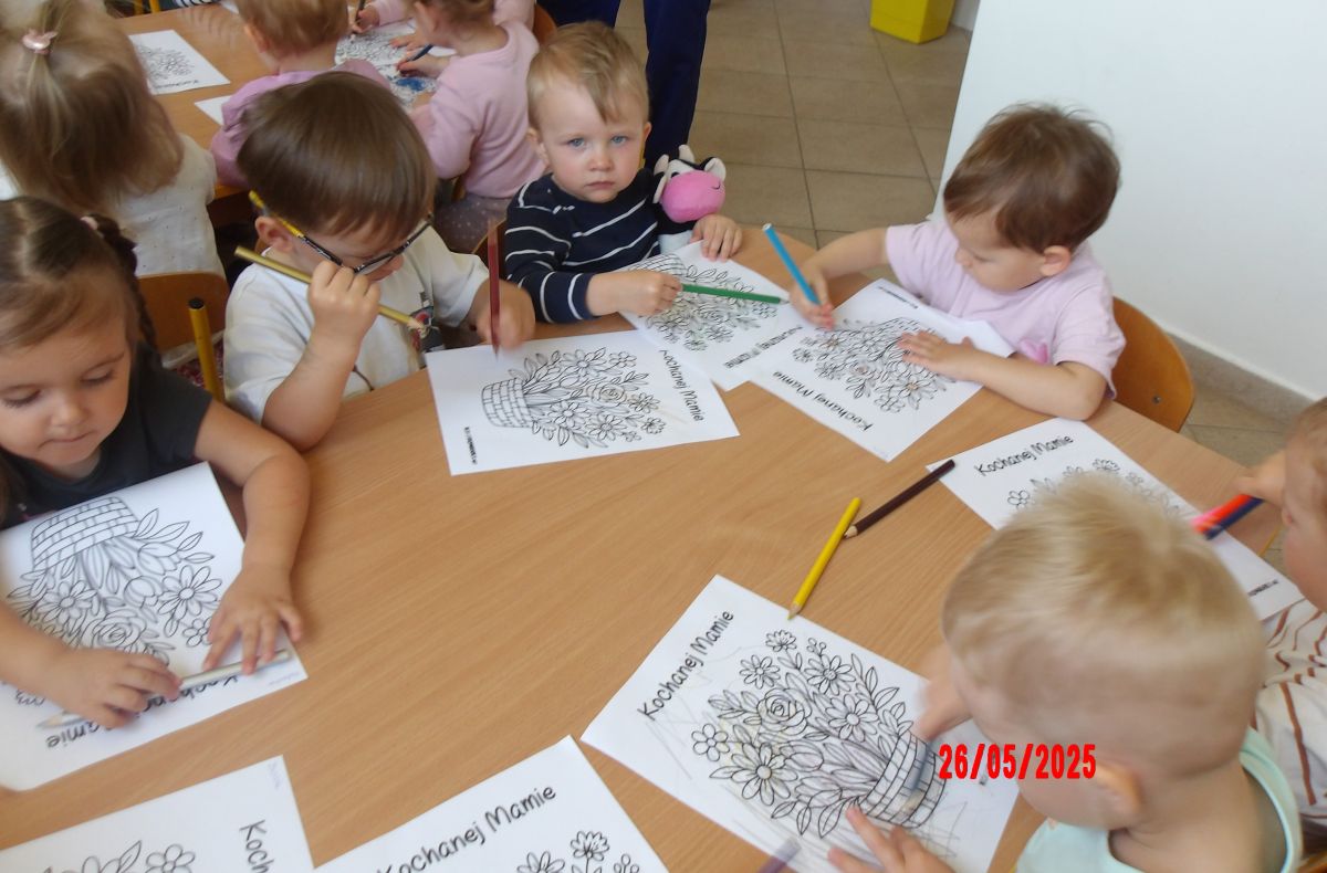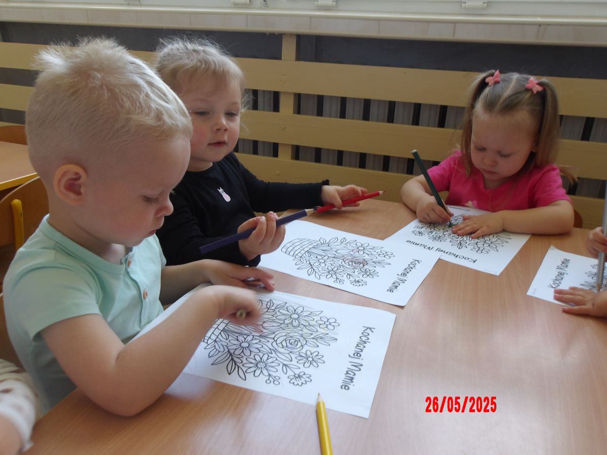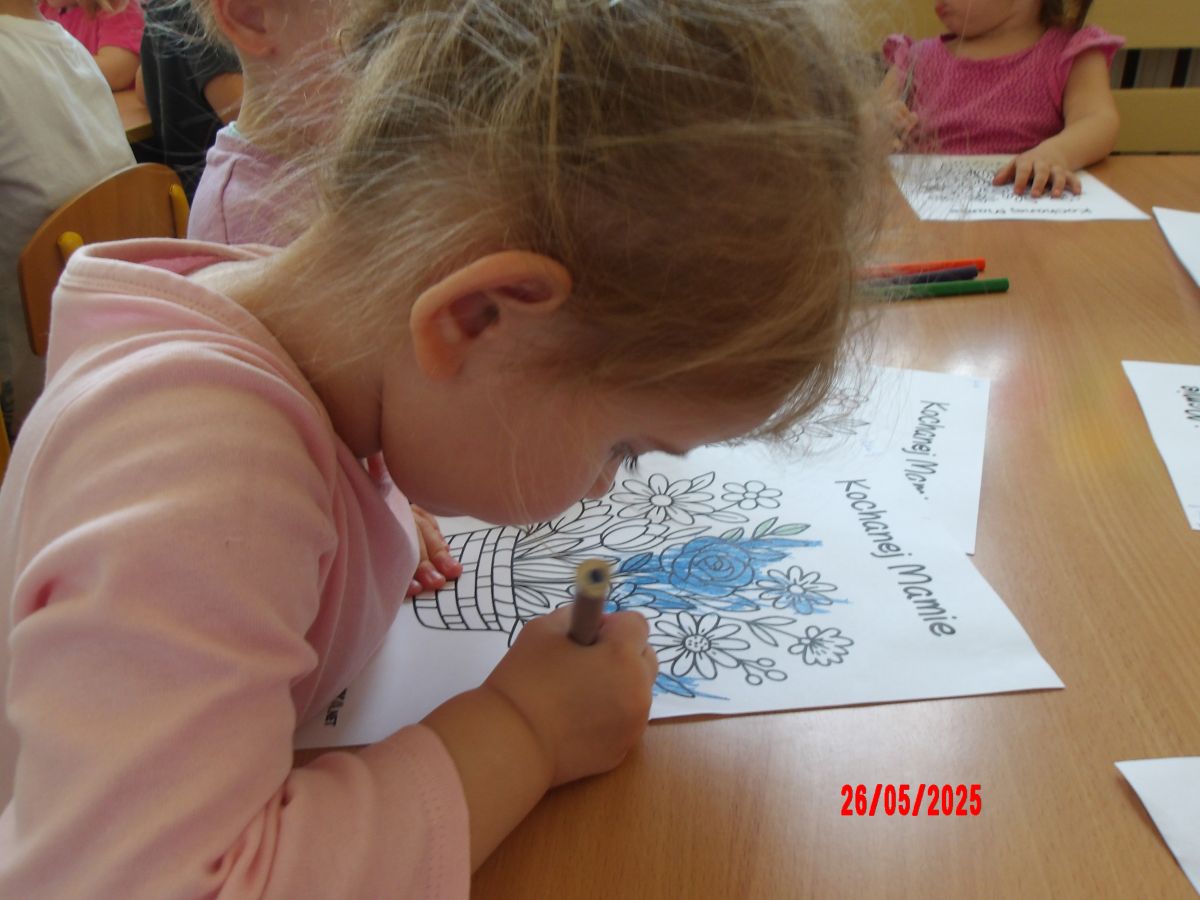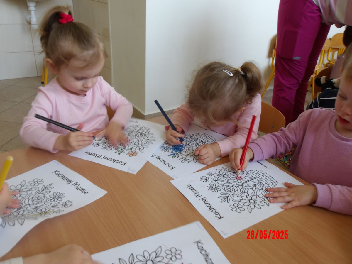 Opublikowano: wt., 05/27/2025 - 08:06 Średniaczki z okazji Dnia Mamy samodzielnie wykonały upominek pt.: "Kwiatki dla mamy".Dzieci z ogromnym zaangażowaniem i w dużym skupieniu tworzyły swoje prace.