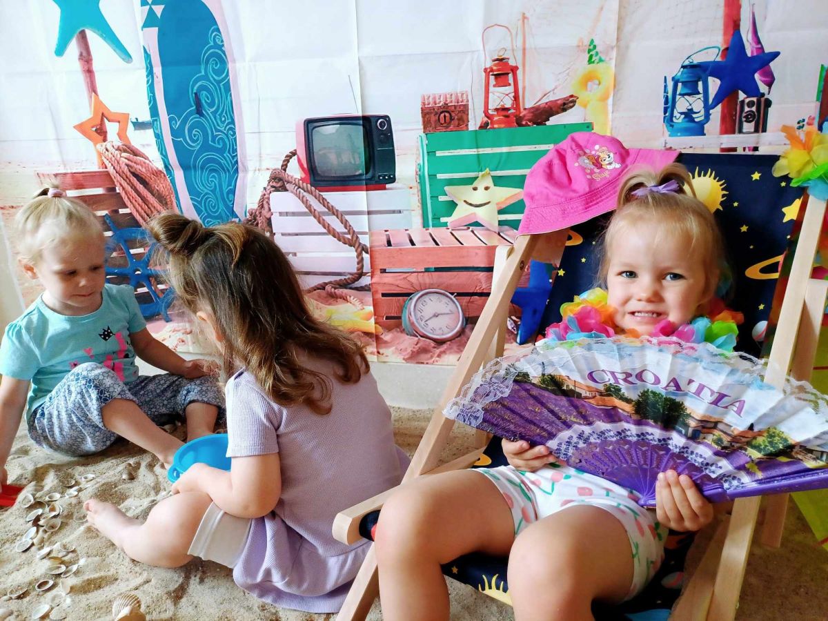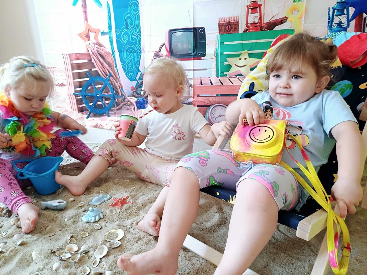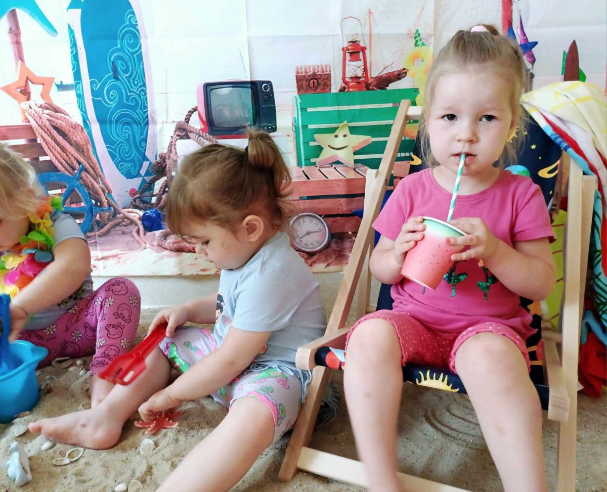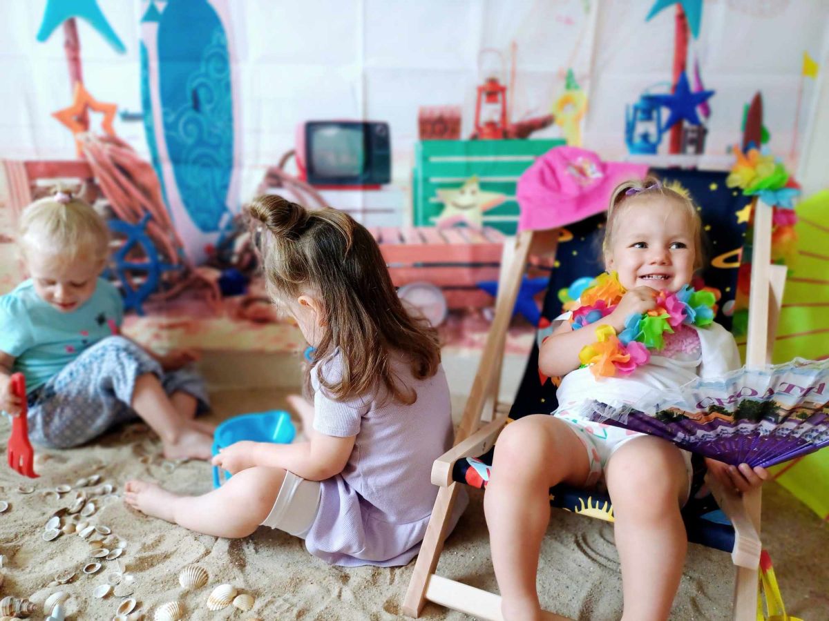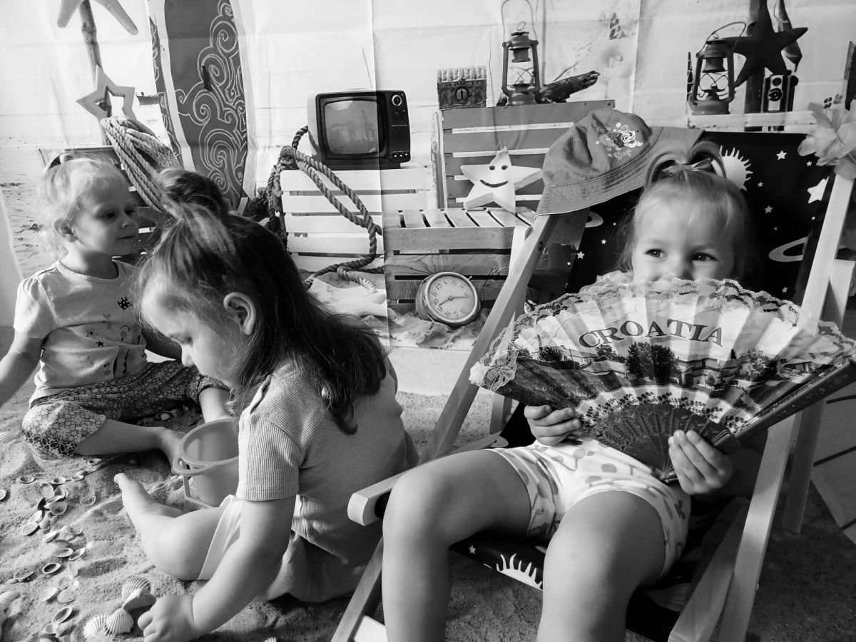 Średniaczki spotykały się na ostatniej już w tym roku żłobkowym sesji zdjęciowej "Dzika plaża". Na sesji nie zabrakło powiewu wakacji. Plaża, złoty piasek, muszelki, leżaczek, słomkowe kapelusze... W oddali słychać było szum morza i śpiew ptaków.