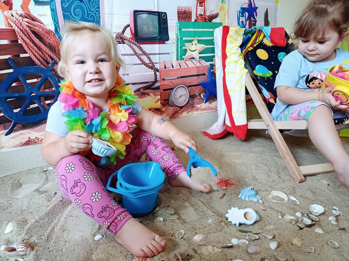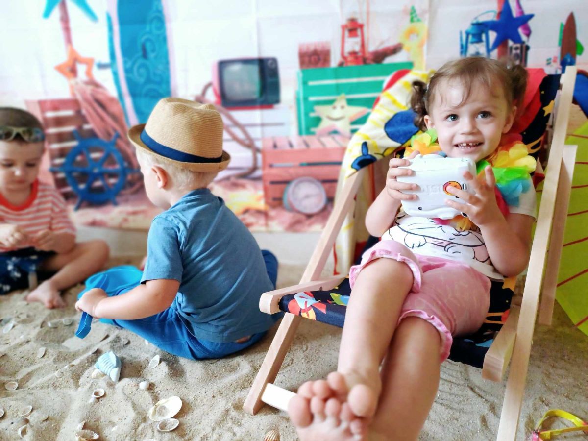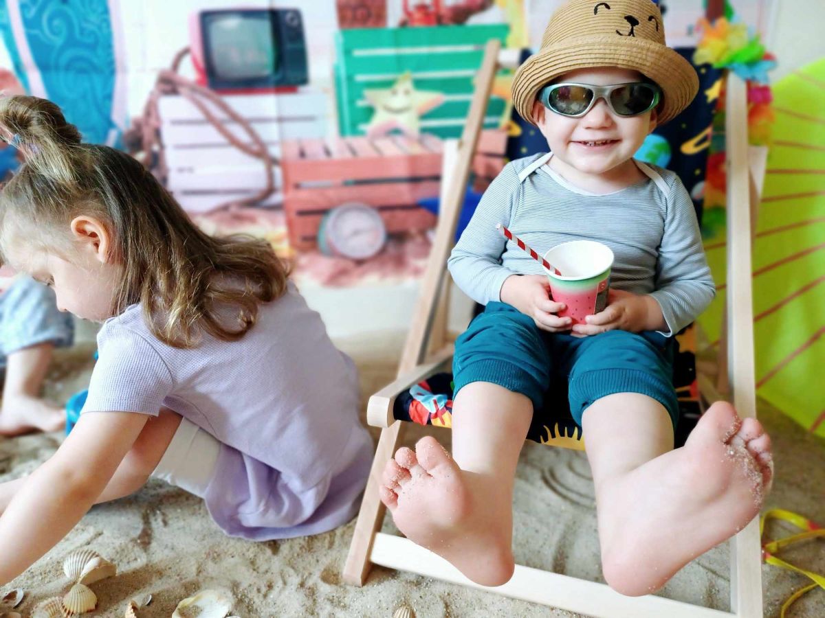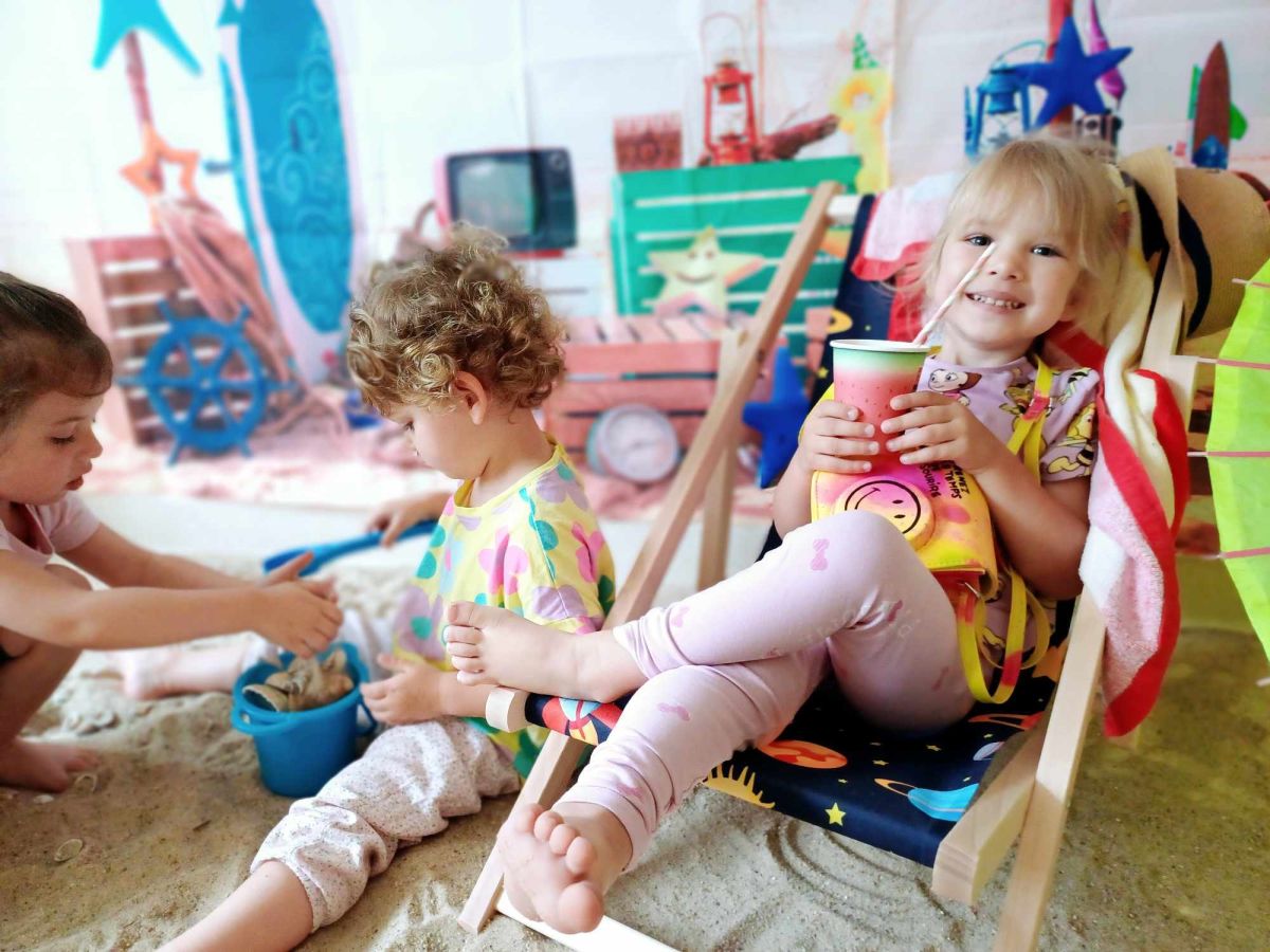 Średniaczki spotykały się na ostatniej już w tym roku żłobkowym sesji zdjęciowej "Dzika plaża". Na sesji nie zabrakło powiewu wakacji. Plaża, złoty piasek, muszelki, leżaczek, słomkowe kapelusze... W oddali słychać było szum morza i śpiew ptaków.