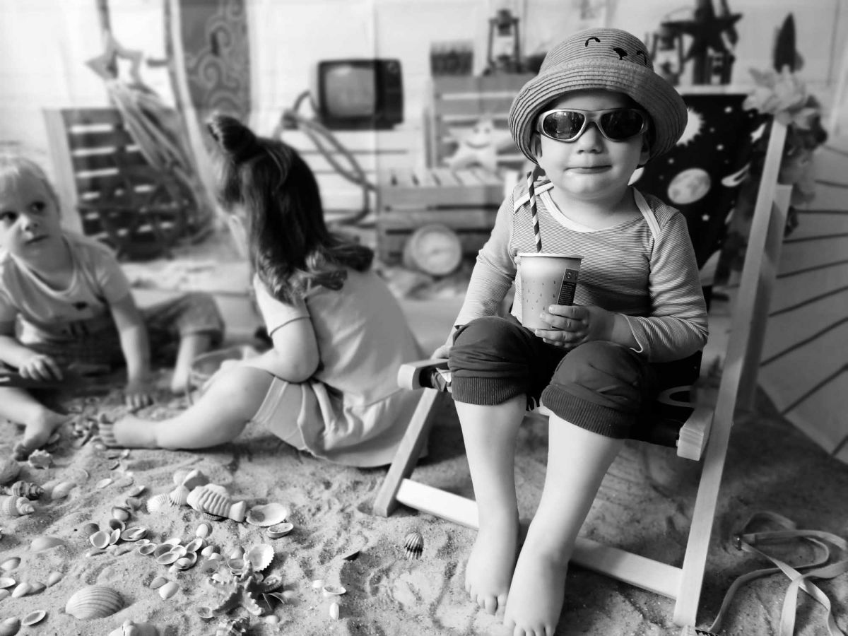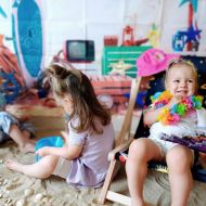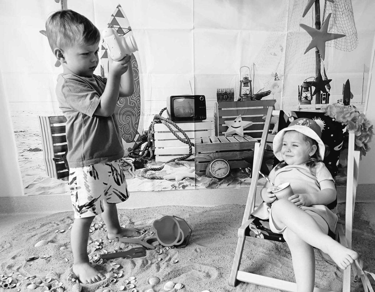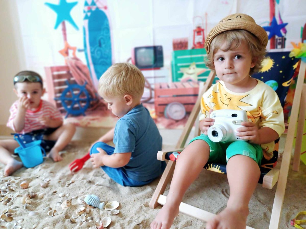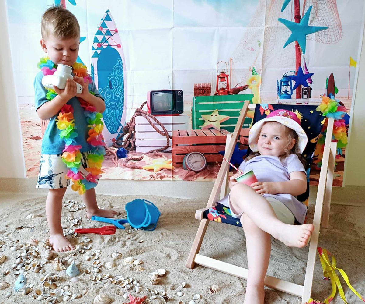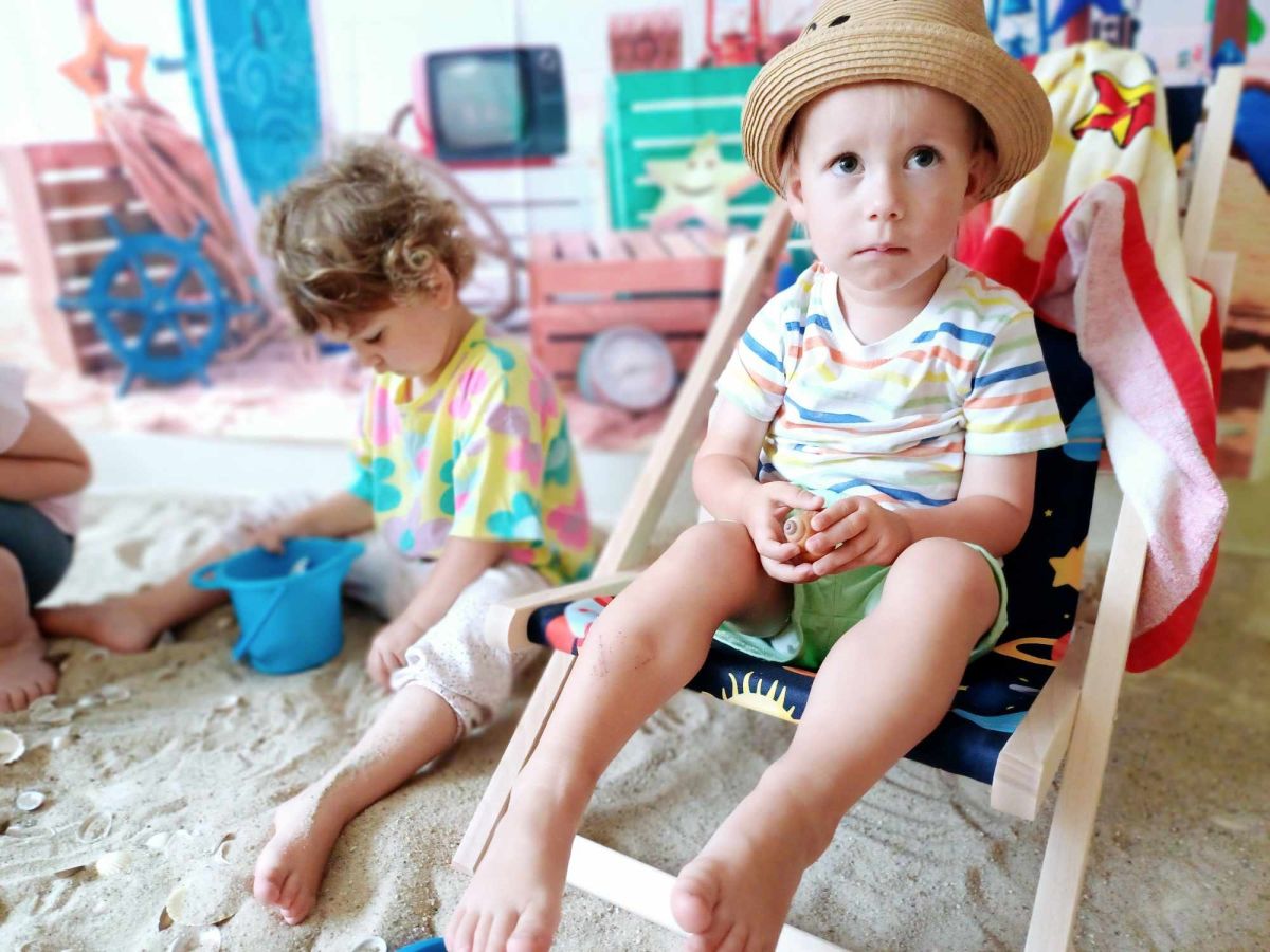 Średniaczki spotykały się na ostatniej już w tym roku żłobkowym sesji zdjęciowej "Dzika plaża". Na sesji nie zabrakło powiewu wakacji. Plaża, złoty piasek, muszelki, leżaczek, słomkowe kapelusze... W oddali słychać było szum morza i śpiew ptaków.