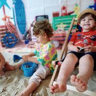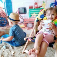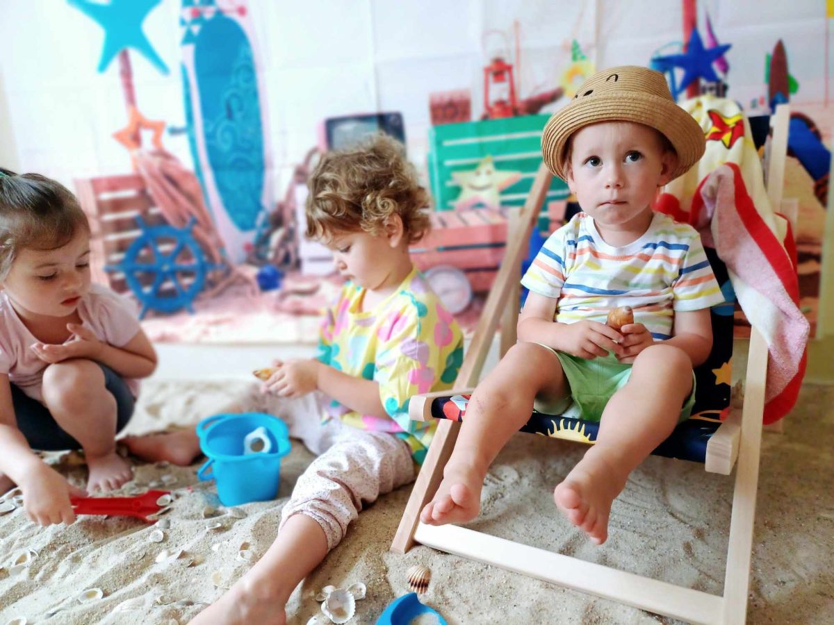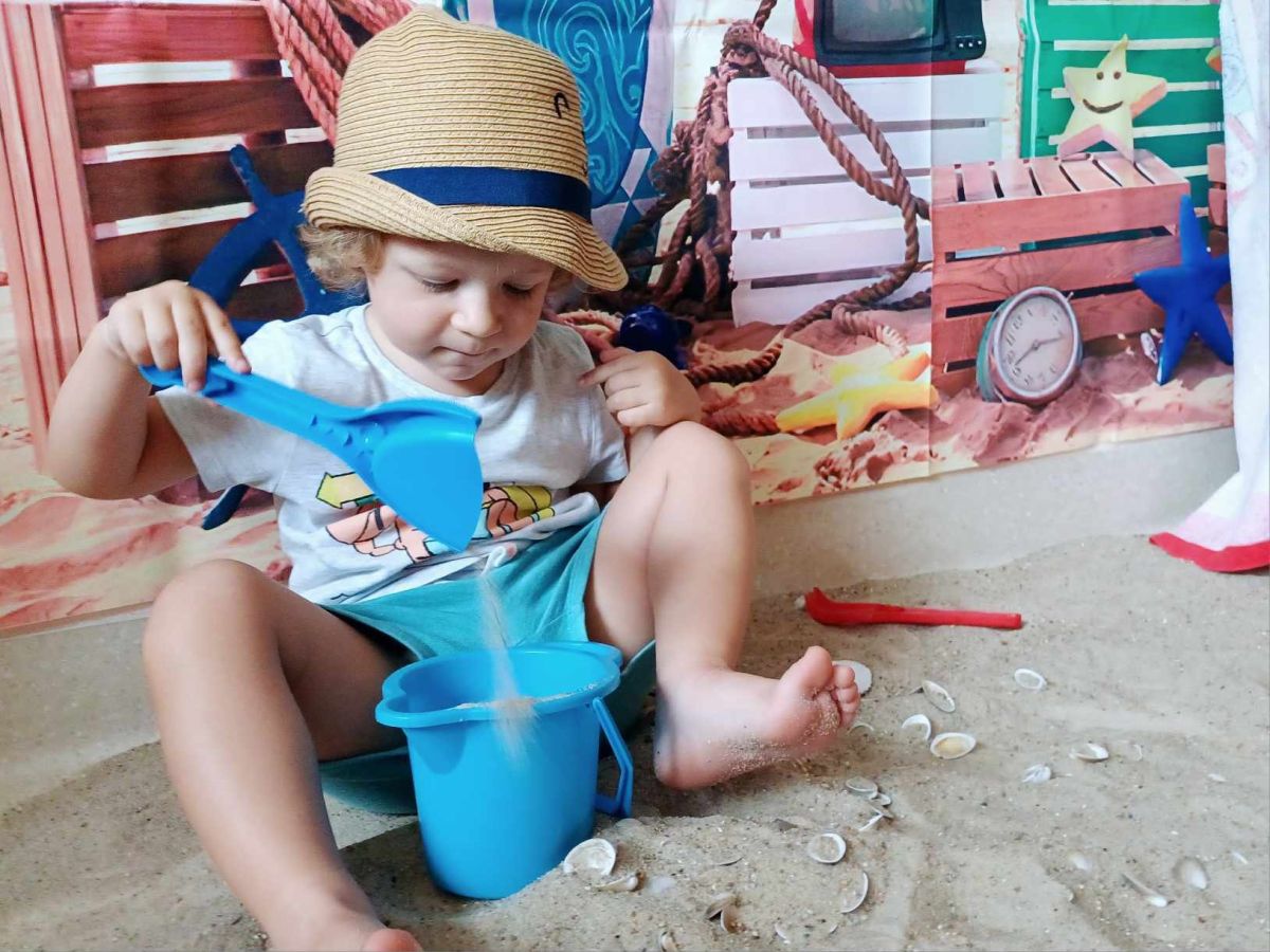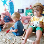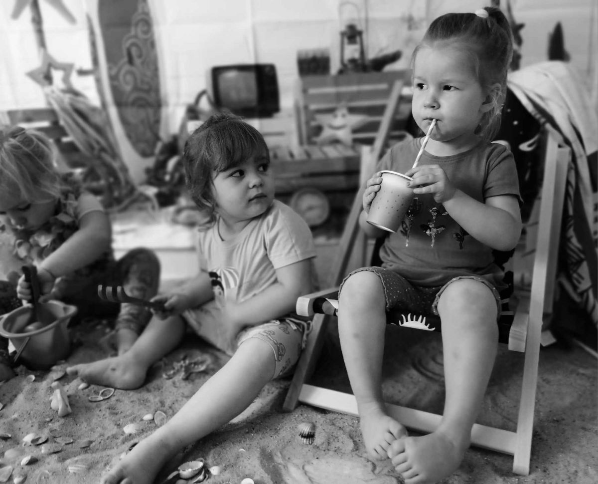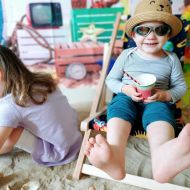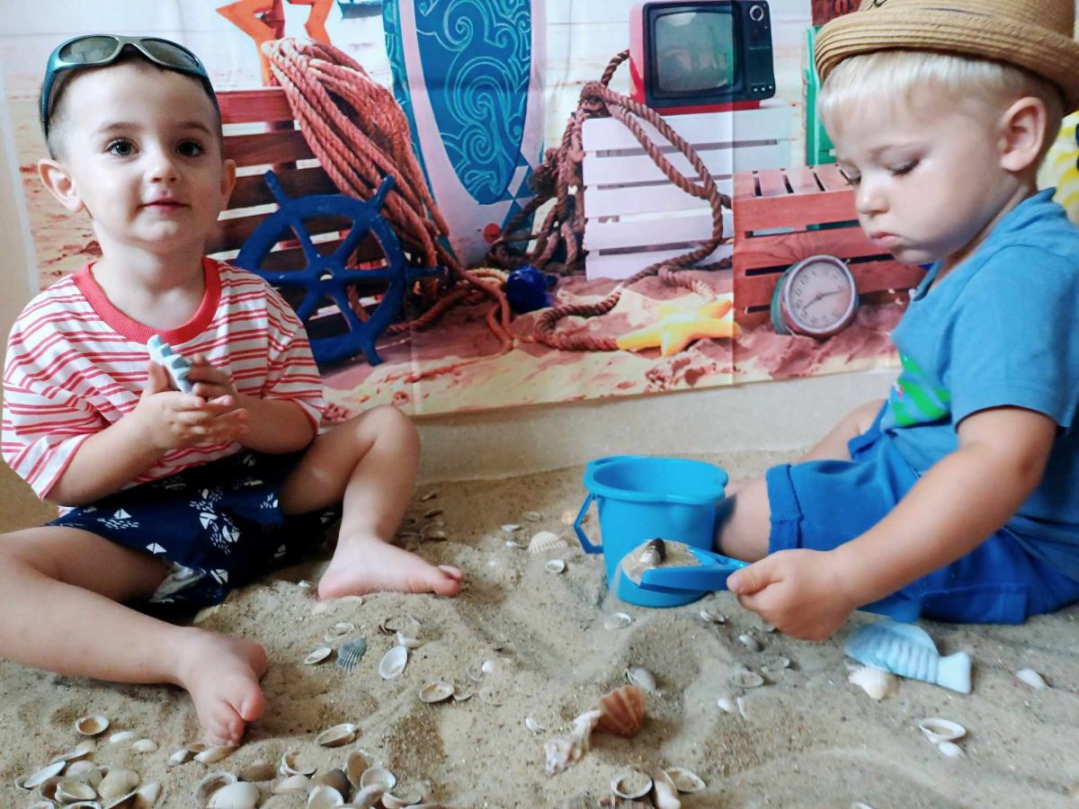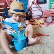 Średniaczki spotykały się na ostatniej już w tym roku żłobkowym sesji zdjęciowej "Dzika plaża". Na sesji nie zabrakło powiewu wakacji. Plaża, złoty piasek, muszelki, leżaczek, słomkowe kapelusze... W oddali słychać było szum morza i śpiew ptaków.