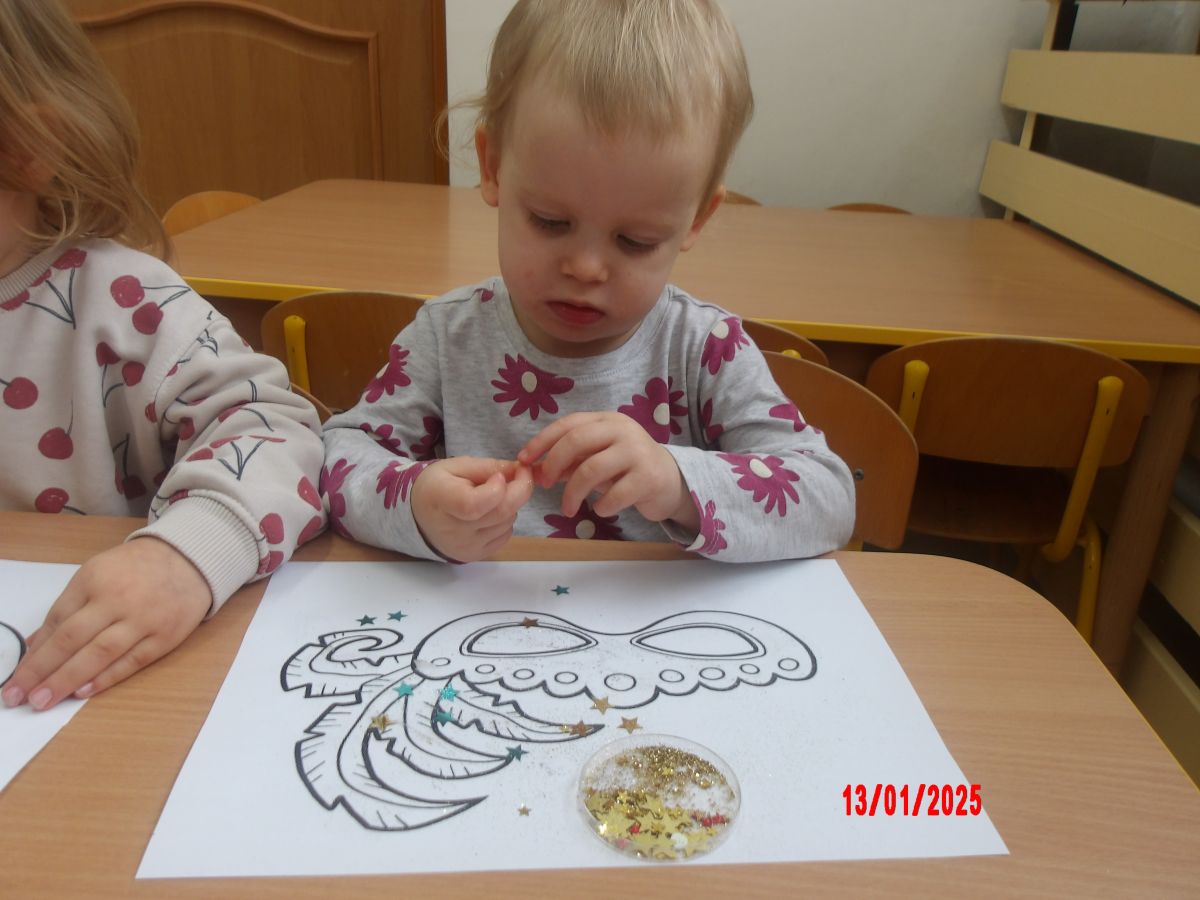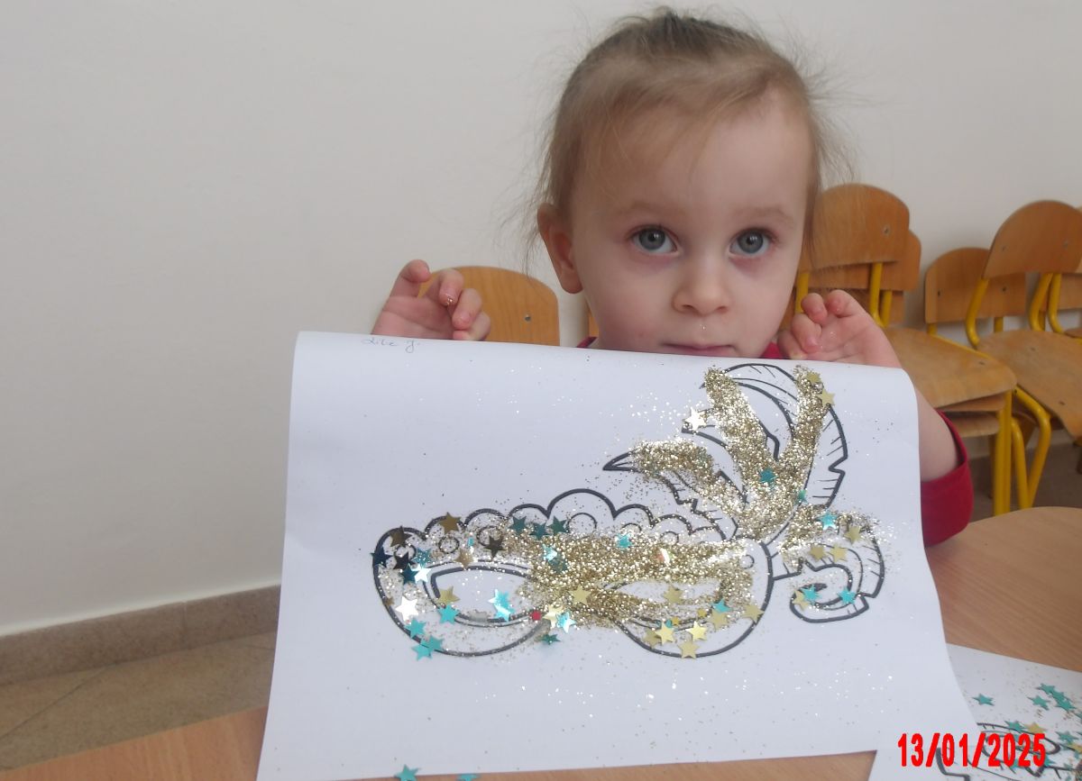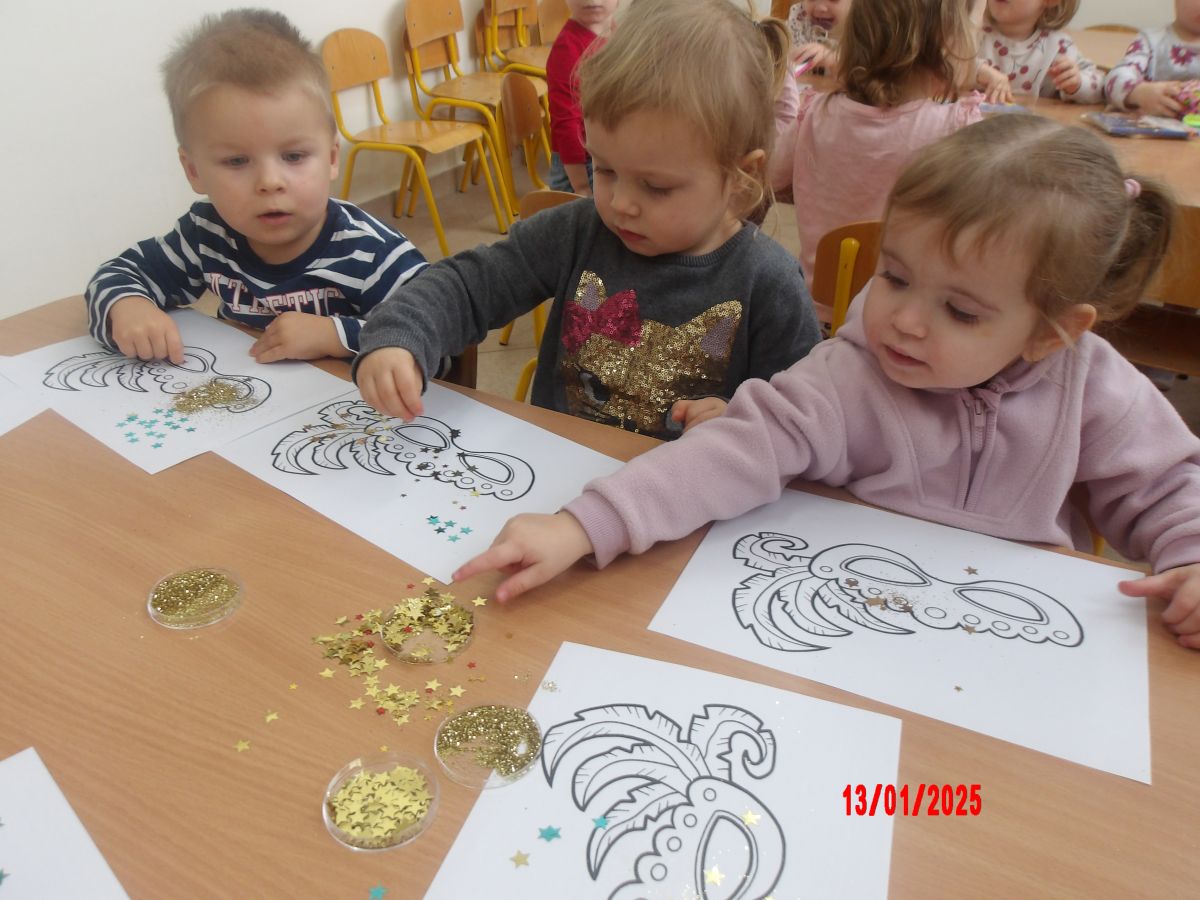 Opublikowano: wt., 01/14/2025 - 09:08 W oczekiwaniu na bal karnawałowy Średniaczki wykonały pracę plastyczną pt. "Maska karnawałowa".Do przygotowania masek wykorzystano brokat i kolorowe błyszczące gwiazdki.Wyobraźnia i kreatywność Średniaczków nie miała końca...