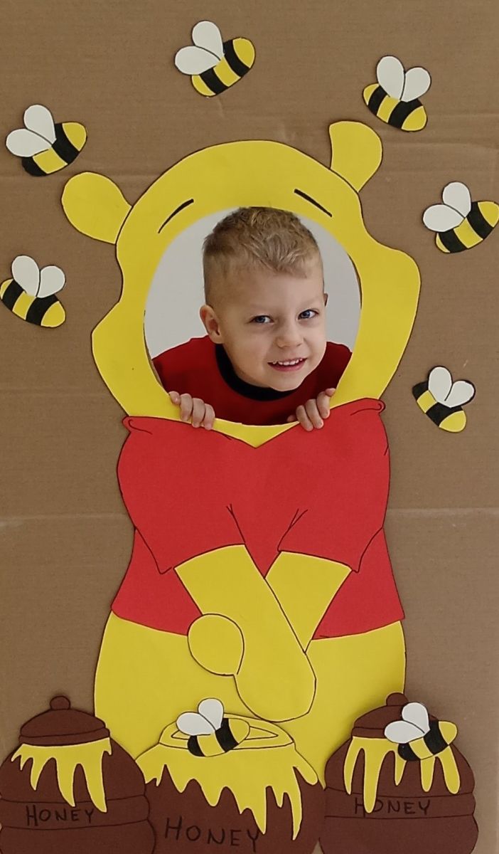 Opublikowano: pt., 01/16/2026 - 13:41 Z okazji nadchodzącego Dnia Kubusia Puchatka Starszaki pozowały do zdjęć w przygotowanej przez ciocie fotobudce, słuchały z wielkim zainteresowaniem o przygodach misia oraz utworów muzycznych z bajek o Kubusiu.