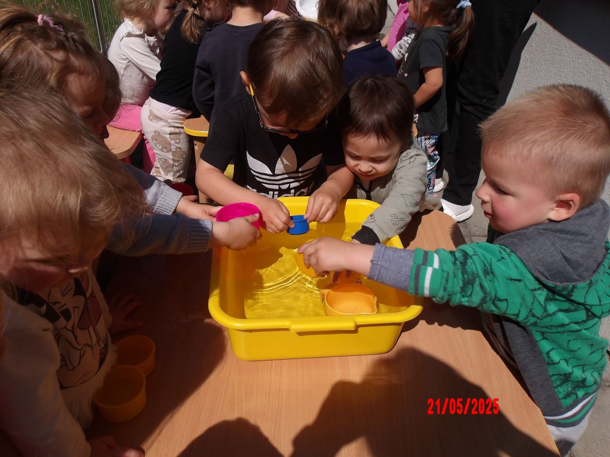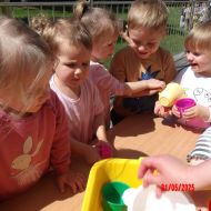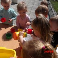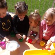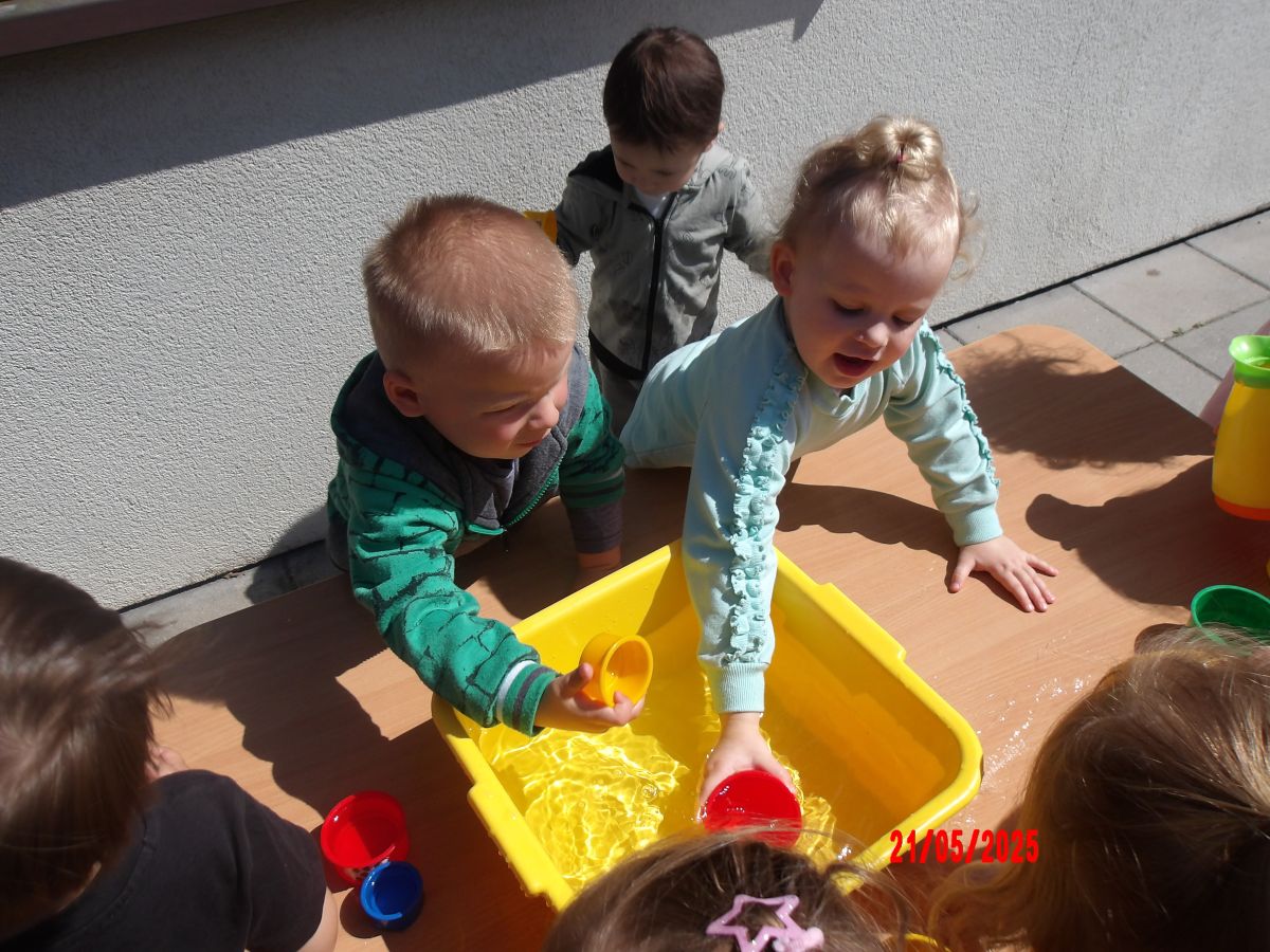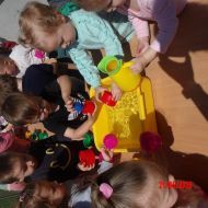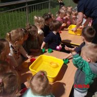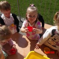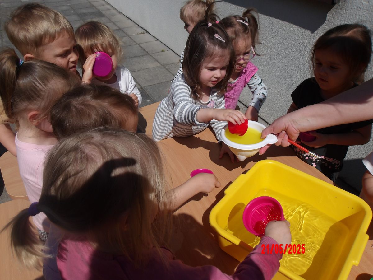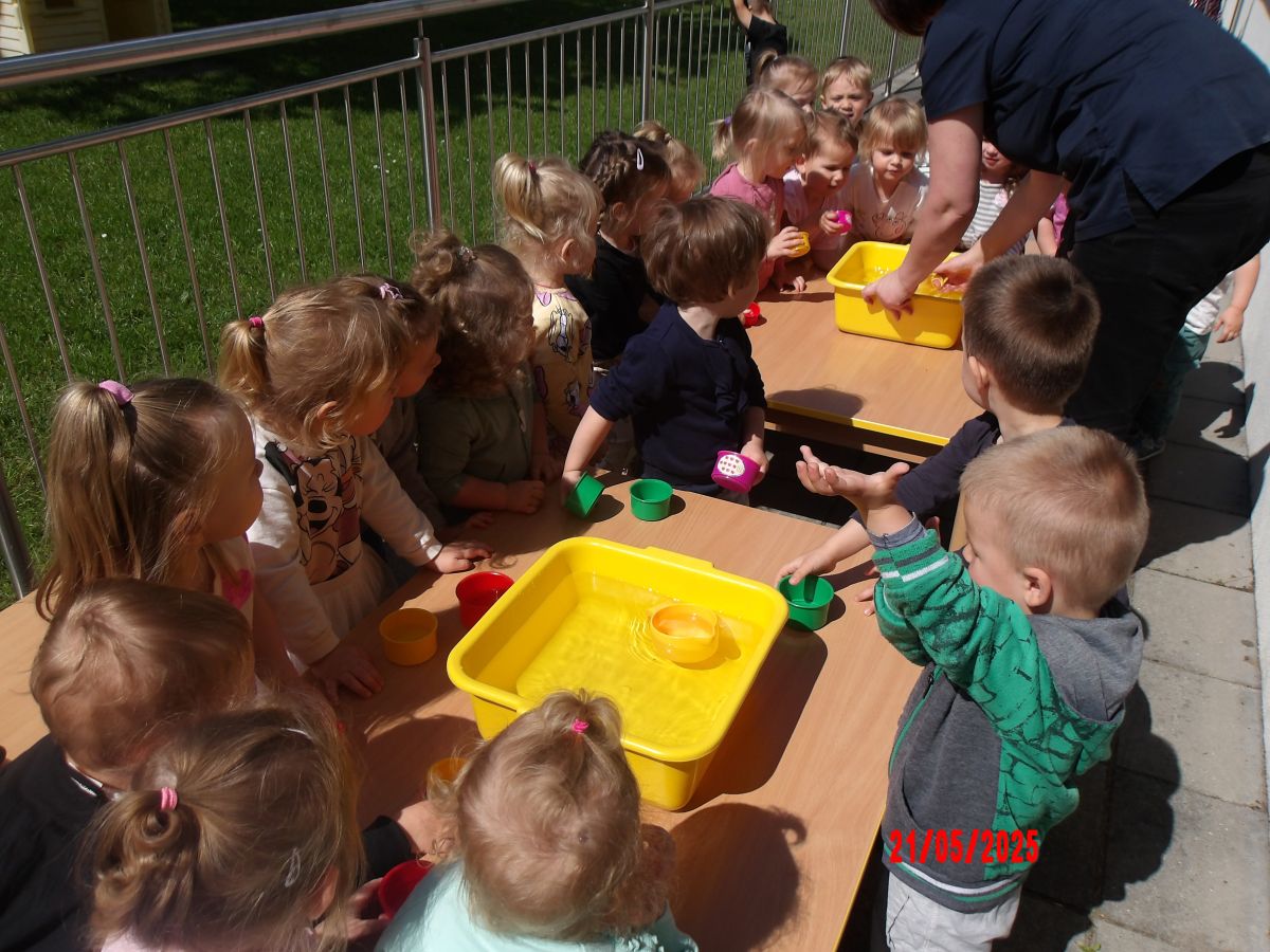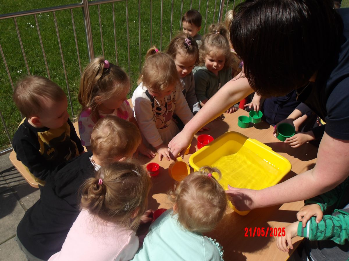 Z dużą ciekawością odkrywały właściwości cieczy. Przelewały, wylewały, a
