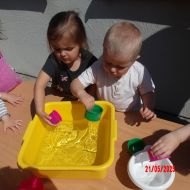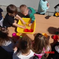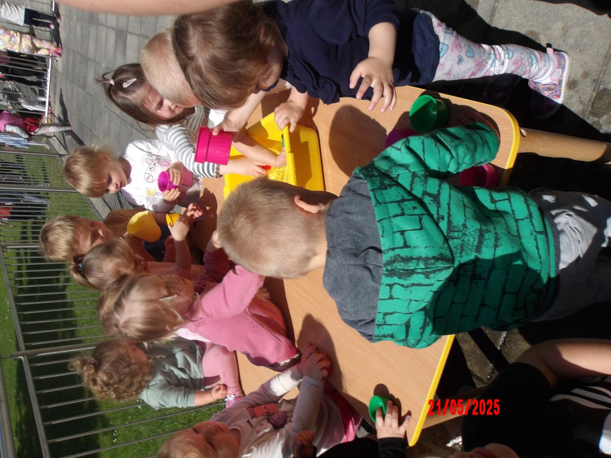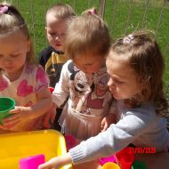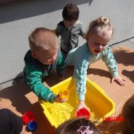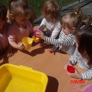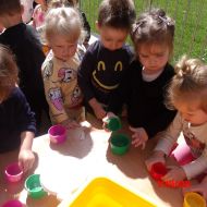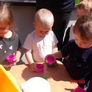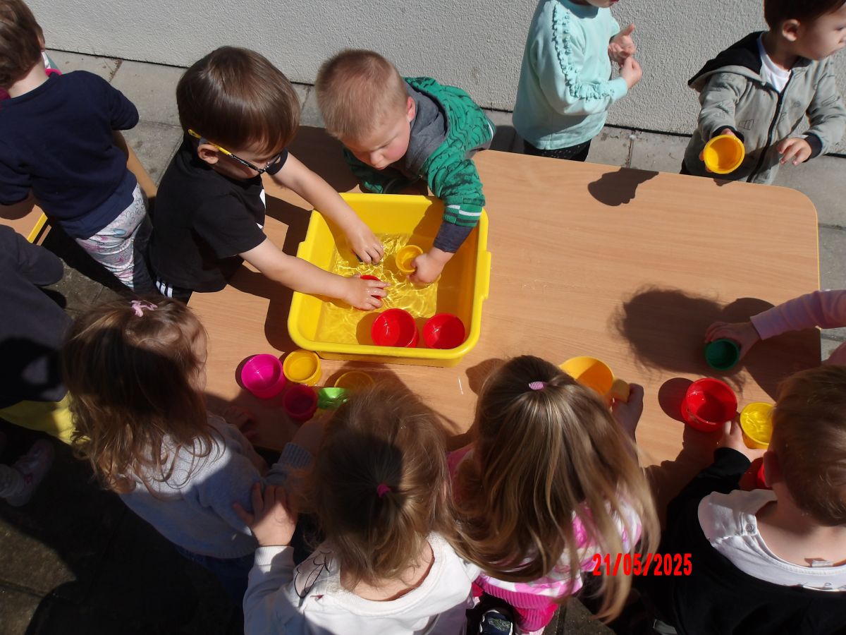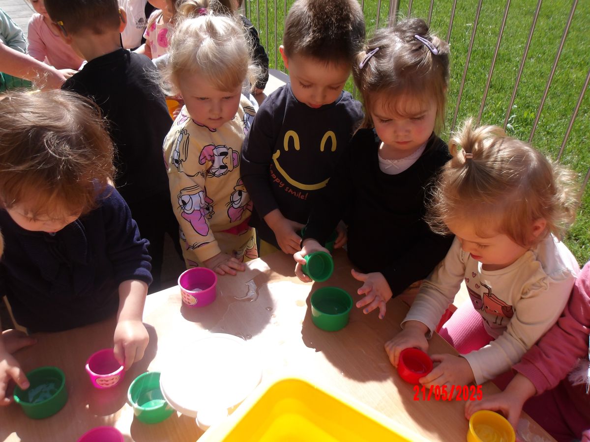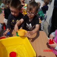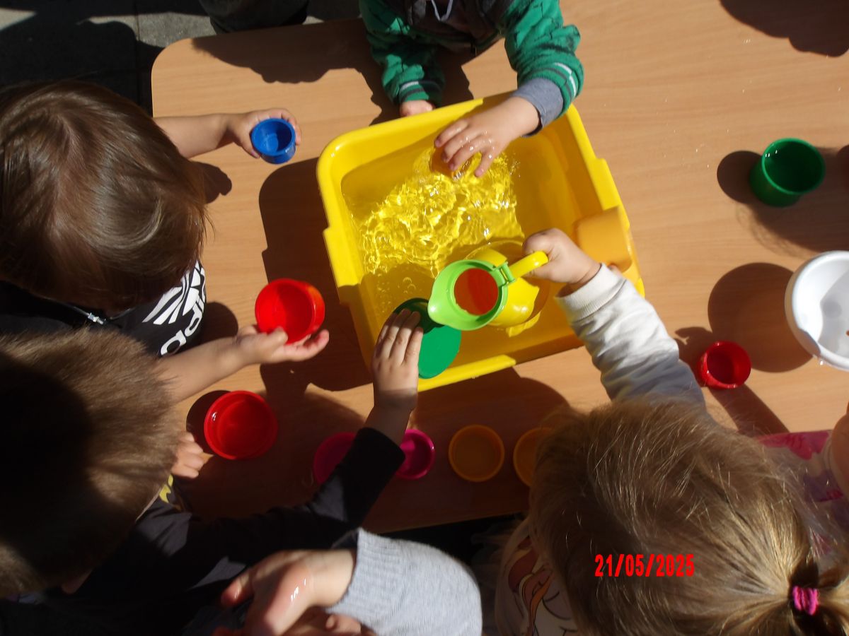 Z dużą ciekawością odkrywały właściwości cieczy. Przelewały, wylewały, a