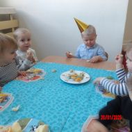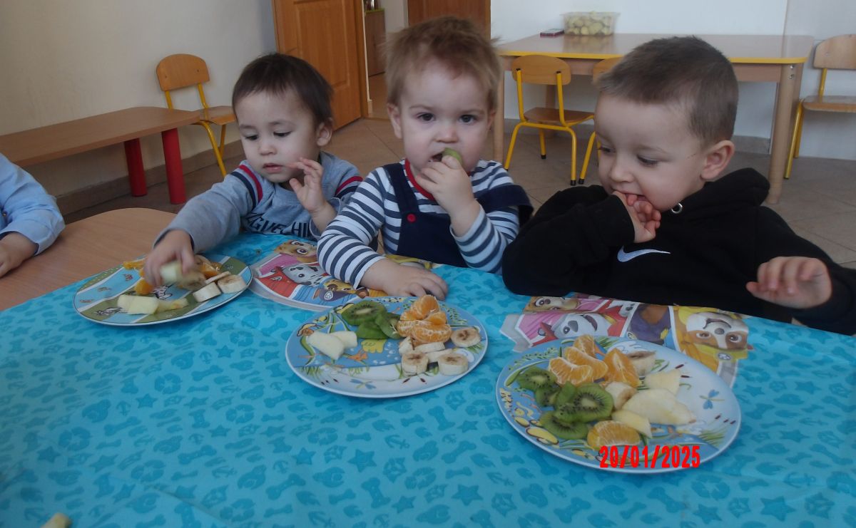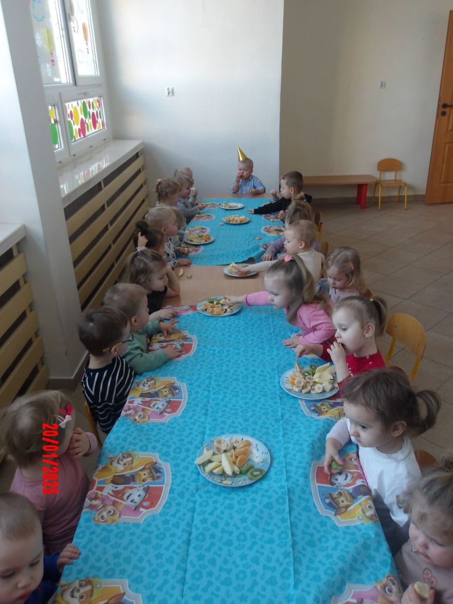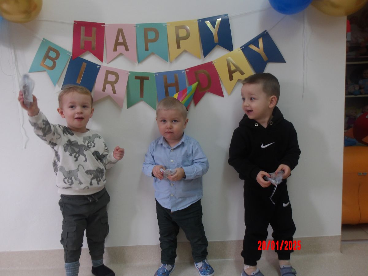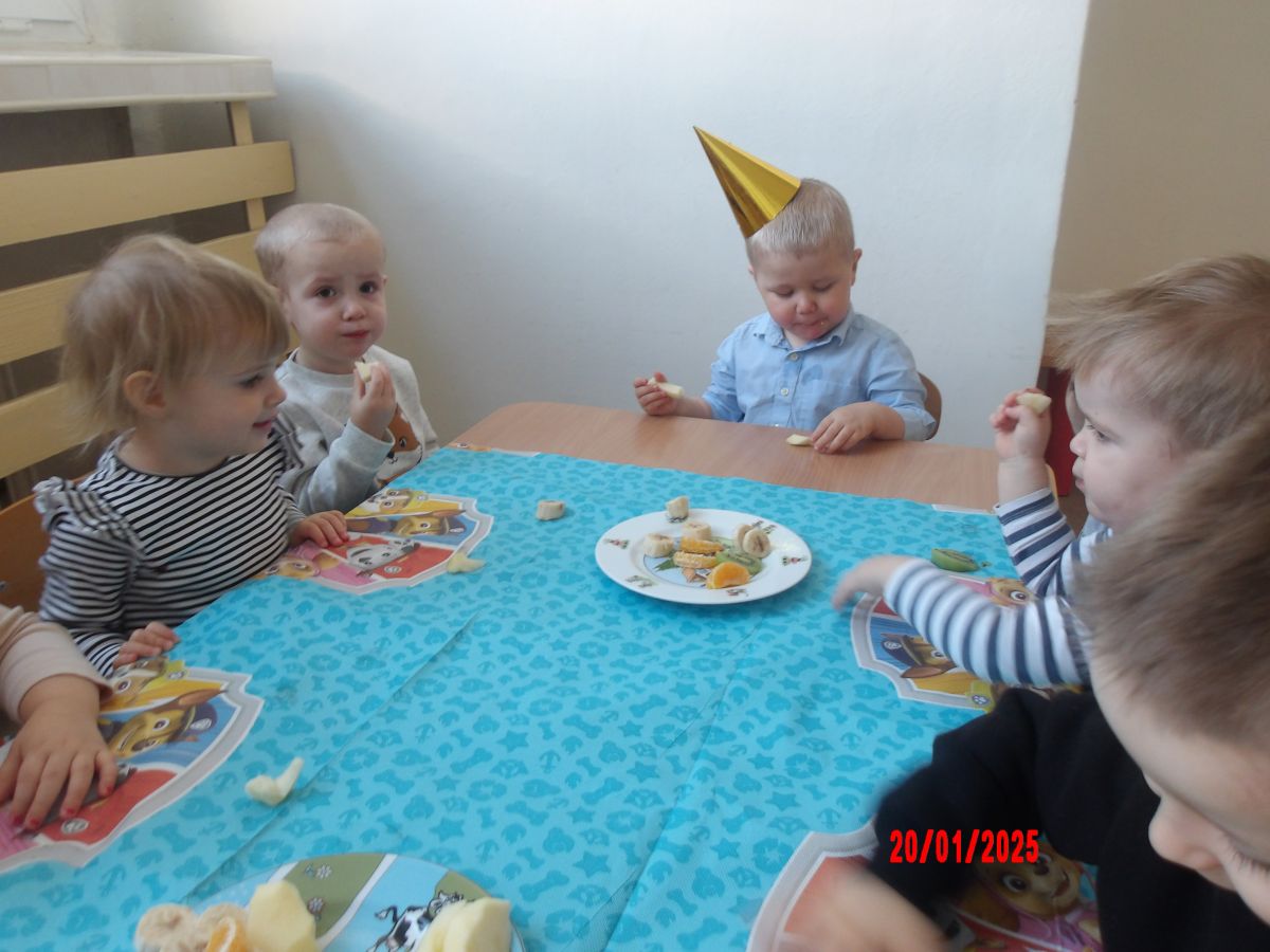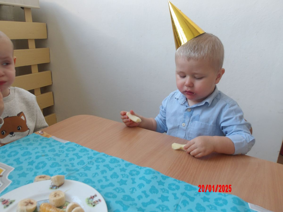 Opublikowano: pon., 01/20/2025 - 14:24 Do grona Dwulatków dołączył Wojtuś.Wojtuś przygotował dla wszystkich uczestników upominki. Przyjęcie obfitowało w zdrowe owoce: kiwi, jabłka, banany i mandarynki.Wybrzmiało radosne "Sto lat!"Wszystkiego najlepszego Wojtusiu!