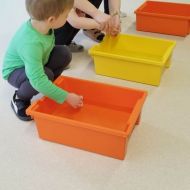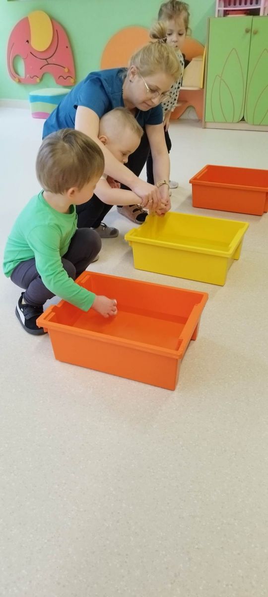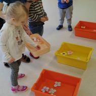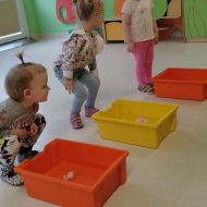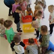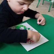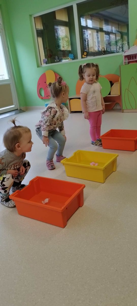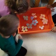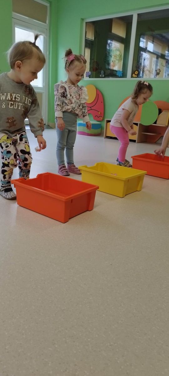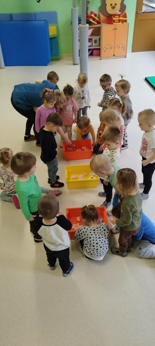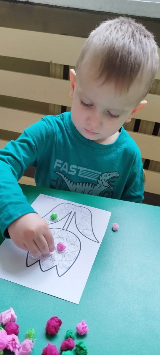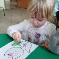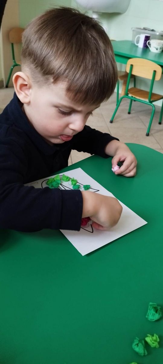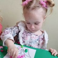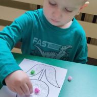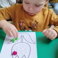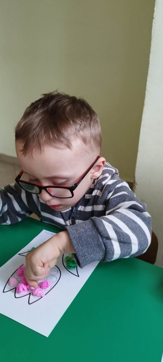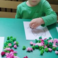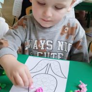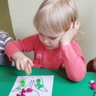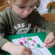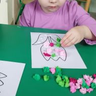 Z okazji pierwszego dnia wiosny dzieci wykonywały również pracę plastyczną. Wyklejały kolorowymi kulkami z bibuły wiosennego tulipana. To zabawa, która rozwija motorykę małą oraz pobudza wyobraźnię dzieci.