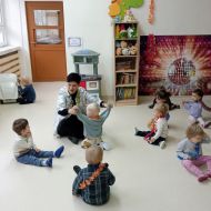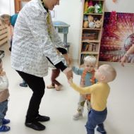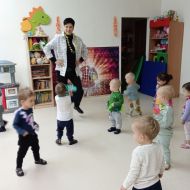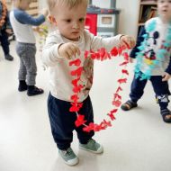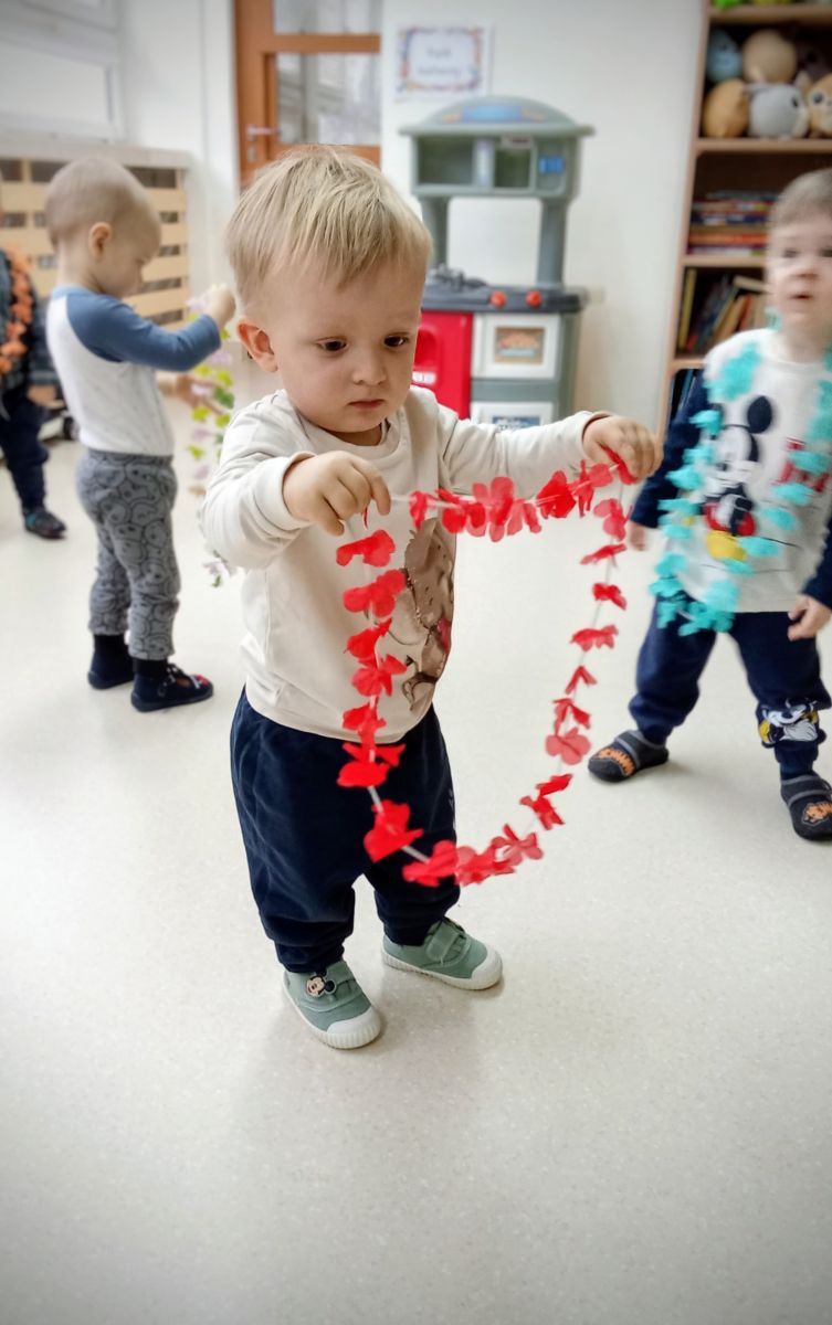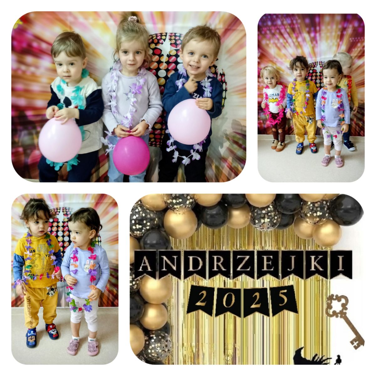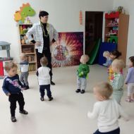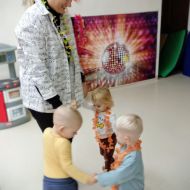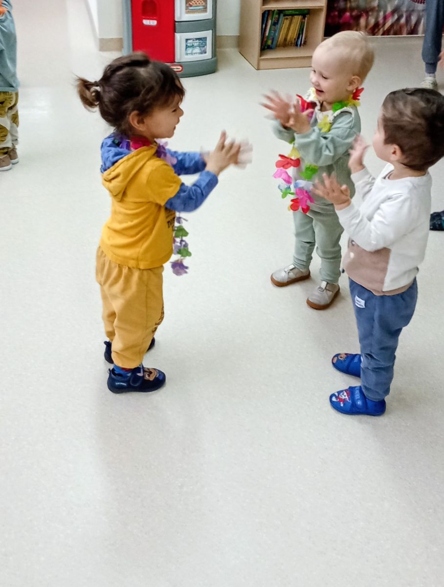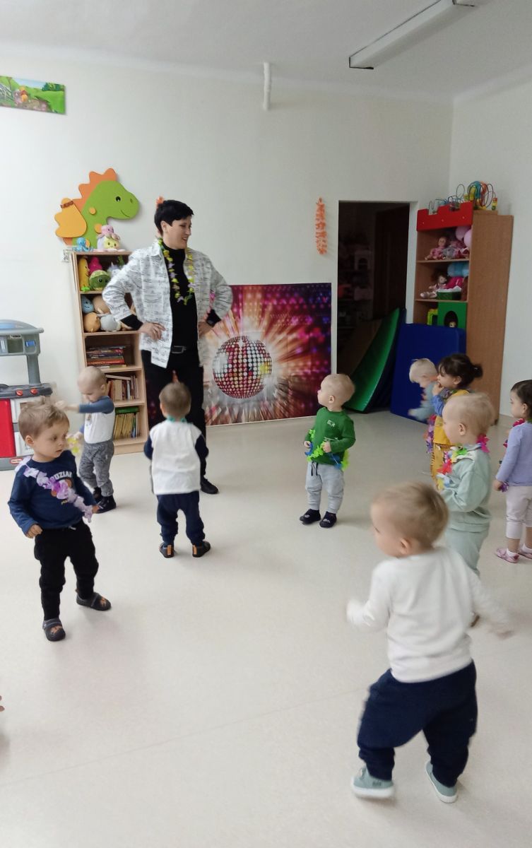 W andrzejkową rytmikę dzieci bawiły się w rytmie skocznych, wesołych piosenek. Na początek wszyscy ruszyli w taniec hawajski - machając łańcuchami z kolorowych kwiatów.