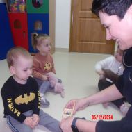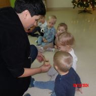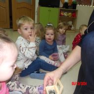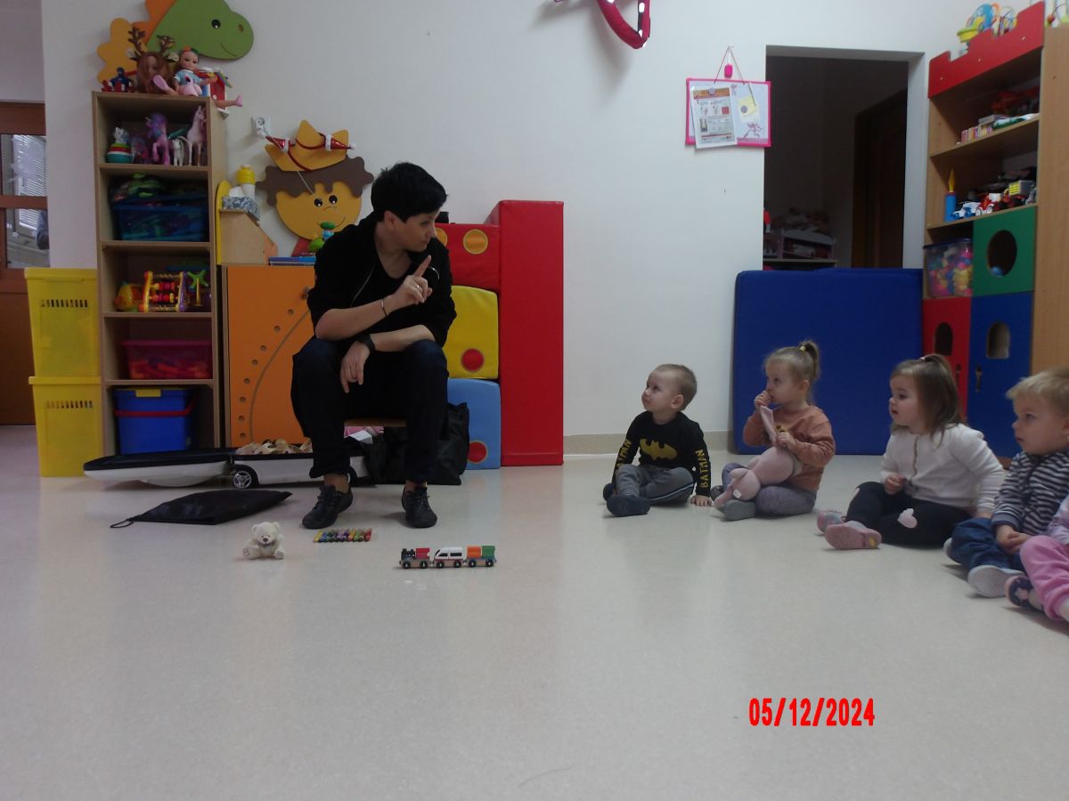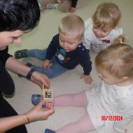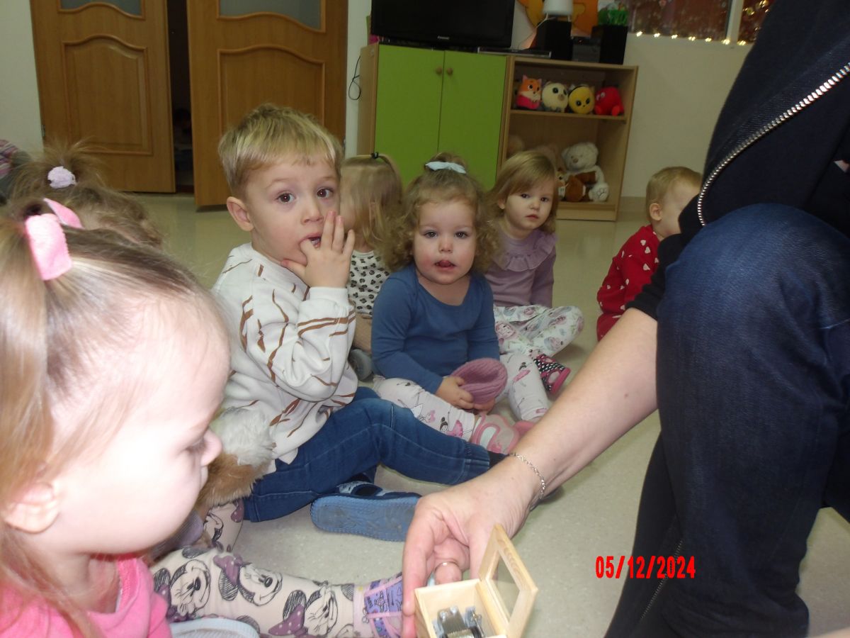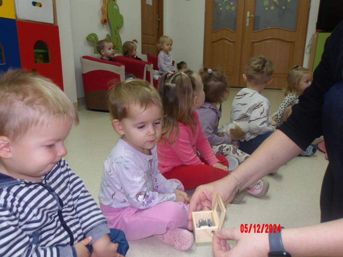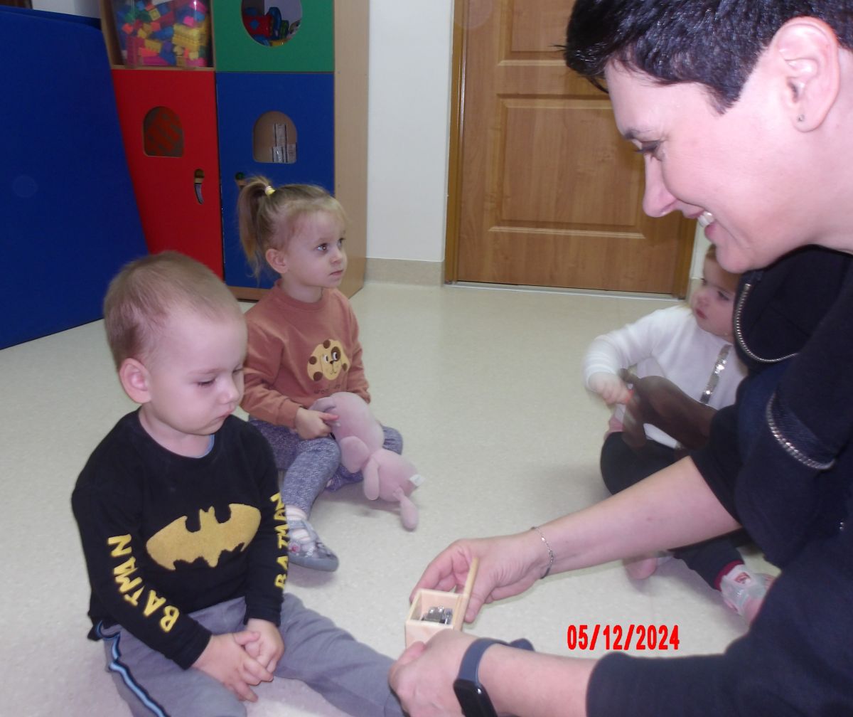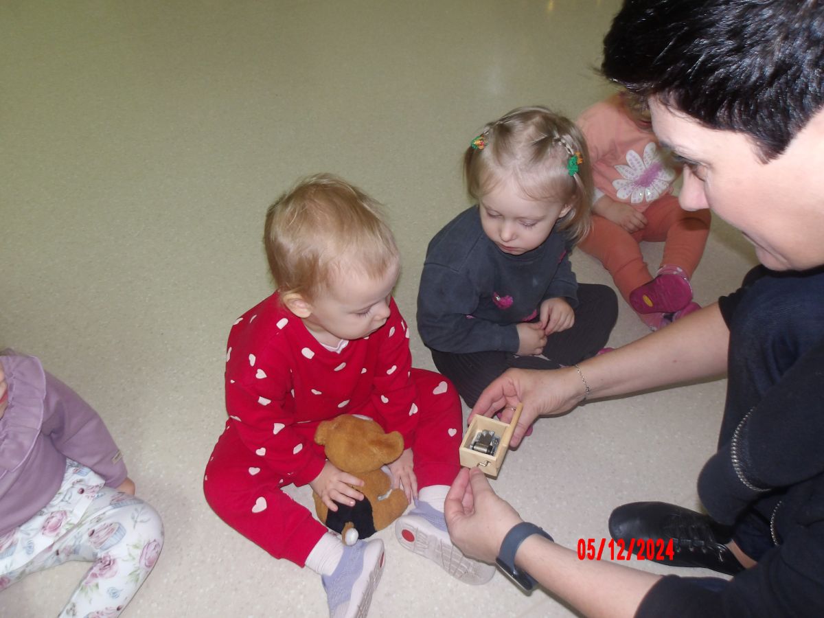Dzieci przeniosły się również w świat muzycznych zaczarowanych dźwięków i poznały Myszkę Pozytywkę oraz pozytywkę.