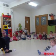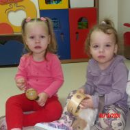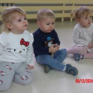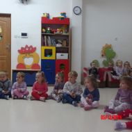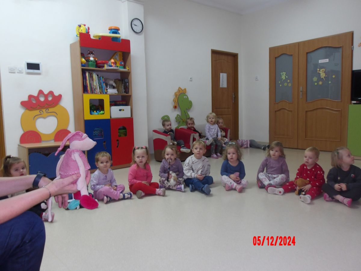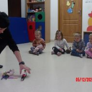Średniaczki na zajęciach rytmiki wysłuchały "Bajki o Mateuszku", z której dowiedziały się jak należy postępować z zabawkami.