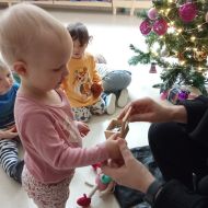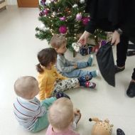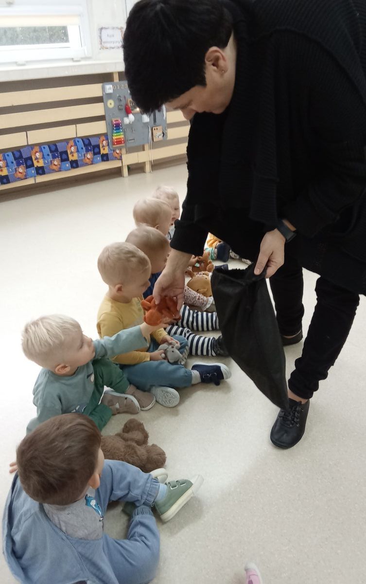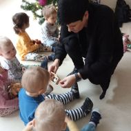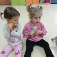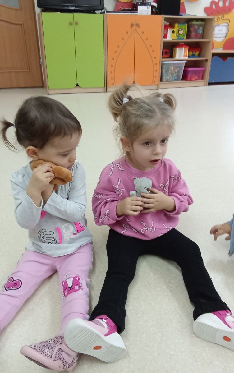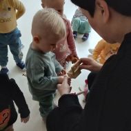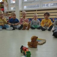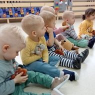 Rytmiczne aktywności były bardzo ciekawe i pełne atrakcji, rozpoczęły się od "Bajki o zepsutych zabawkach"... Po bajce, Średniaczki kołysały do rytmu pluszaki do snu przy "Zabawkowej usypiance".