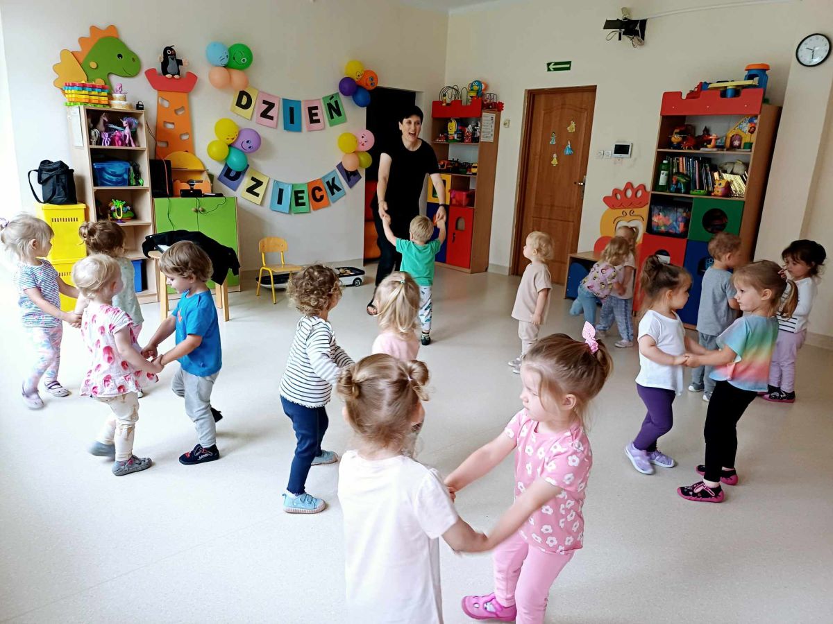 Opublikowano: śr., 06/12/2024 - 11:54 Zajęcia rytmiki były poświęcone zabawom na łące. Nie zabrakło skocznych zabaw do piosenek "Bal na łące" czy "Motylki i żuki". Dzieci zagrały przepiękny koncert "Na zielonej polanie" z udziałem nowo poznanego instrumentu "Mak".