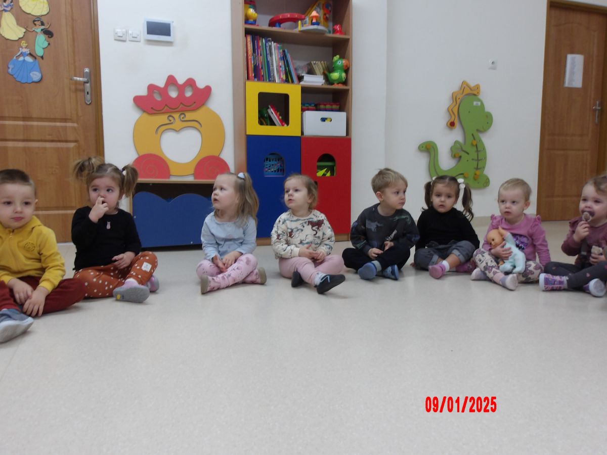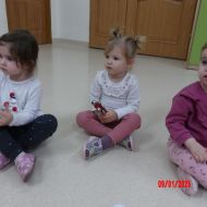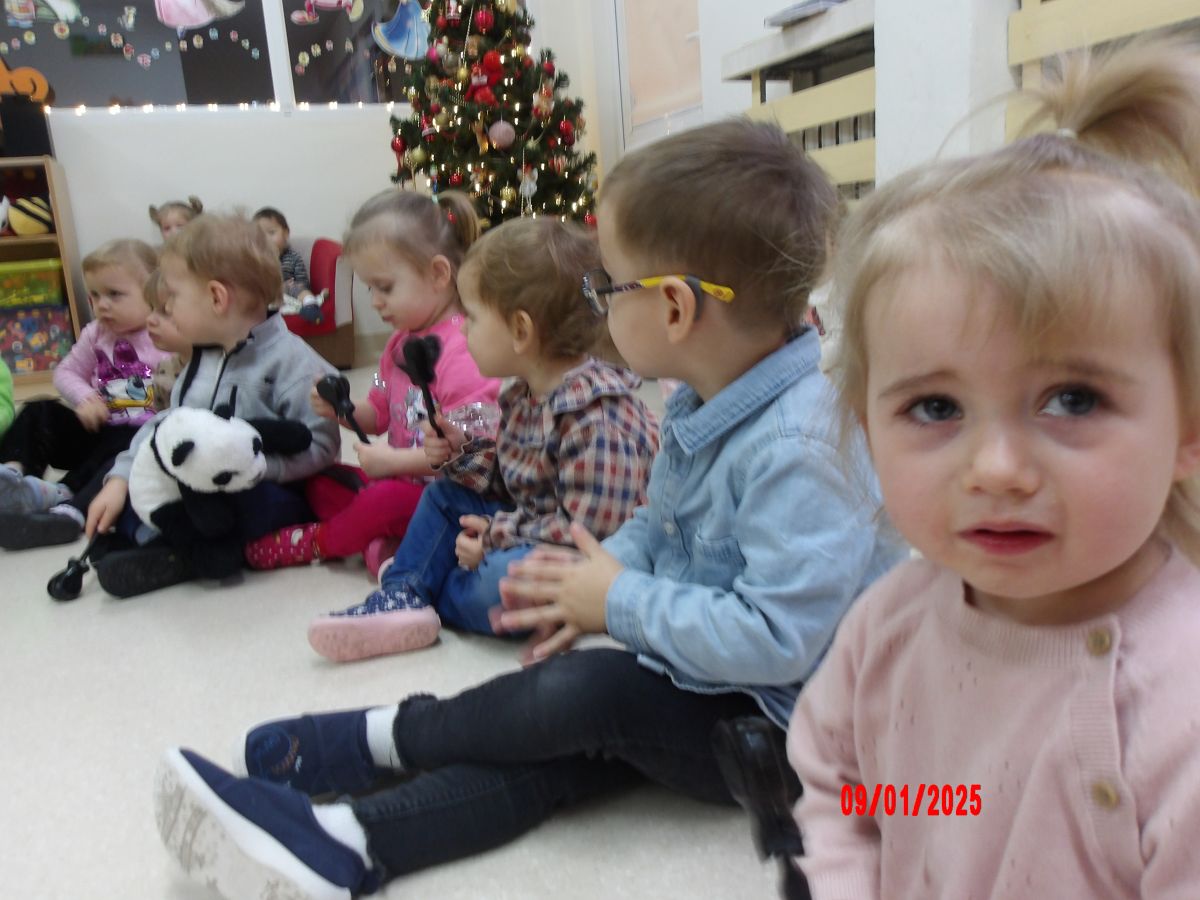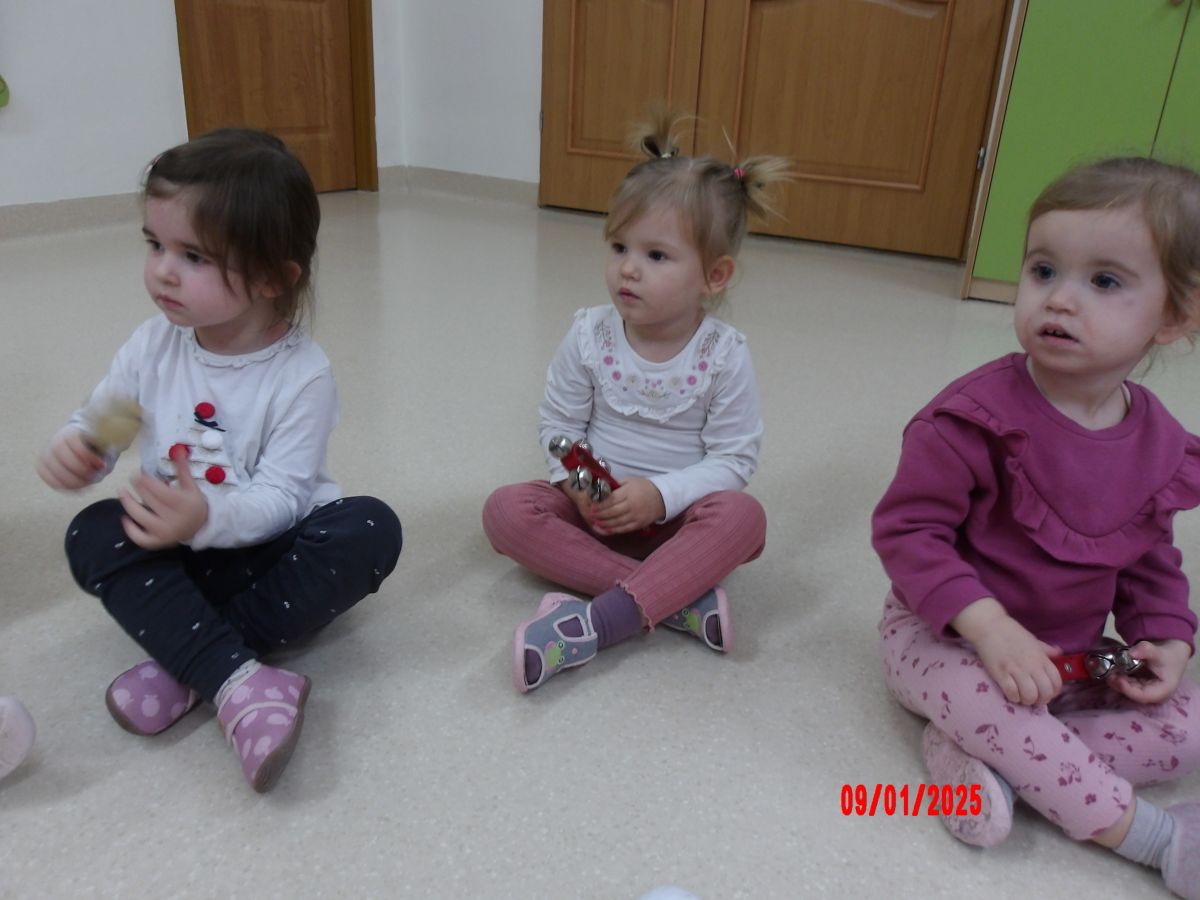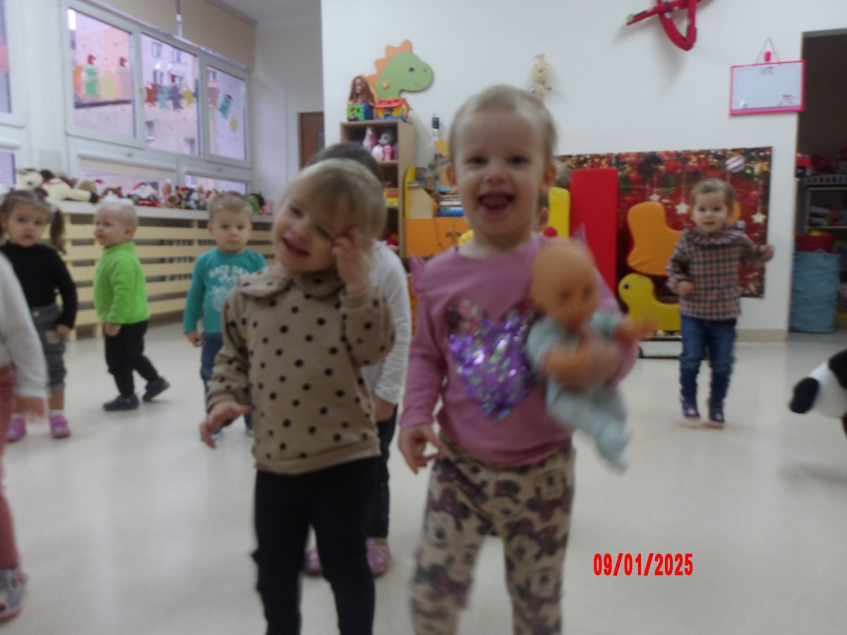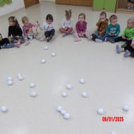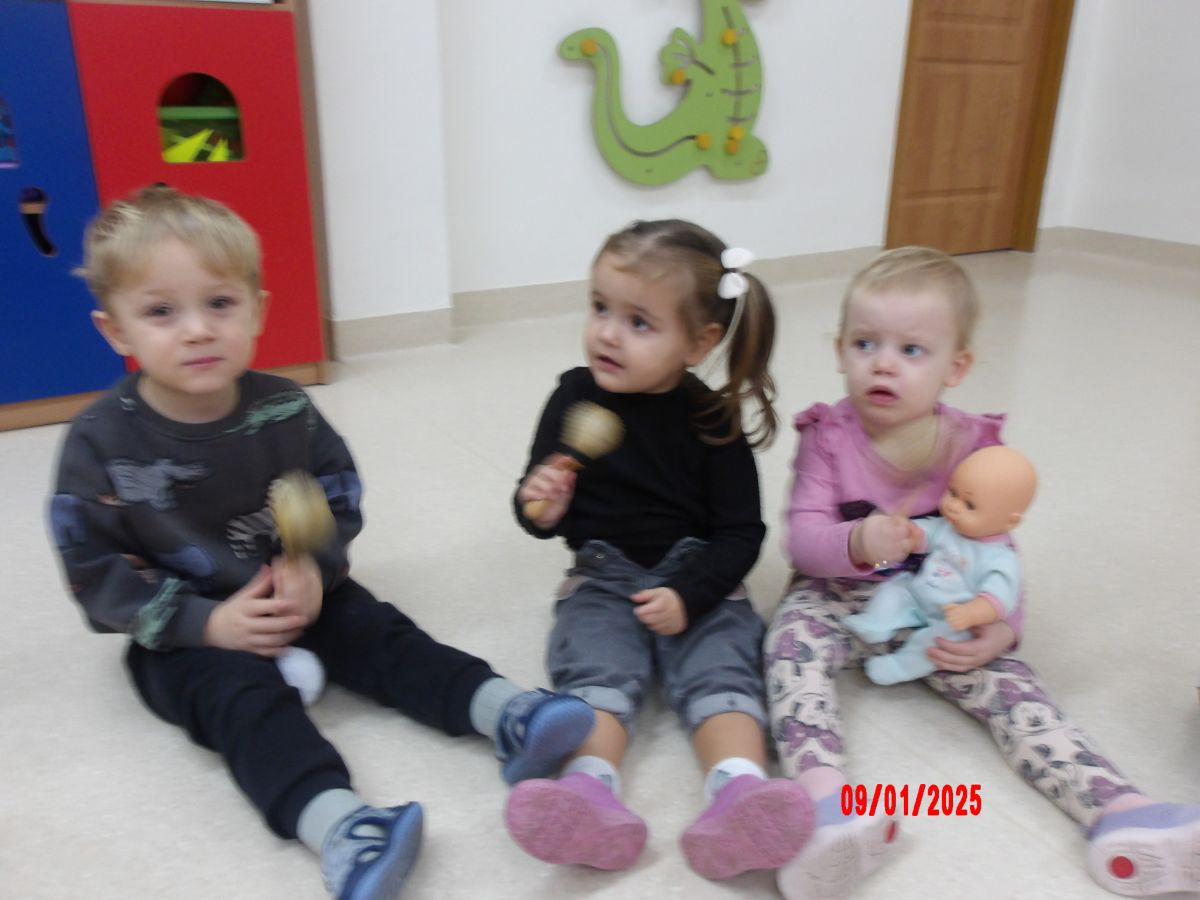 Na zajęciach rytmiki, dzieci w oczekiwaniu na zimę, bawiły się śnieżkami do piosenki "Przyszła zima biała". Muzyczną orkiestrę Średniaczki stworzyły do utworów "Tupu Tup" oraz "Śnieżek prószy".