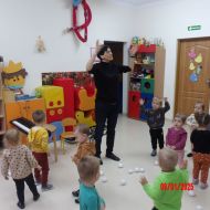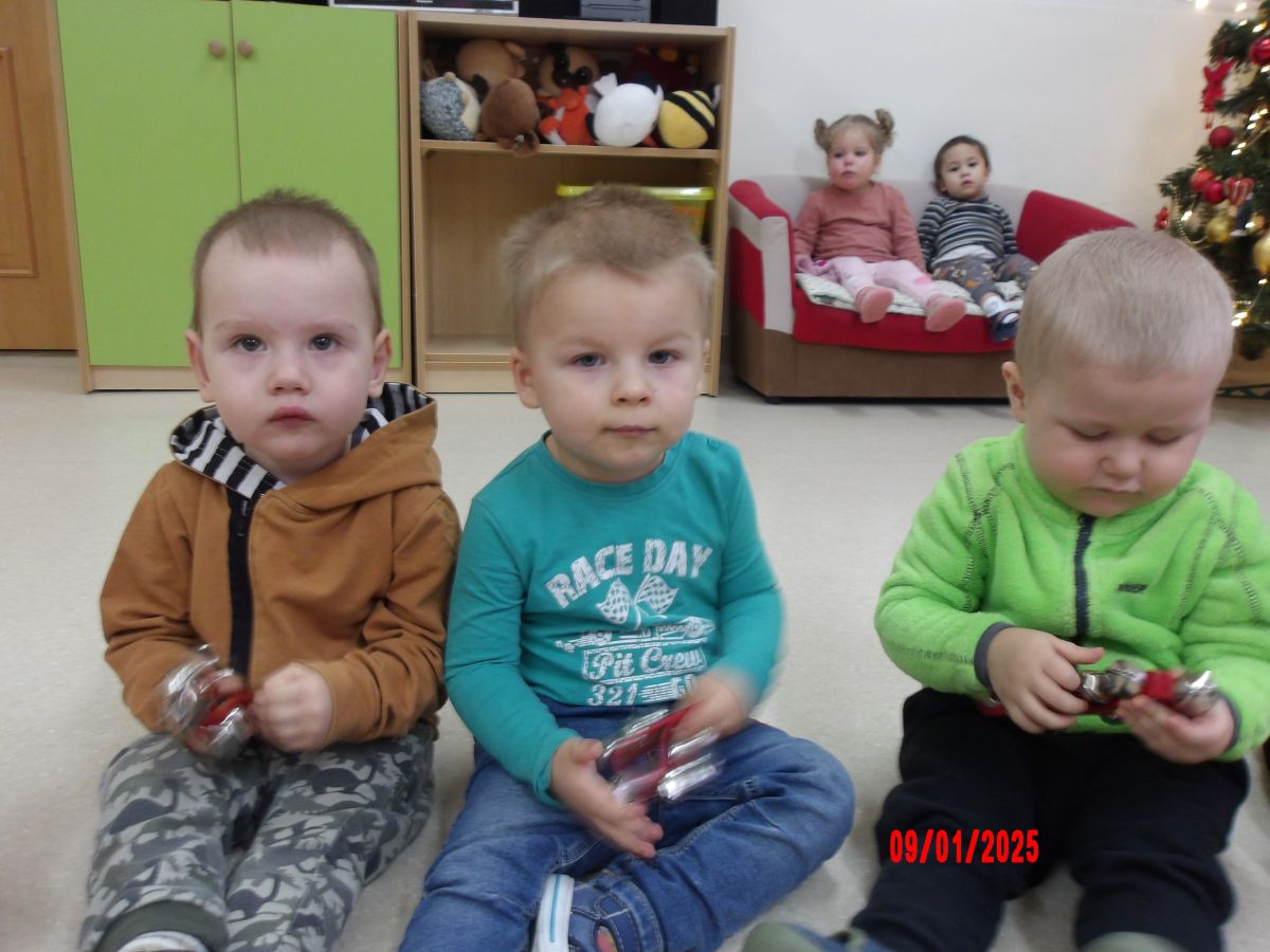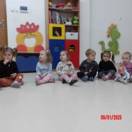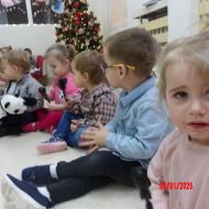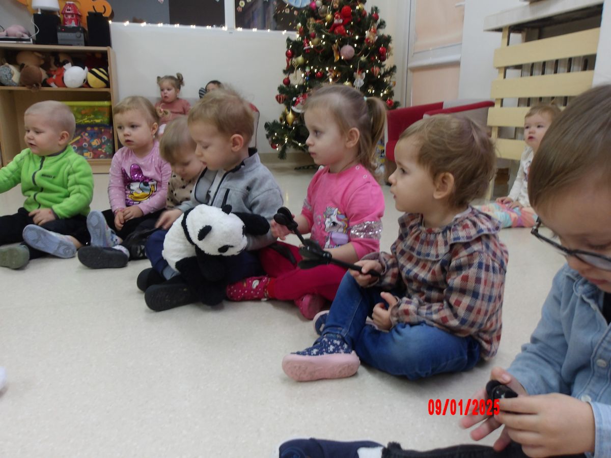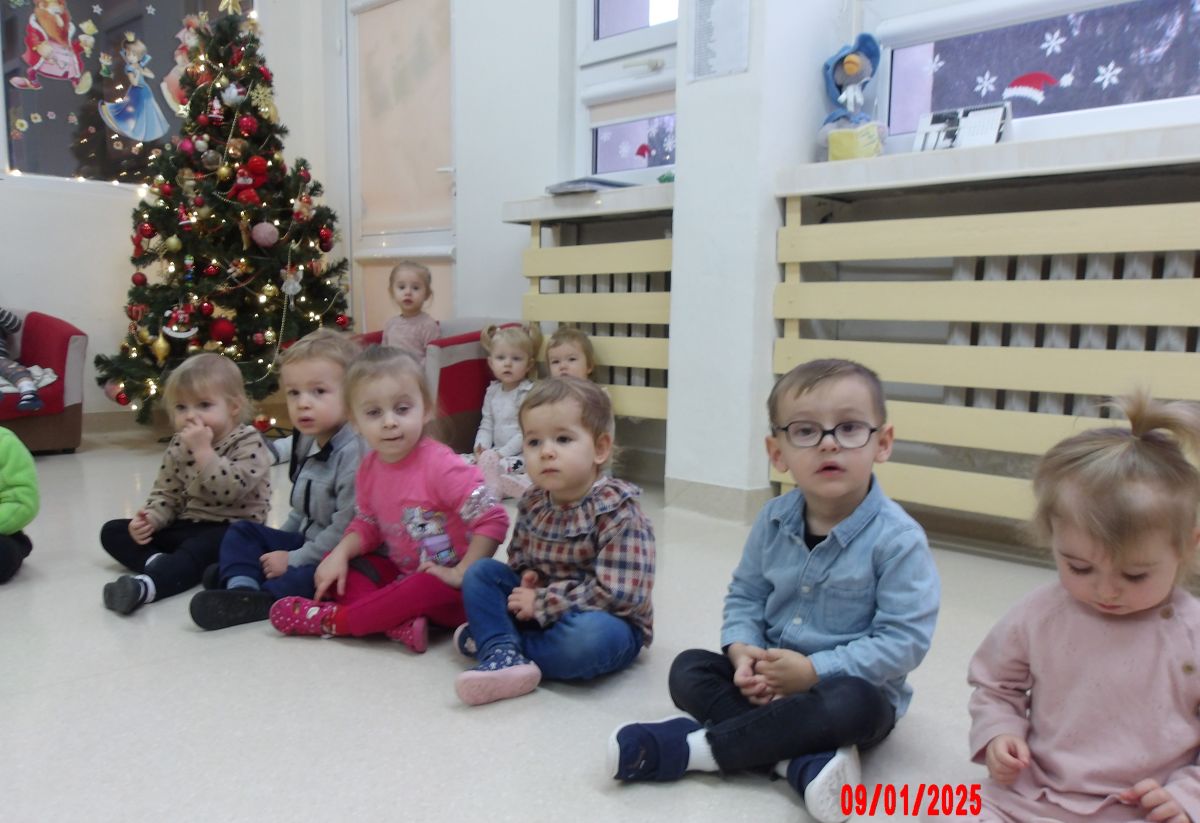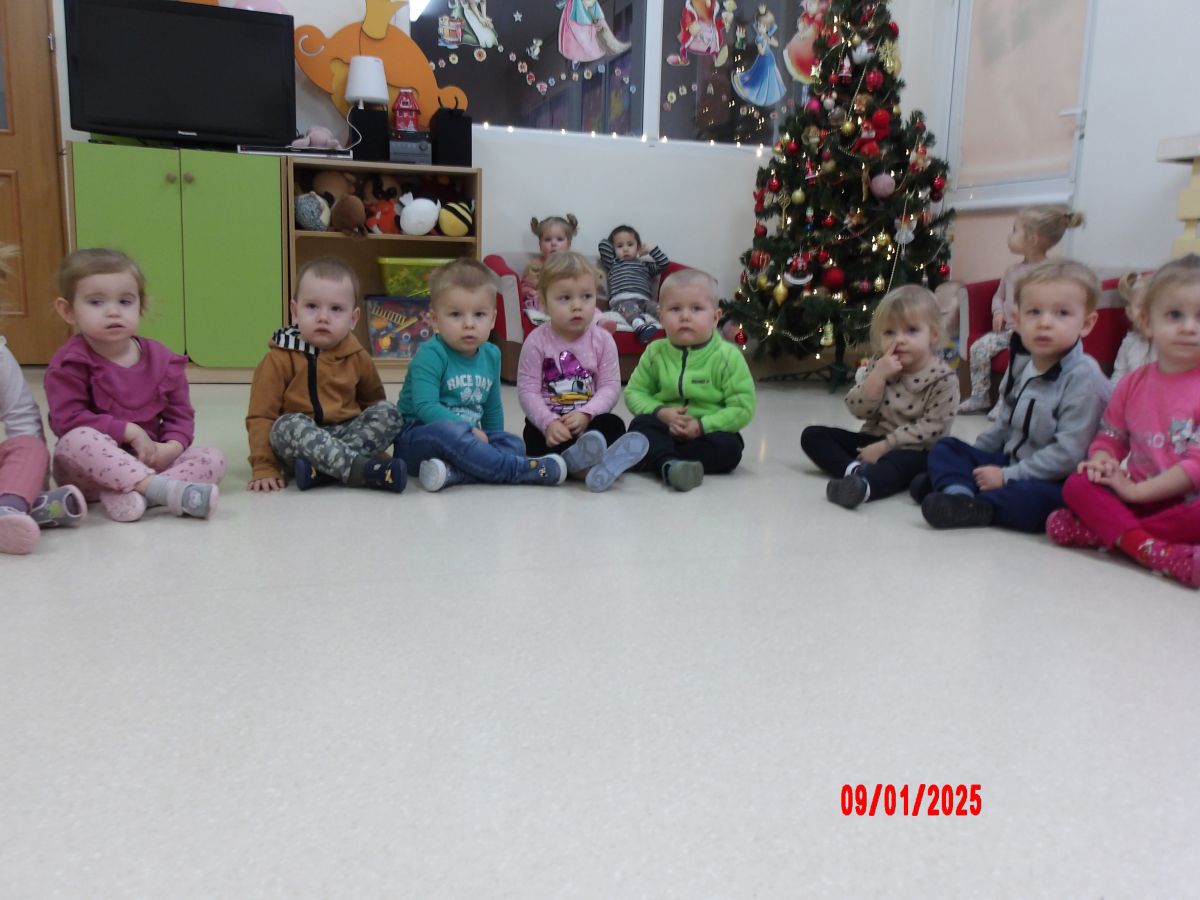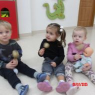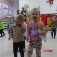 Na zajęciach rytmiki, dzieci w oczekiwaniu na zimę, bawiły się śnieżkami do piosenki "Przyszła zima biała". Muzyczną orkiestrę Średniaczki stworzyły do utworów "Tupu Tup" oraz "Śnieżek prószy".