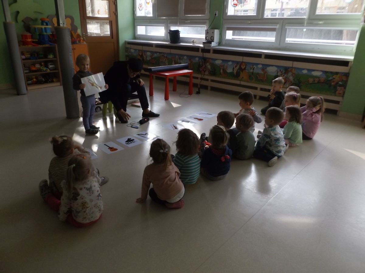 Opublikowano: pt., 02/21/2025 - 07:50 Dzieciaki poznały dziś mnóstwo nowych instrumentów, słuchały jak one brzmią oraz pięknie rozpoznawały je potem na obrazkach.