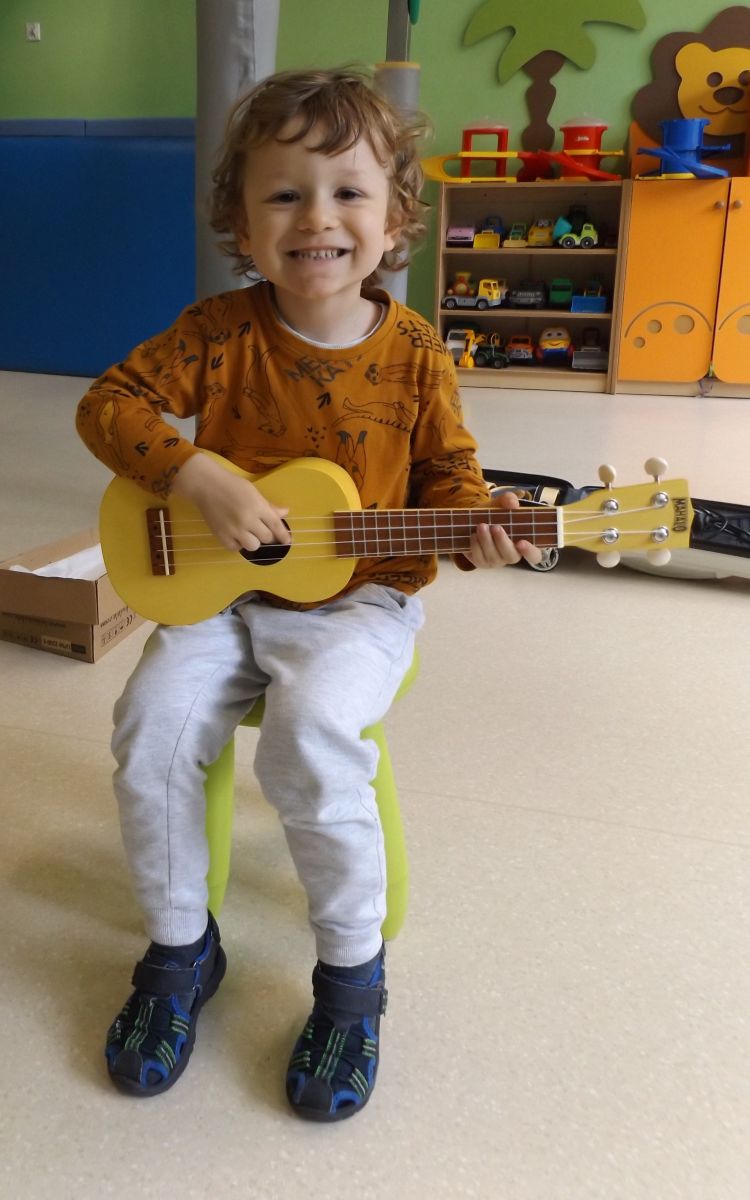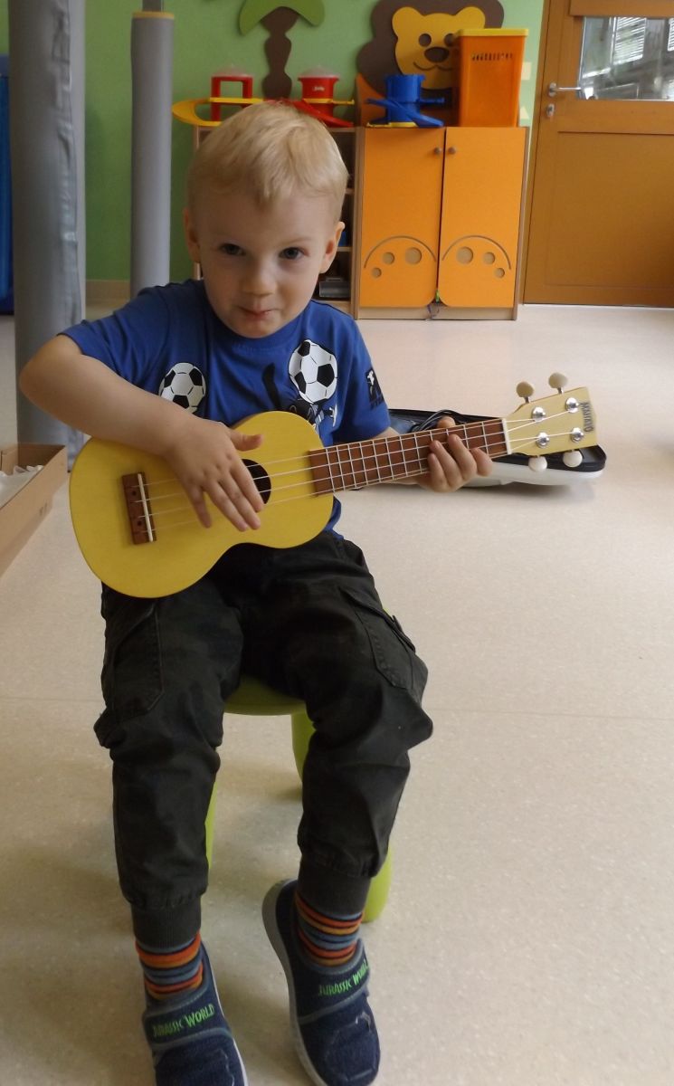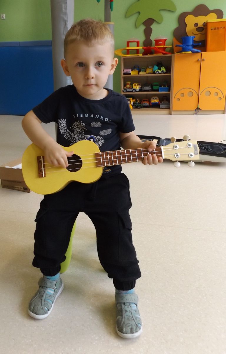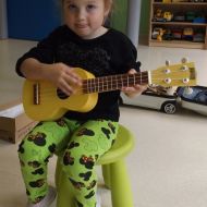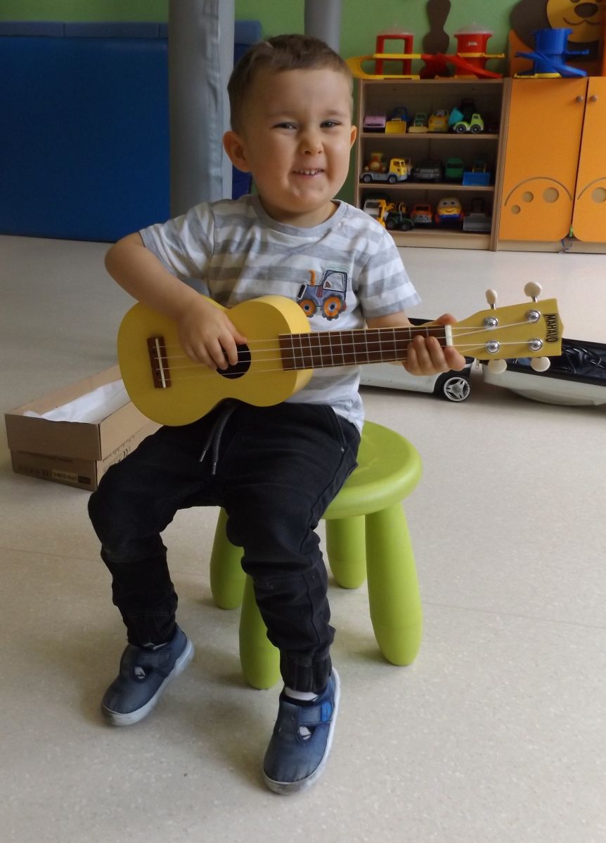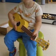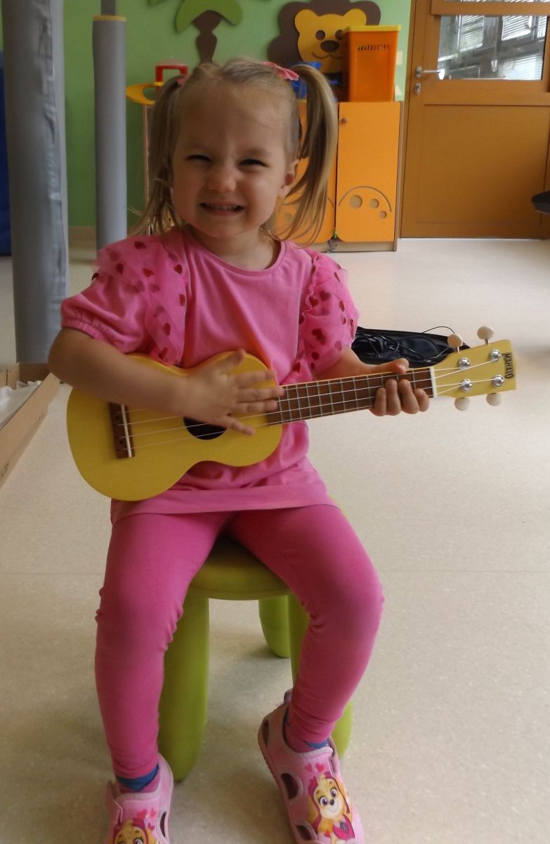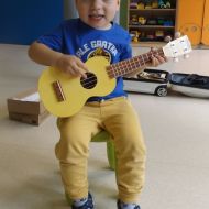 Opublikowano: pt., 05/23/2025 - 12:28 Podczas dzisiejszej rytmiki dzieci poznały oraz próbowały zagrać na ukulele. Na grzechotkach i kastanietach wraz z ciocią Anią grały utwór " Zagram dla mamy "a także tańczyły " Walczyka ulala ".