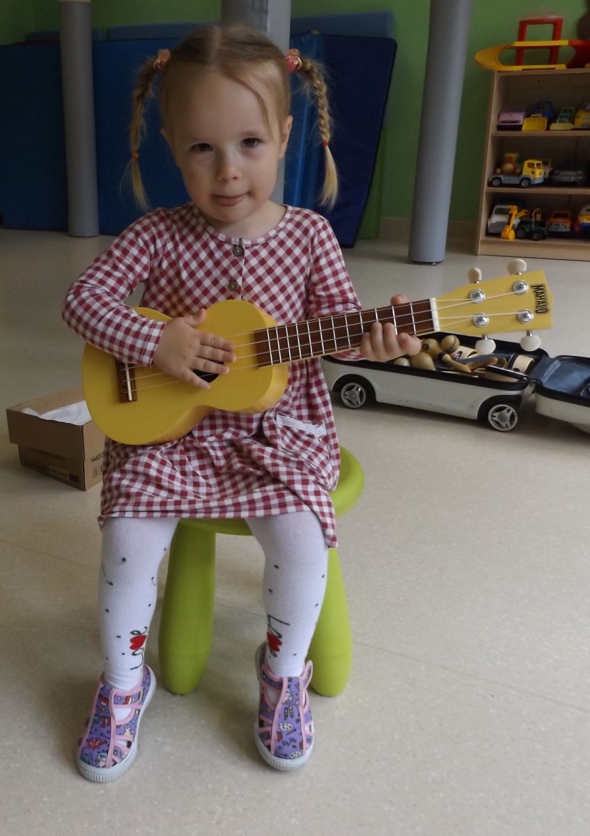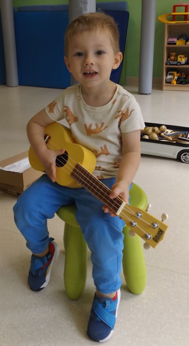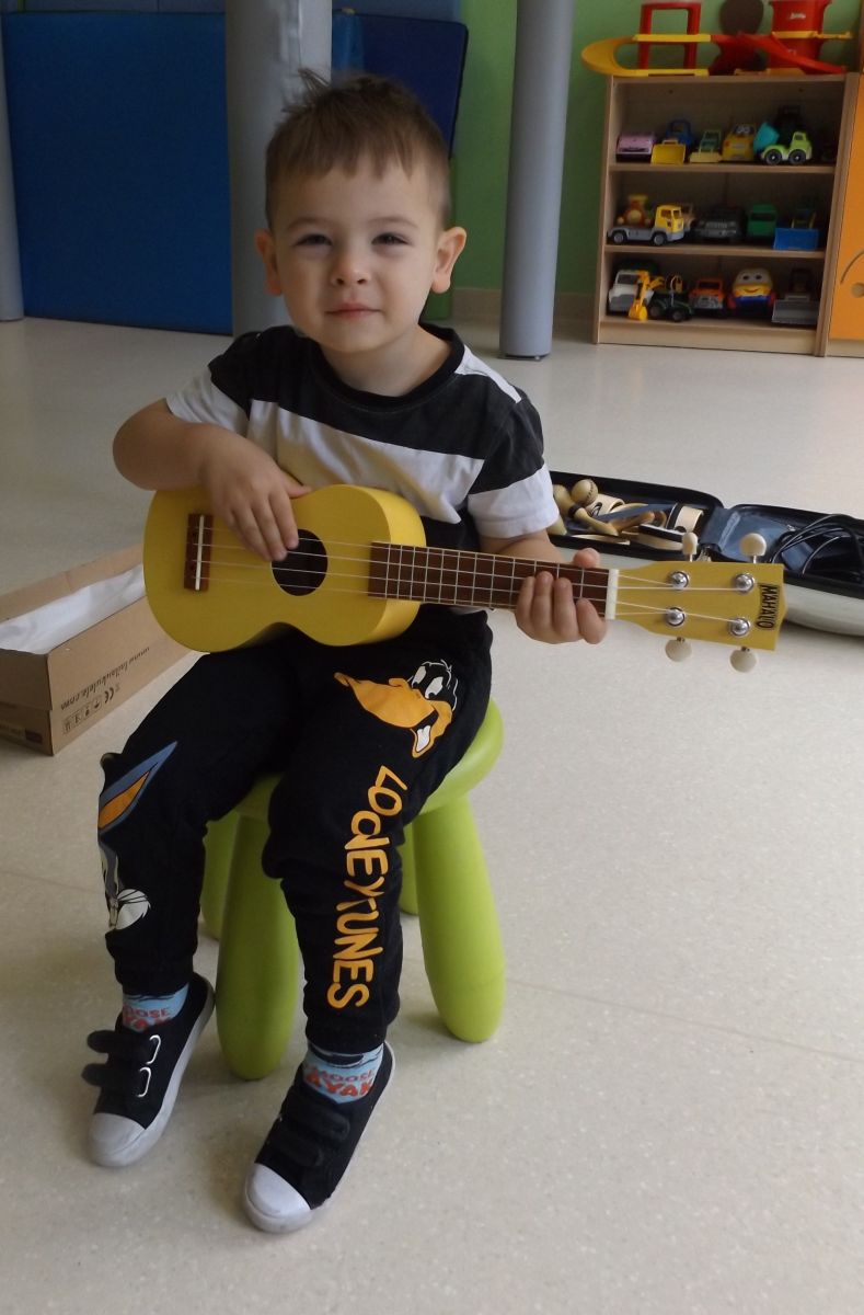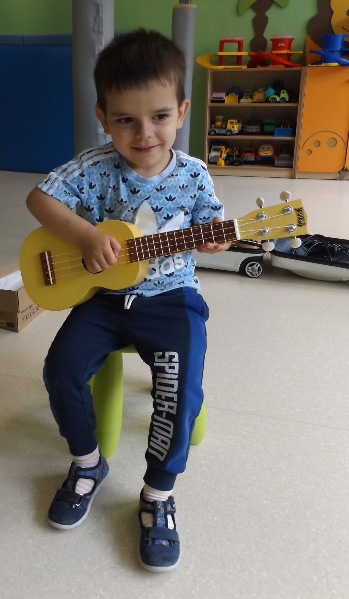 Opublikowano: pt., 05/23/2025 - 12:28 Podczas dzisiejszej rytmiki dzieci poznały oraz próbowały zagrać na ukulele. Na grzechotkach i kastanietach wraz z ciocią Anią grały utwór " Zagram dla mamy "a także tańczyły " Walczyka ulala ".
