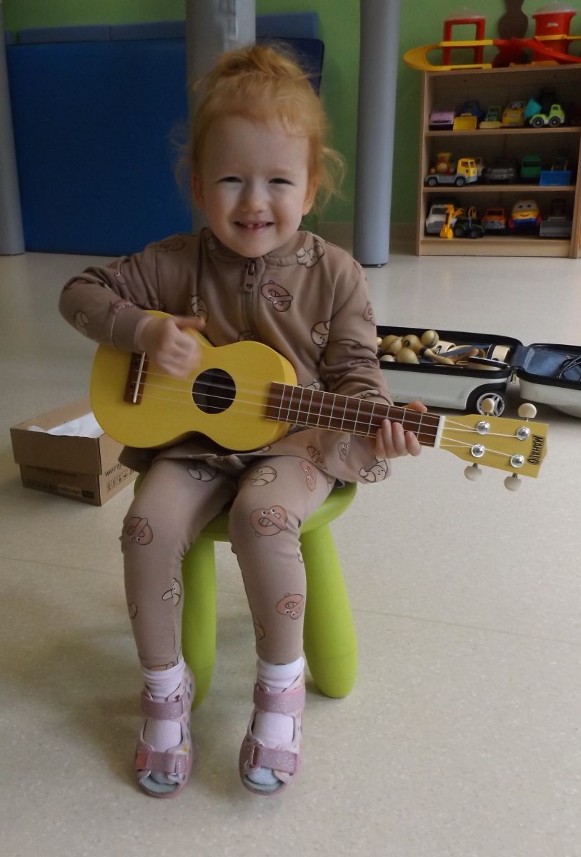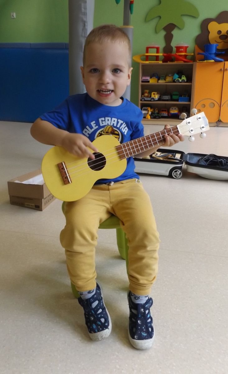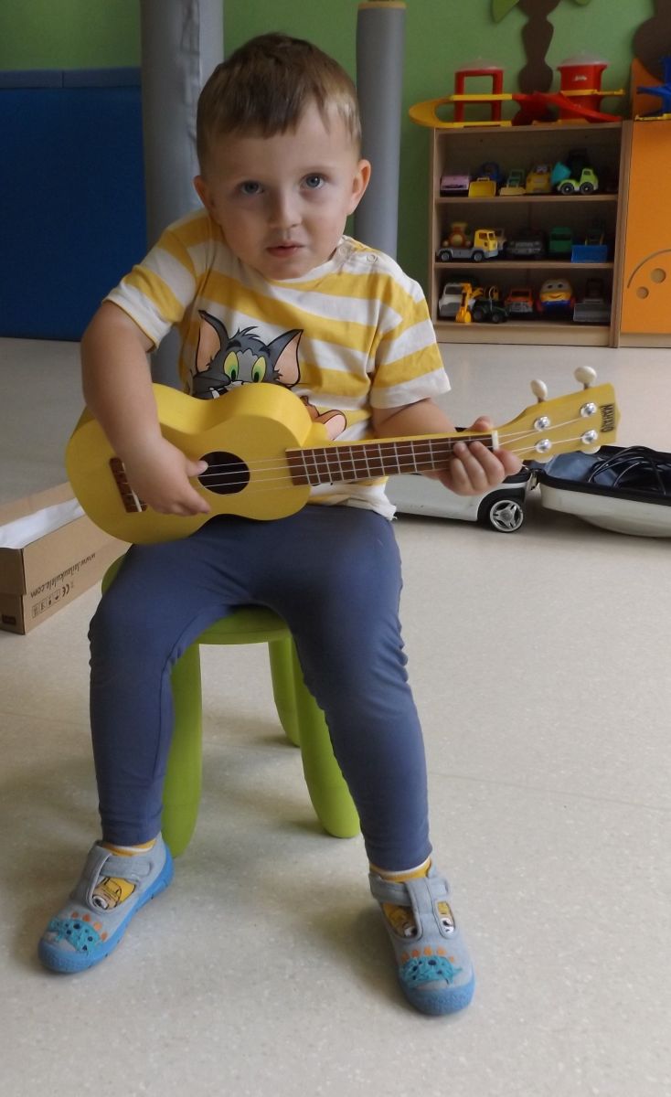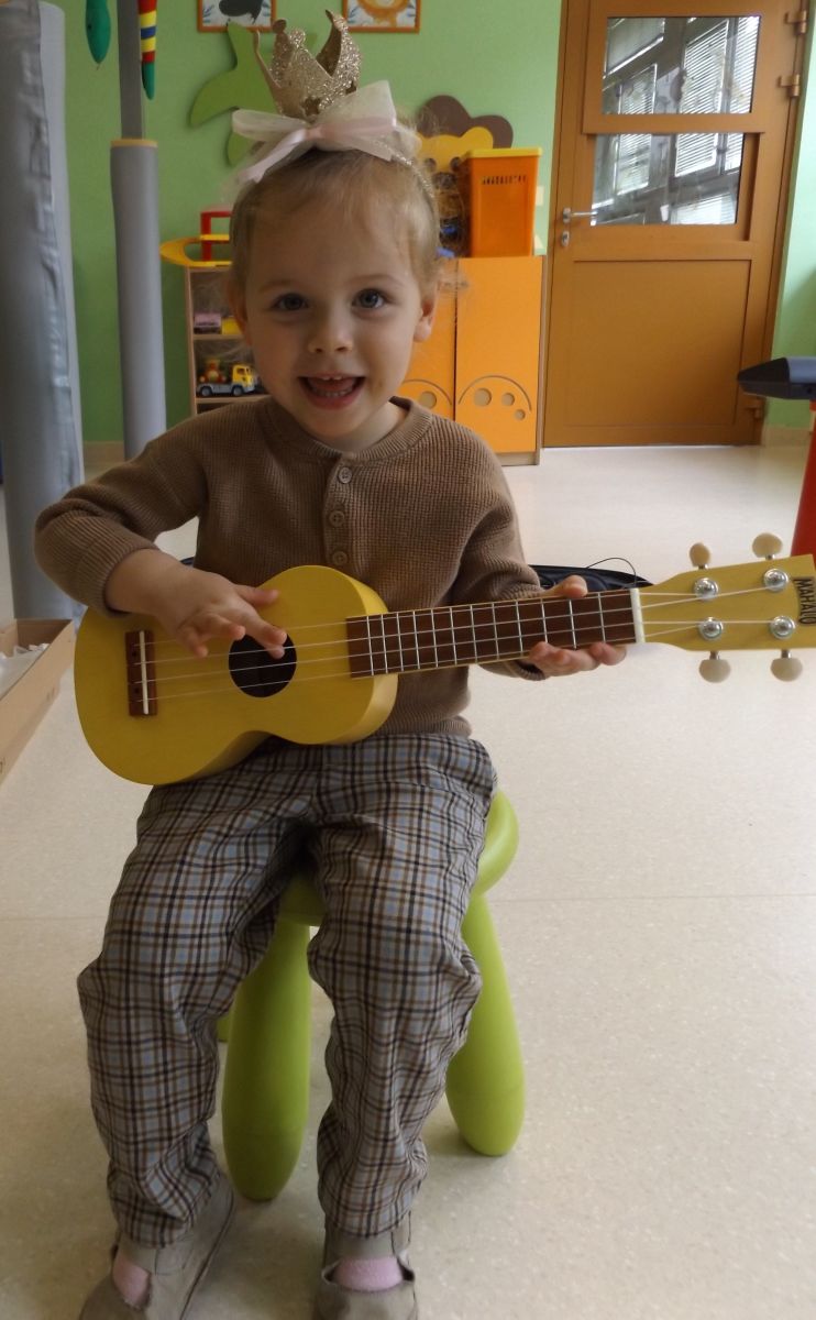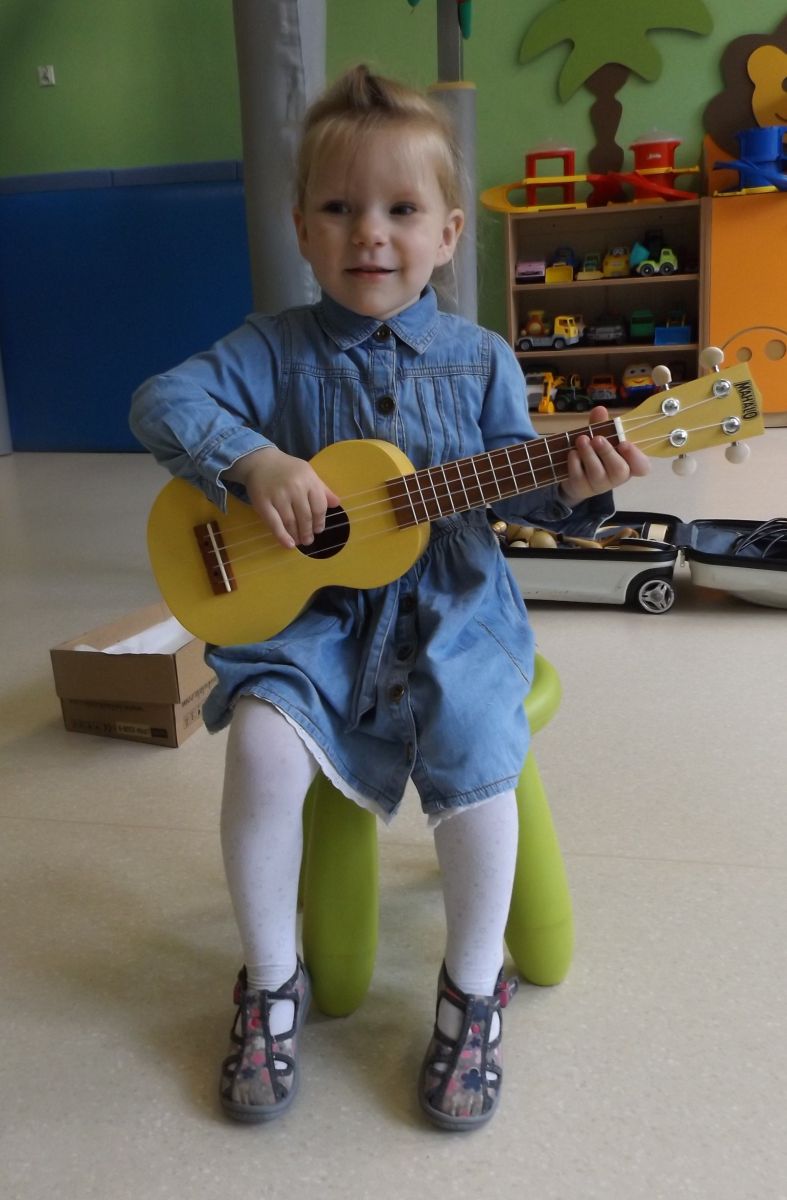 Opublikowano: pt., 05/23/2025 - 12:28 Podczas dzisiejszej rytmiki dzieci poznały oraz próbowały zagrać na ukulele. Na grzechotkach i kastanietach wraz z ciocią Anią grały utwór " Zagram dla mamy "a także tańczyły " Walczyka ulala ".