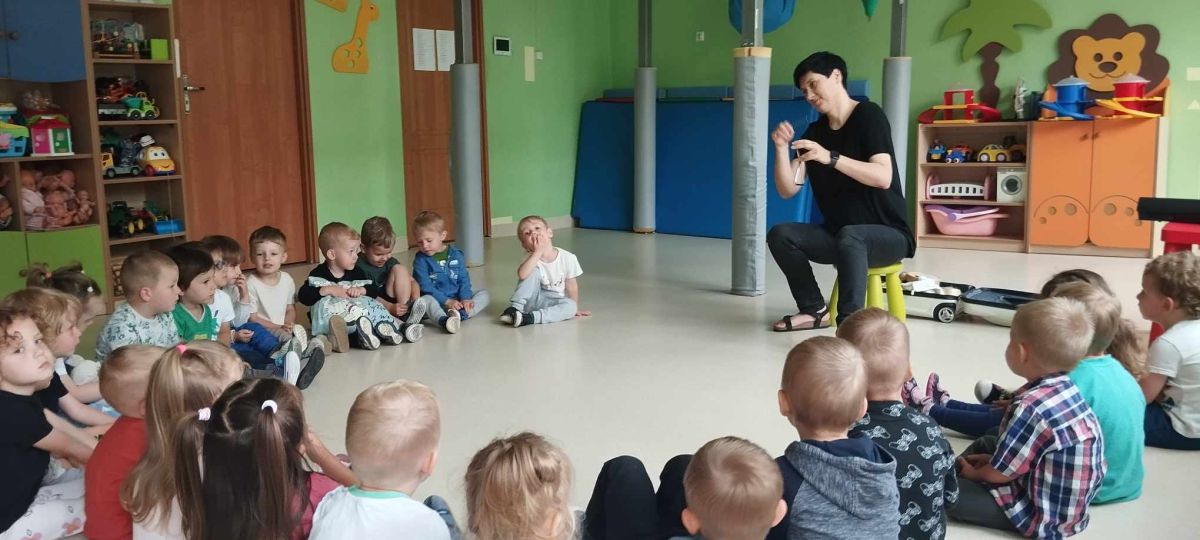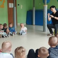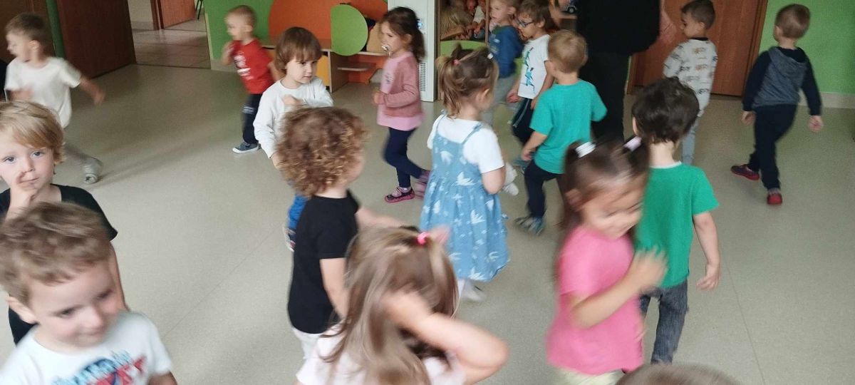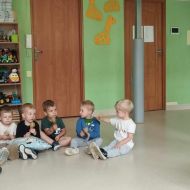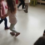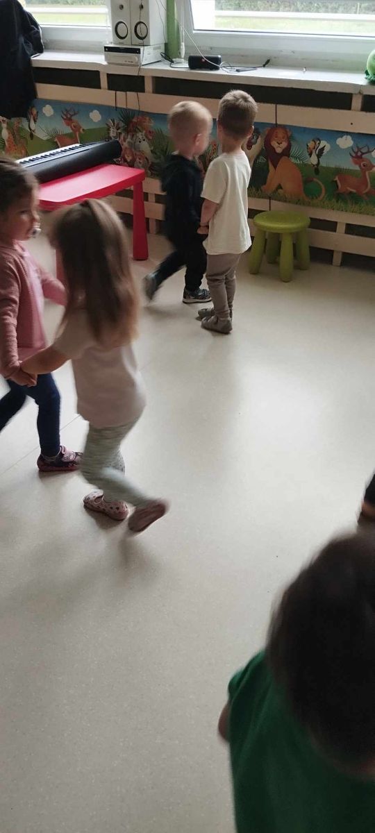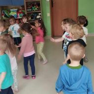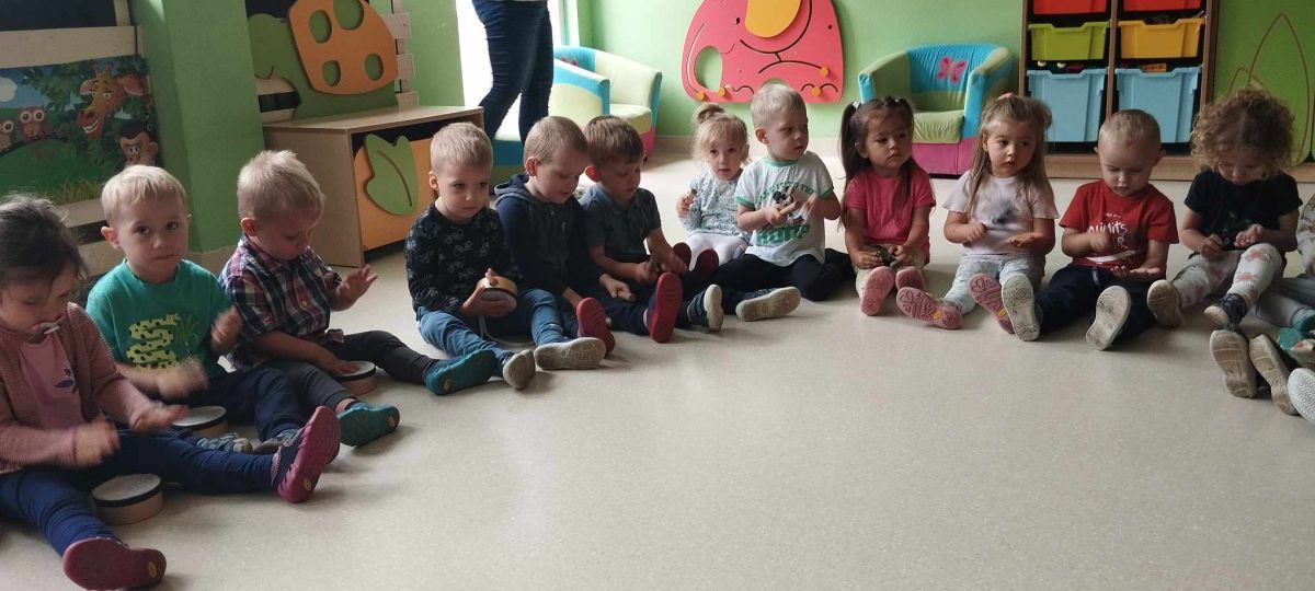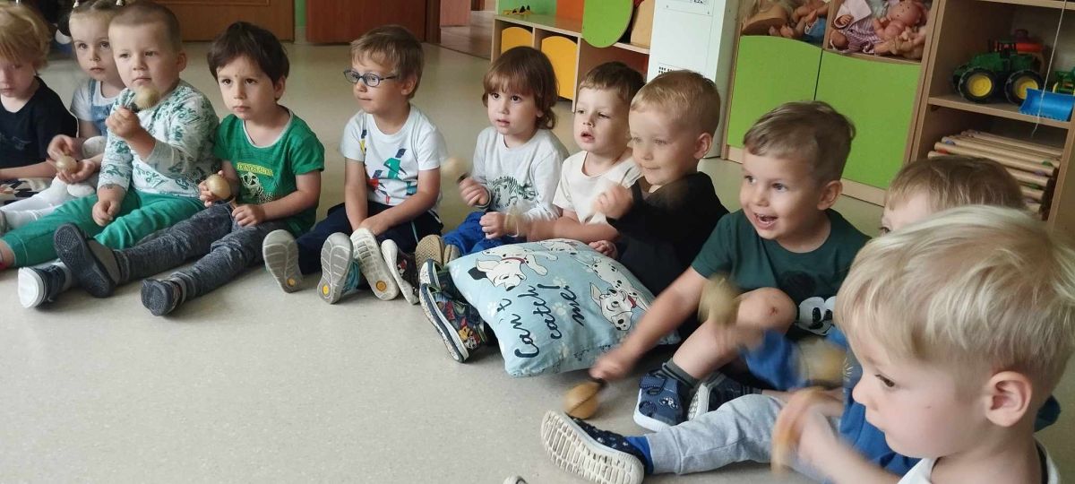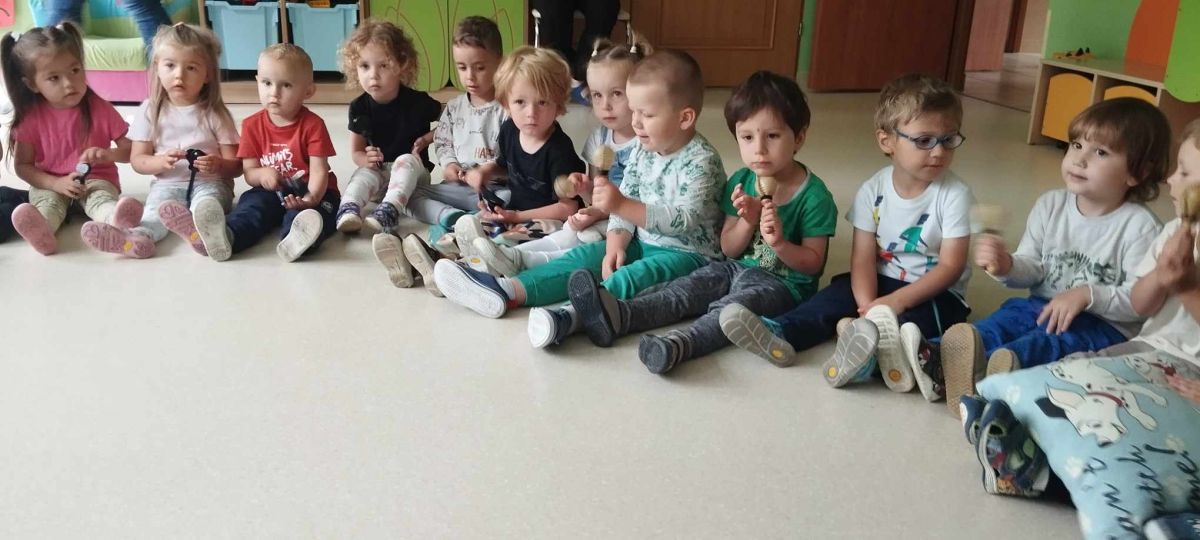 Podczas poniedziałkowych zajęć z rytmiki dzieci miały możliwość wysłuchania odgłosów owadów, które spotkać można wiosną na łące. Zatańczyły również do piosenki "Motylki i żuki" oraz "Walc ulele". Na koniec dzieci zagrały na instrumentach w rytm piosenki "Wiosenny bal".