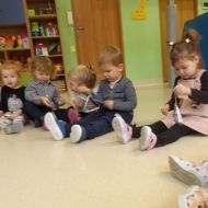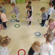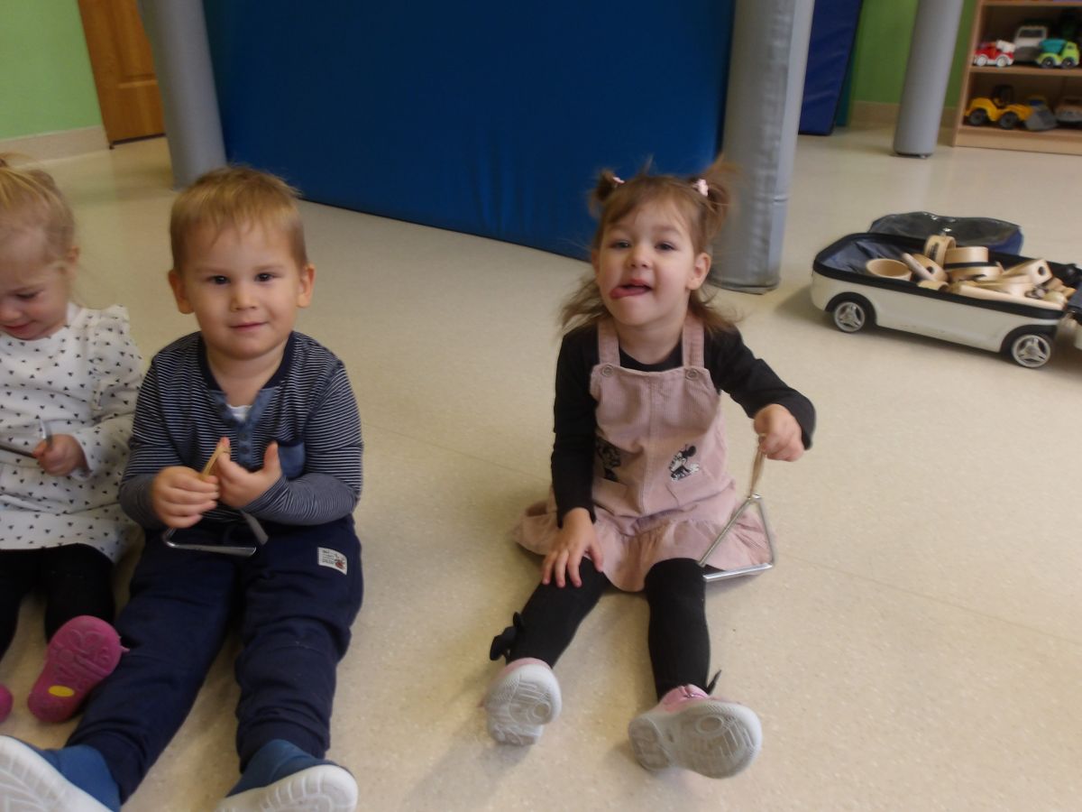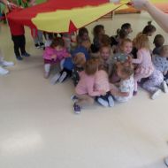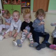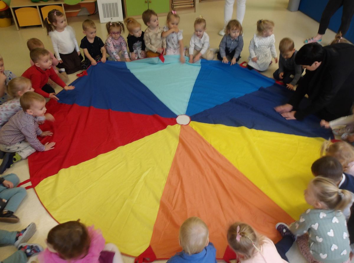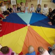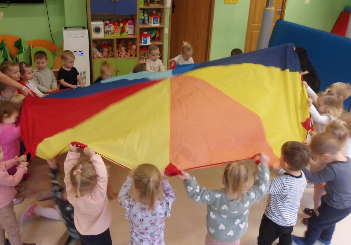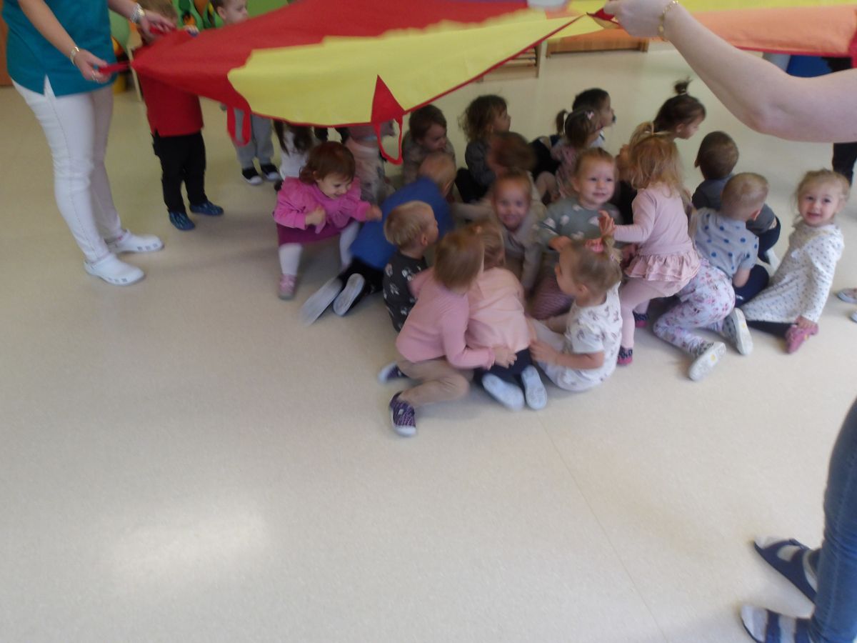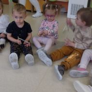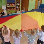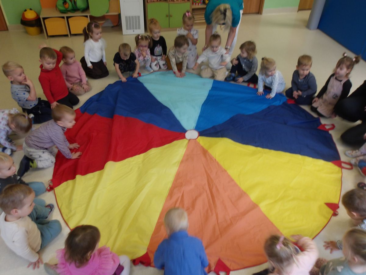 Opublikowano: pon., 11/18/2024 - 14:02 Podczas rytmiki dzieci chowały się przed deszczem pod chustą animacyjną, '' Listopadową piosenkę '' zagrały na trójkątach oraz spacerowały po kałużach do piosenki " Kałużowy deszczyk ".