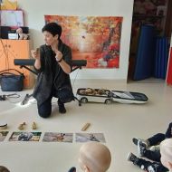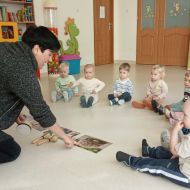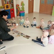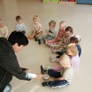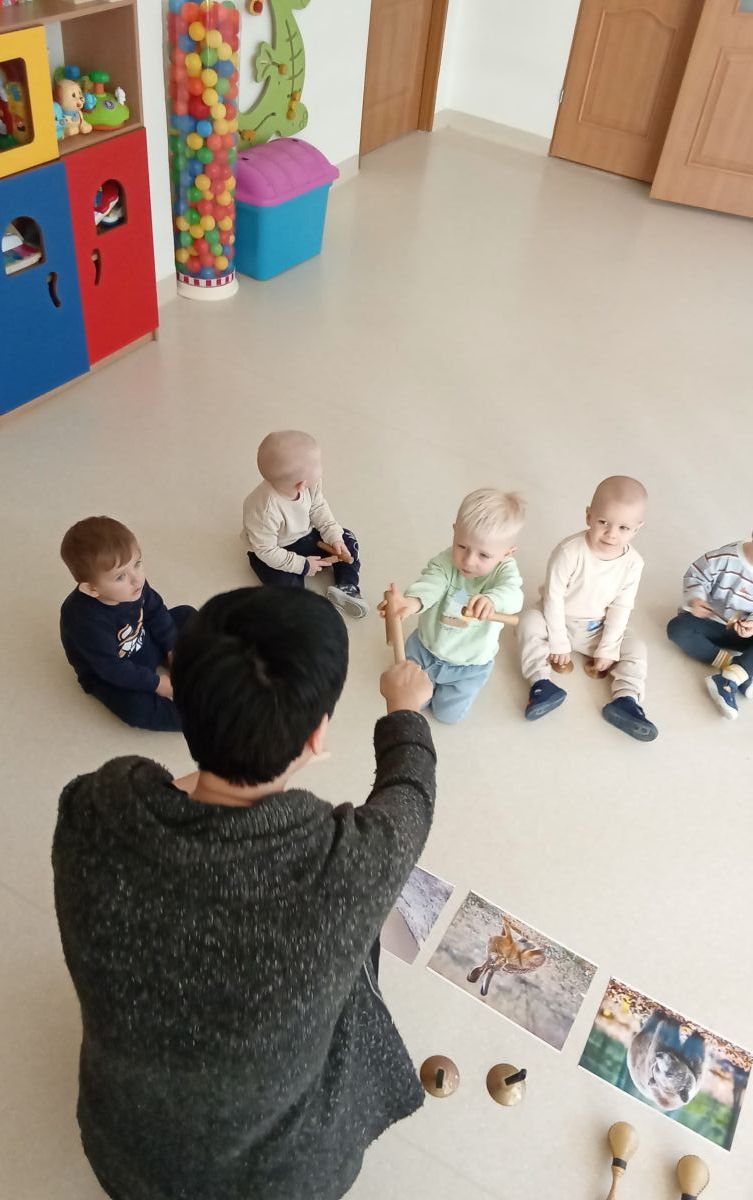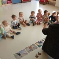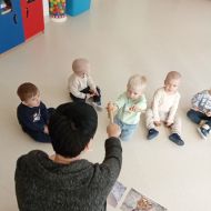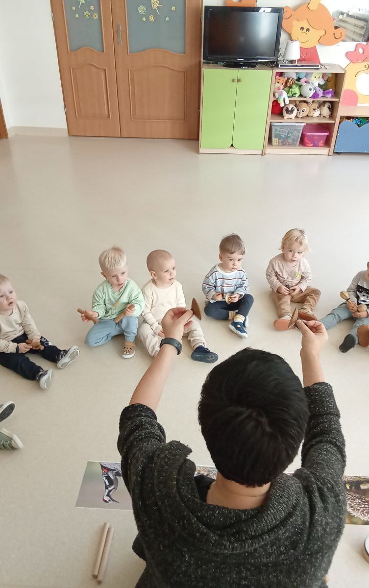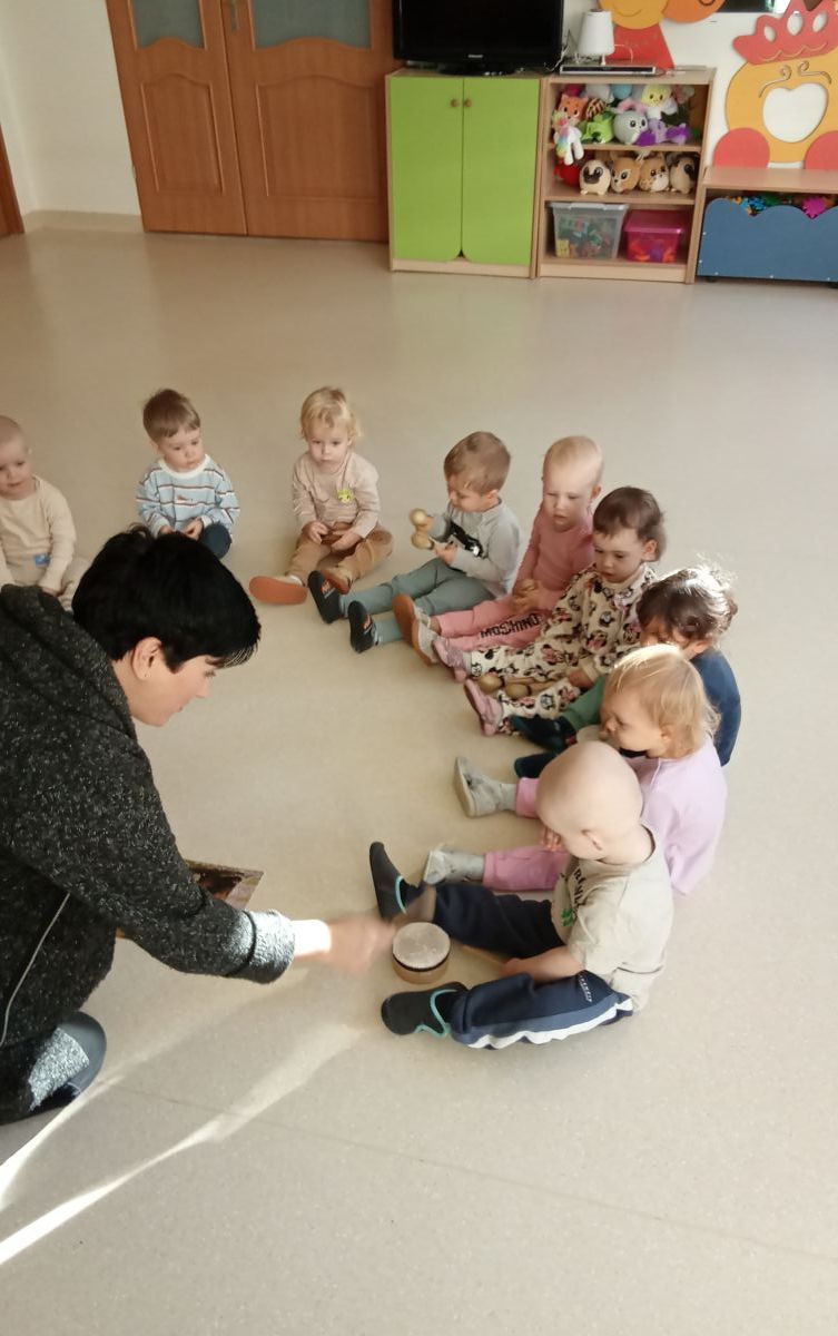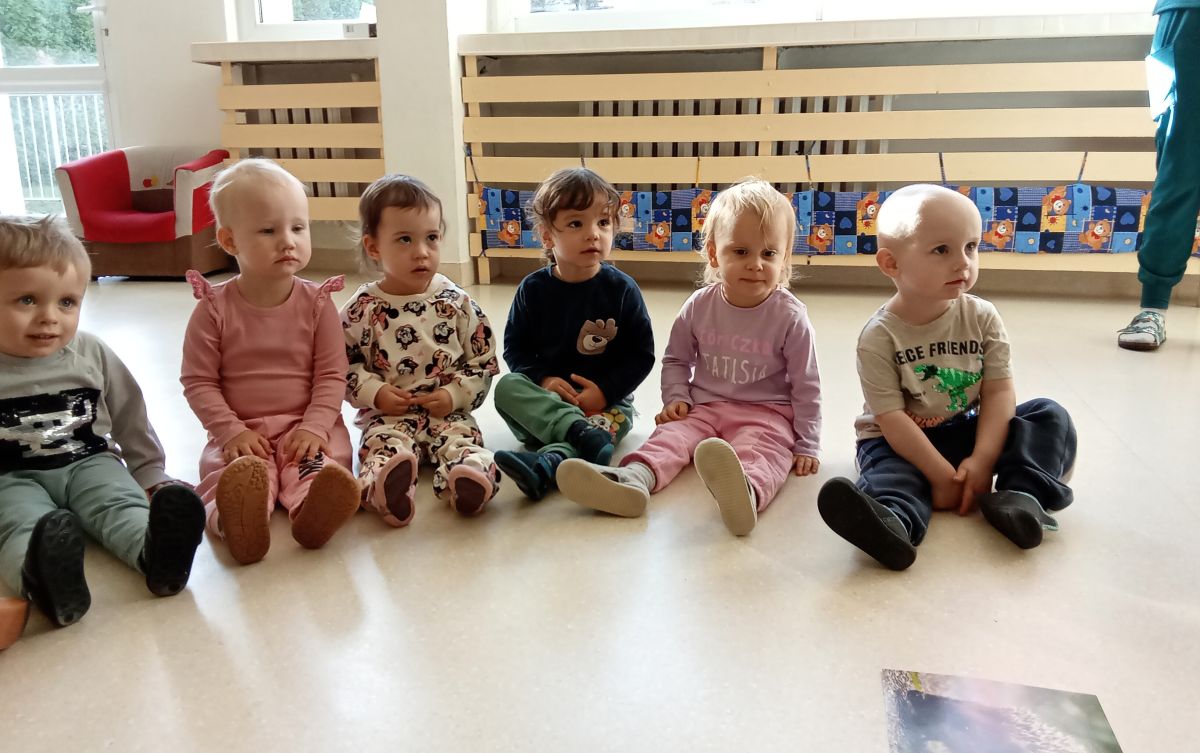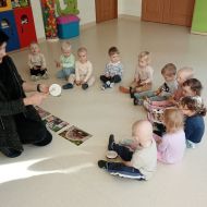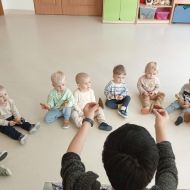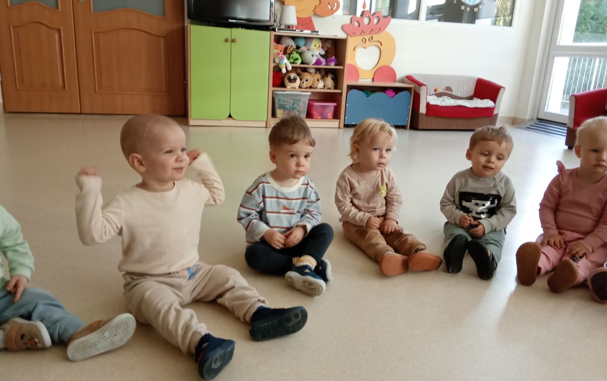 Opublikowano: czw., 11/06/2025 - 08:31 Jesienna rytmika przebiegała przy piosenkach: "Mały jeżyk" oraz "Panie Kasztanie Perkusisto!".Dzieci razem z jeżykiem grały na bębenku, z niedźwiadkiem na grzechotkach, z zajączkiem na talerzach, a z dzięciołem na klawesynie.