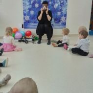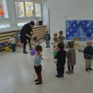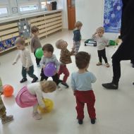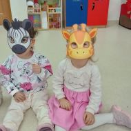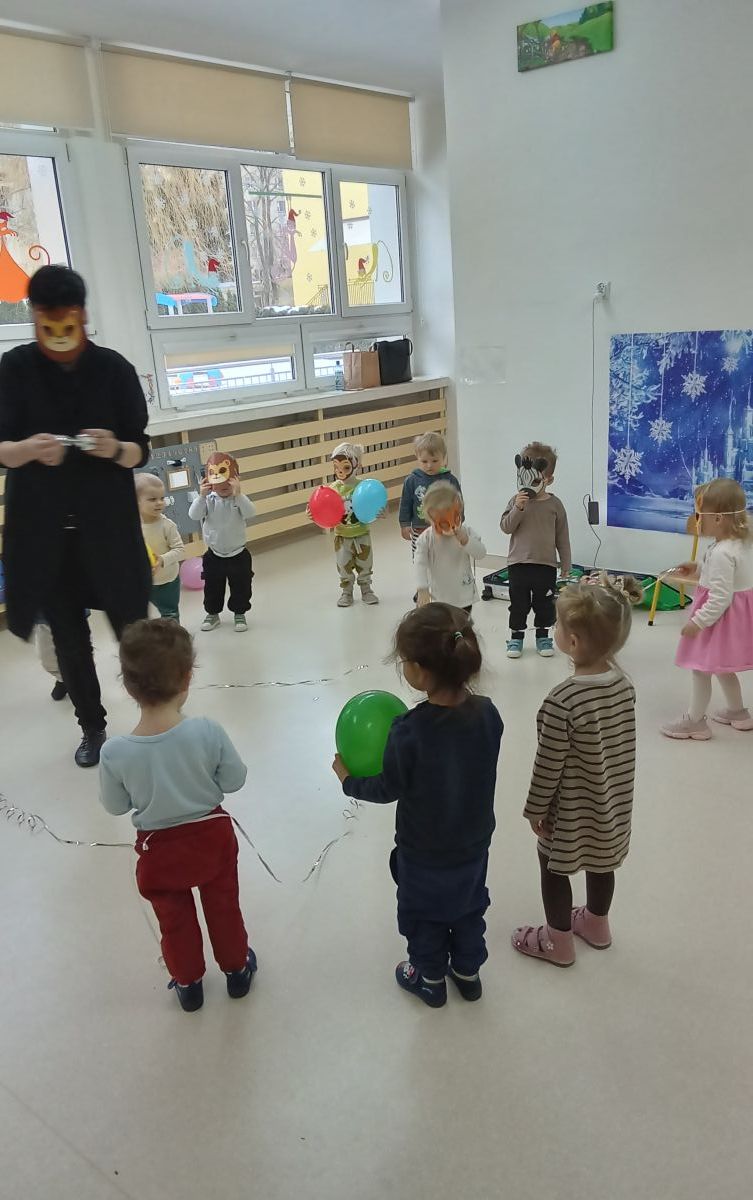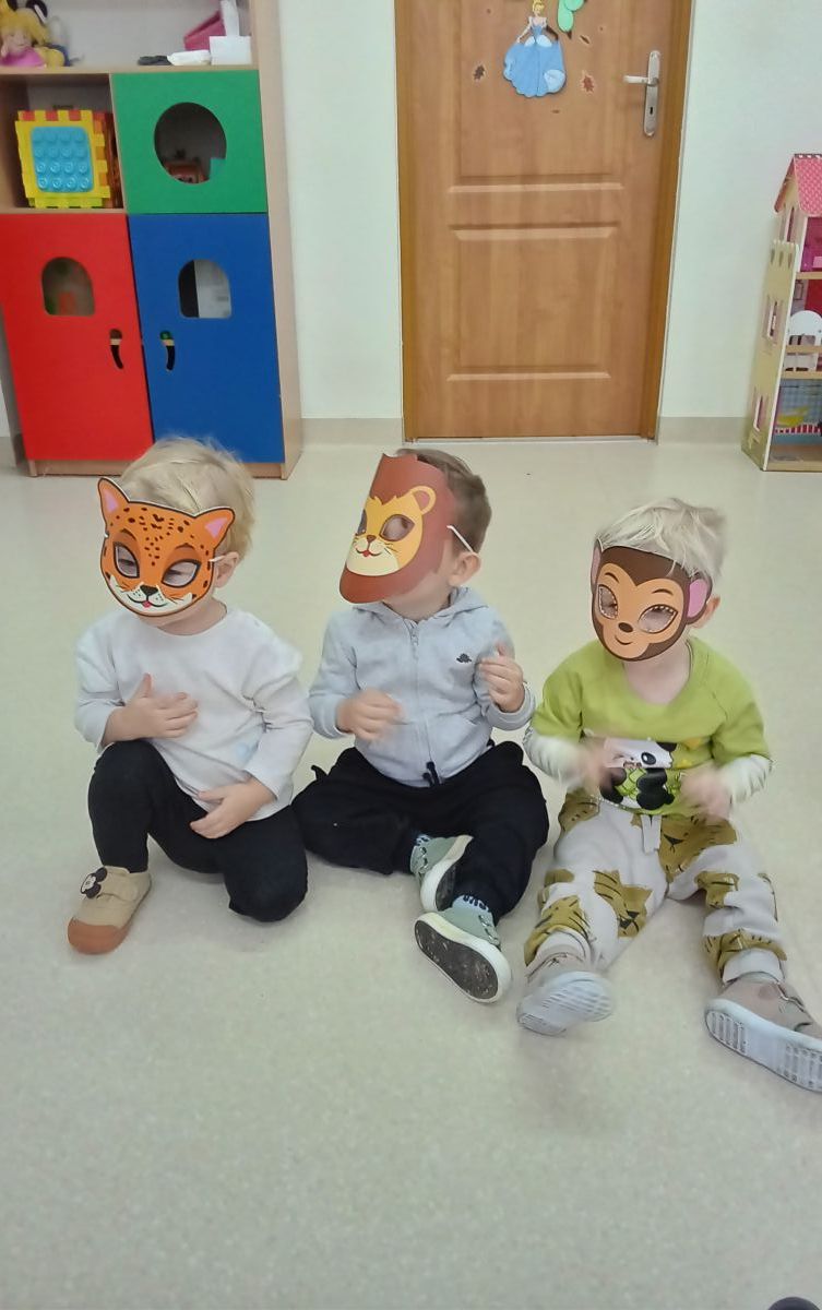 Odbyła się dynamiczna zabawa z balonami, która od uczestników wymagała wiele zwinności. Następnie, dla chętnych, były przygotowane maski, a wśród nich: żyrafy, zebry, słonie, lwy...