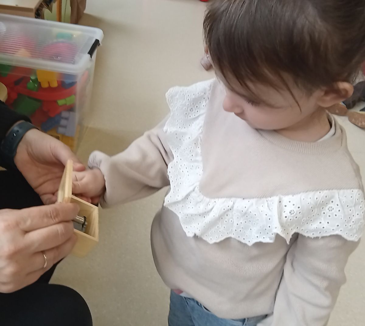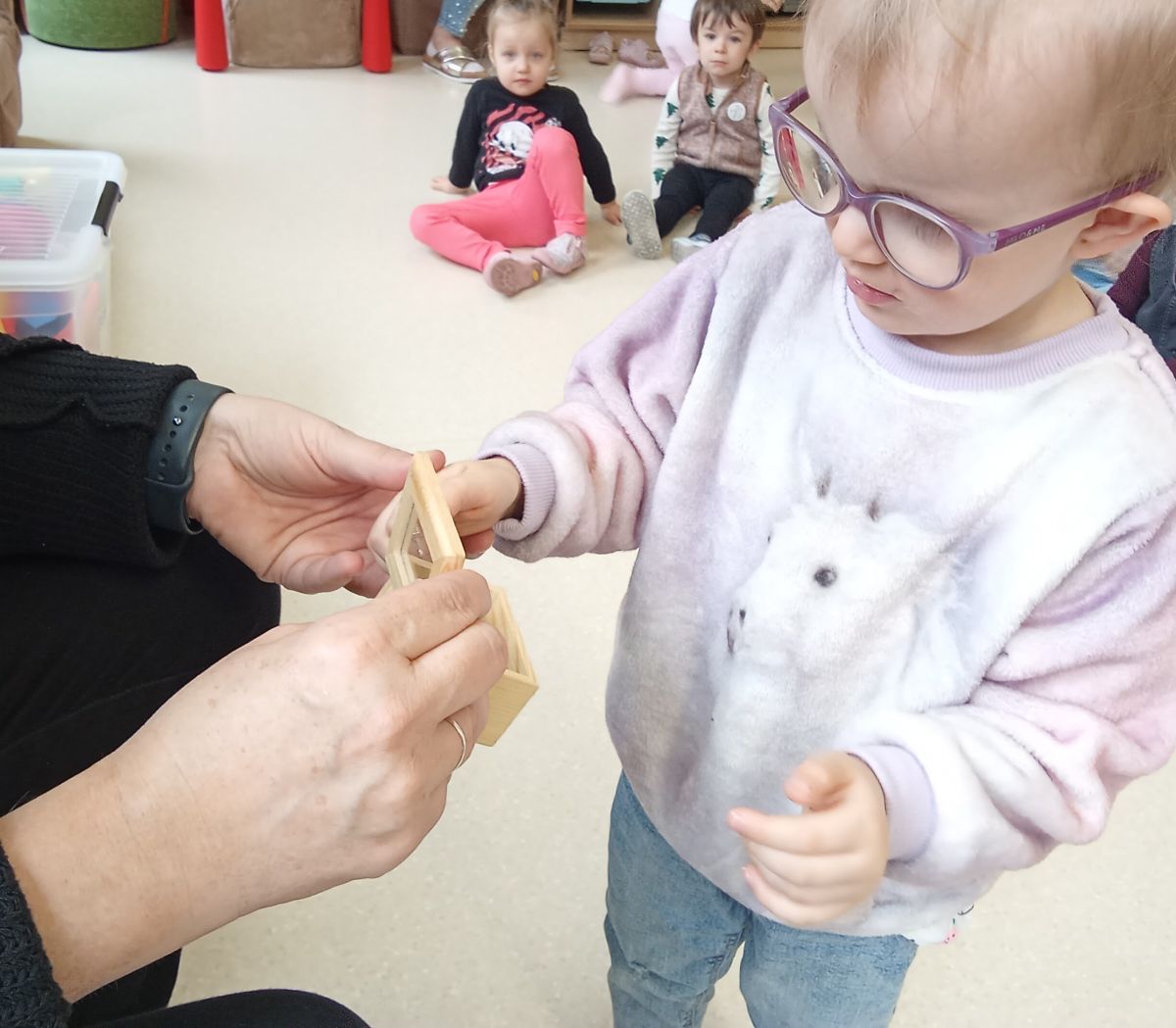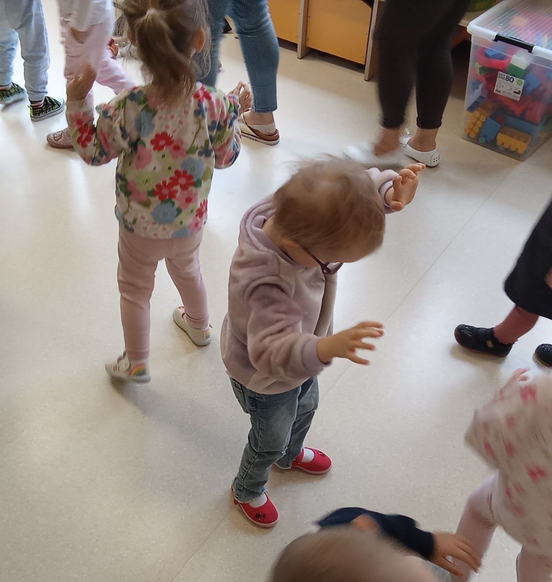 Opublikowano: czw., 12/04/2025 - 12:32 Podczas rytmiki dzieci wysłuchały " Bajki o zepsutych zabawkach " z której dowiedziały się , że po zabawie zabawki należy posprzątać. Poznały także mechanizm pozytywki , który bardzo im się spodobał.