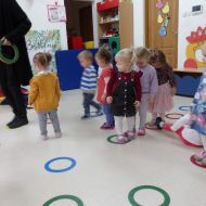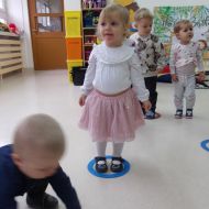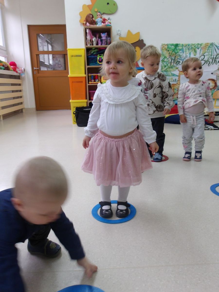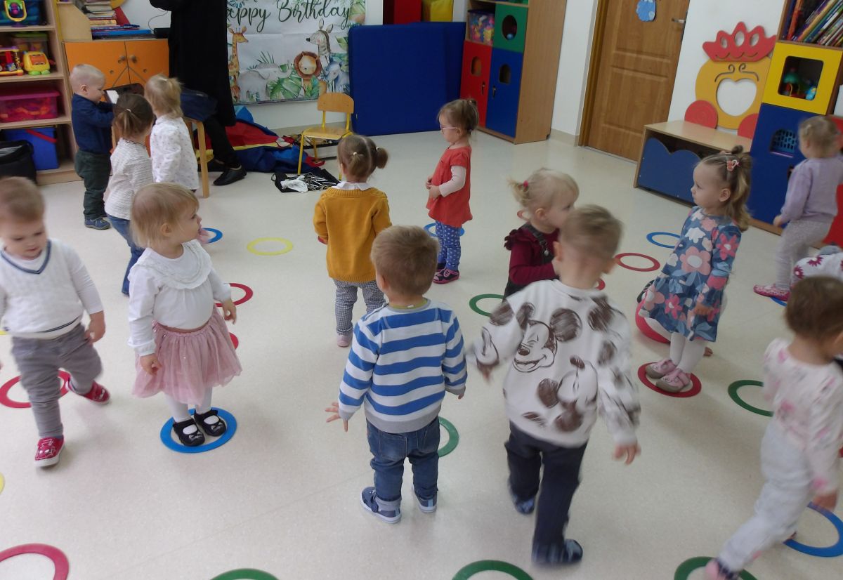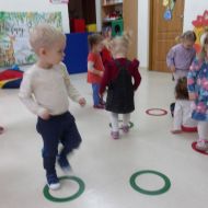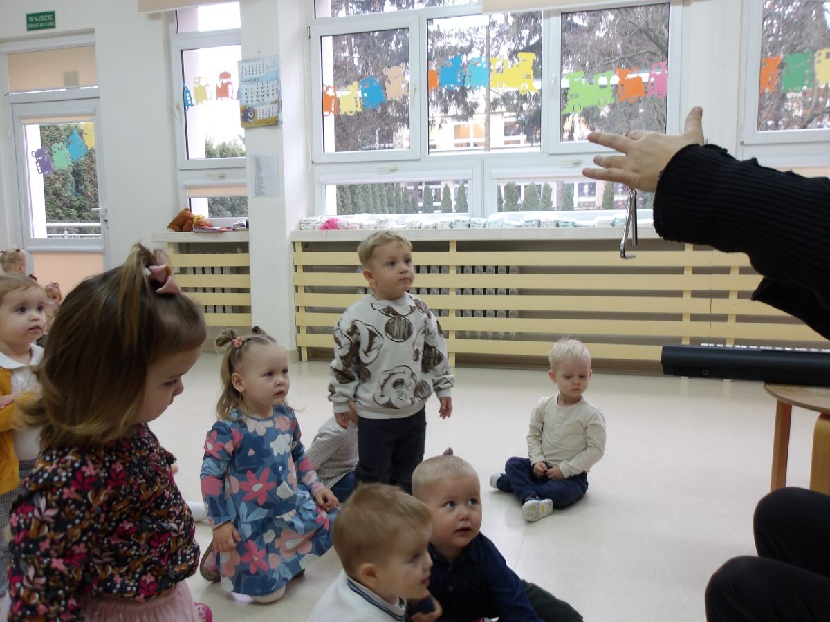 Podczas rytmiki dzieci przywoływały deszczyk przy użyciu chusty animacyjnej, z piosenką "Pada deszcz, szumią drzewa". "Listopadowa piosenka" w wykonaniu Średniaczków wybrzmiała na trójkątach.