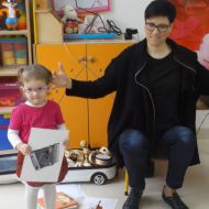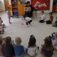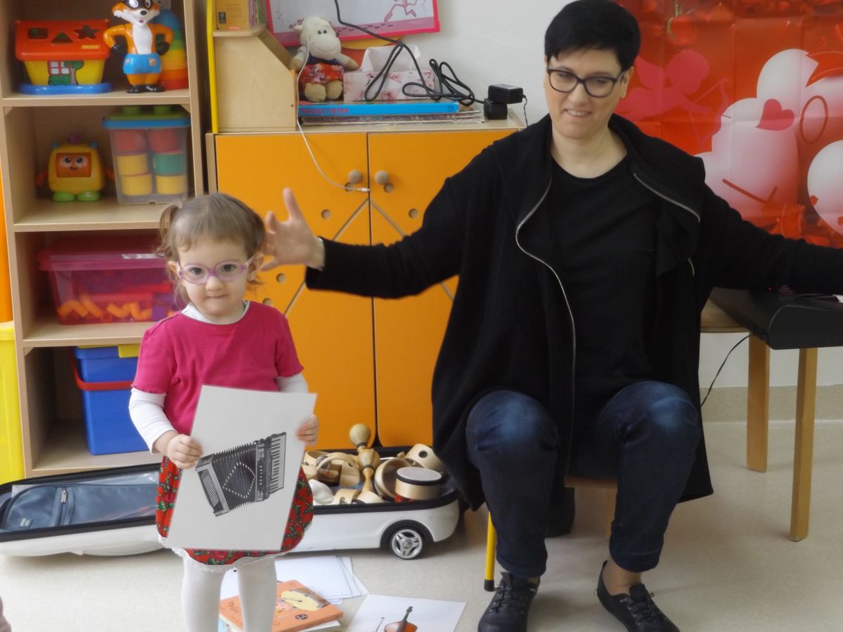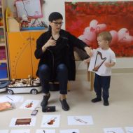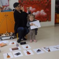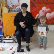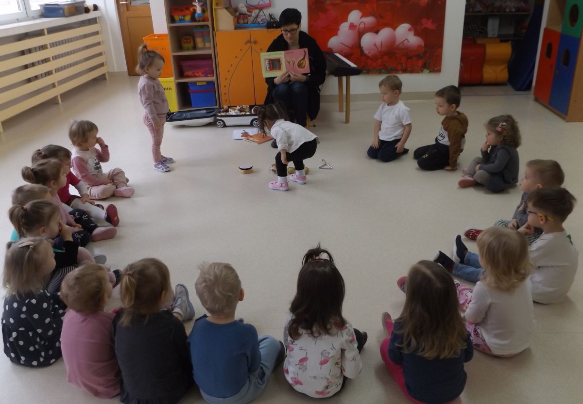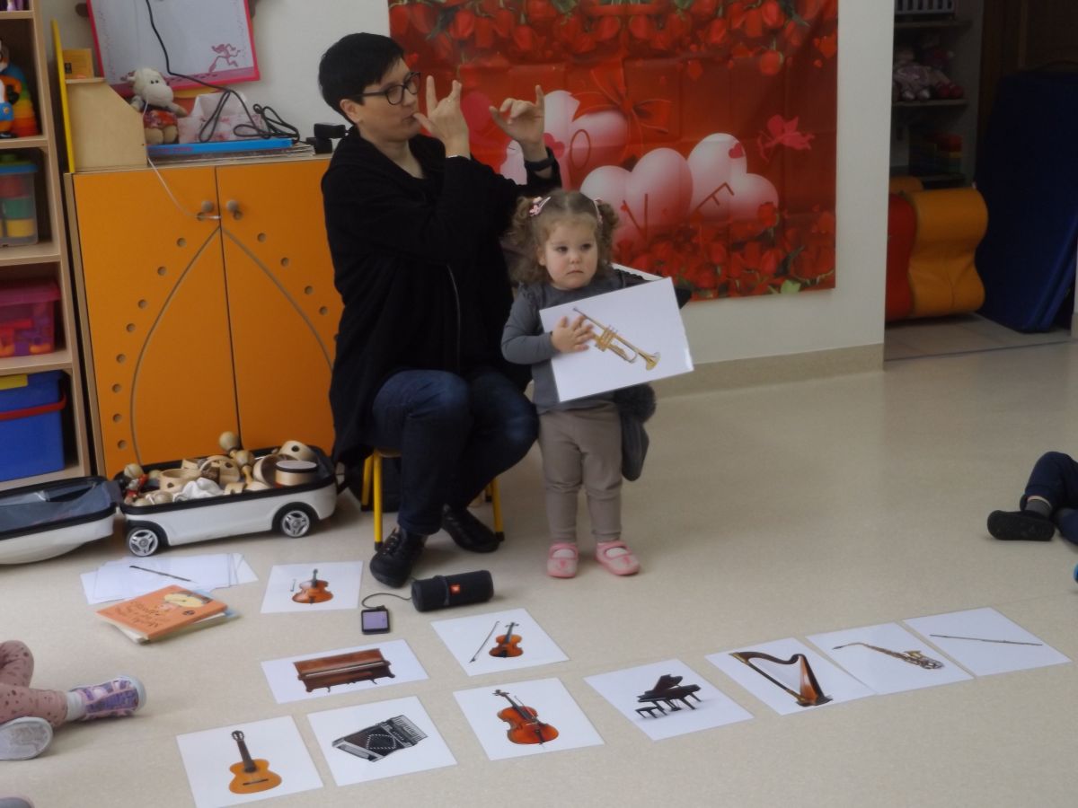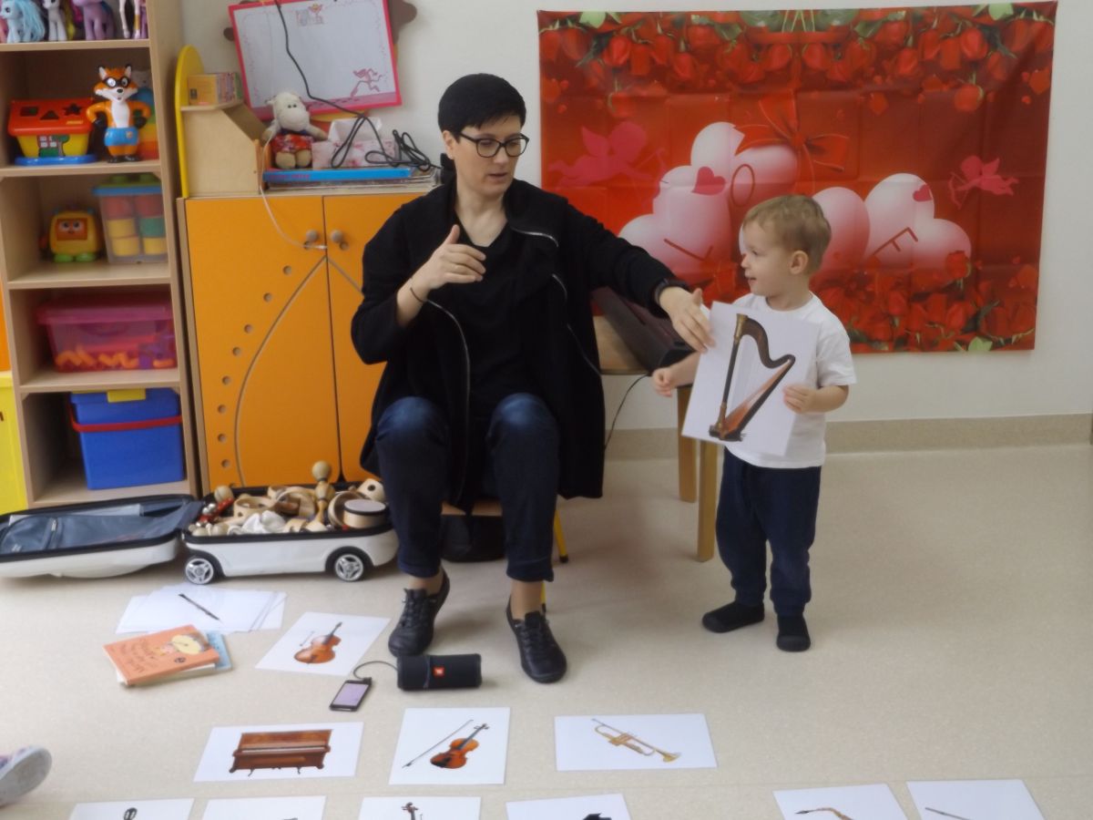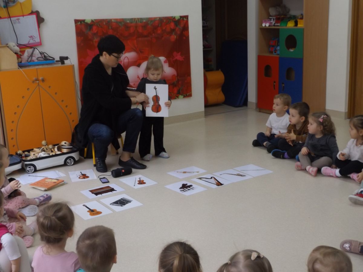 Dzieci oglądały książeczki z instrumentami, odgadywały nazwy instrumentów z usłyszanych dźwięków, słuchały instrumentów, a także ćwiczyły do słyszanych melodii.
