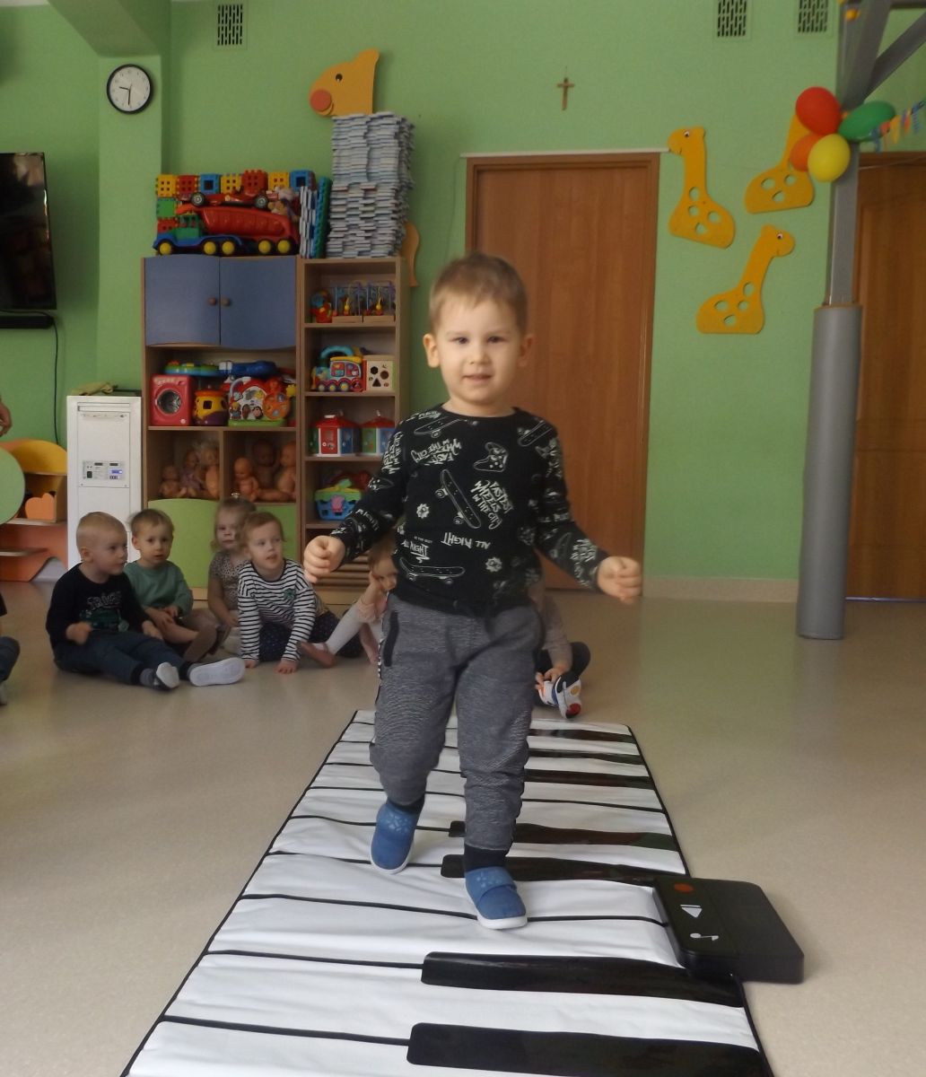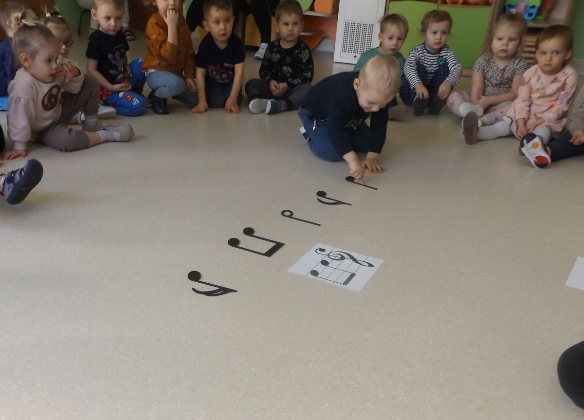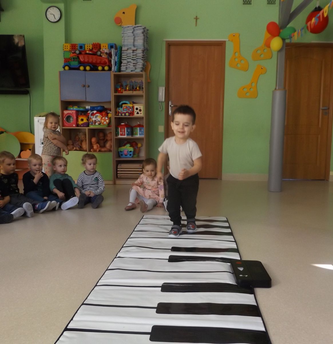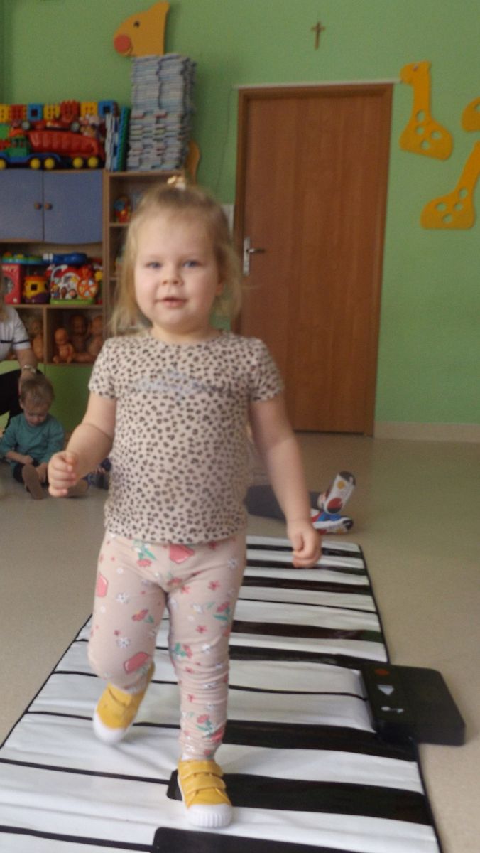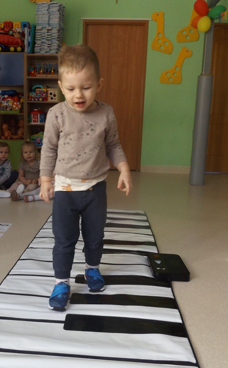 Podczas dzisiejszej rytmiki dzieciaki poznawały nutki, grały, tańczyły