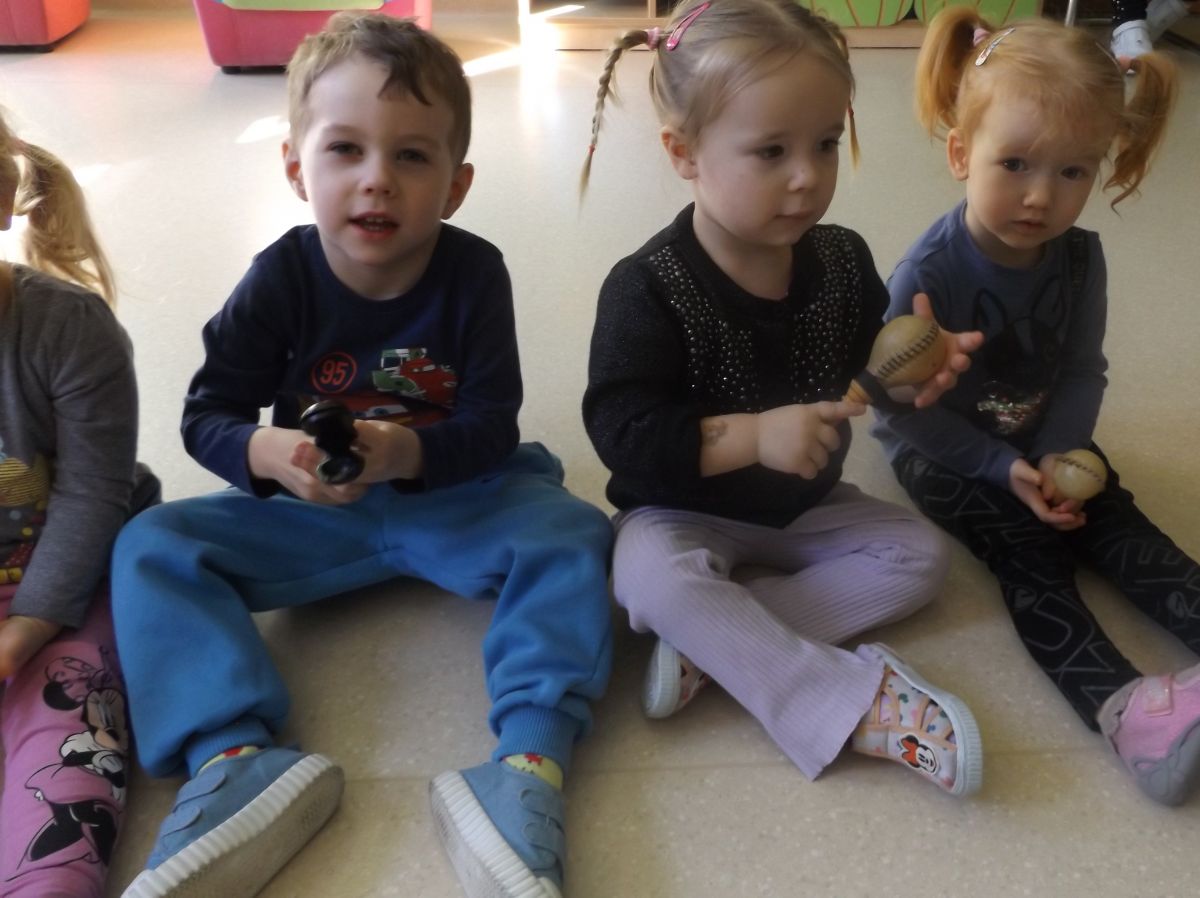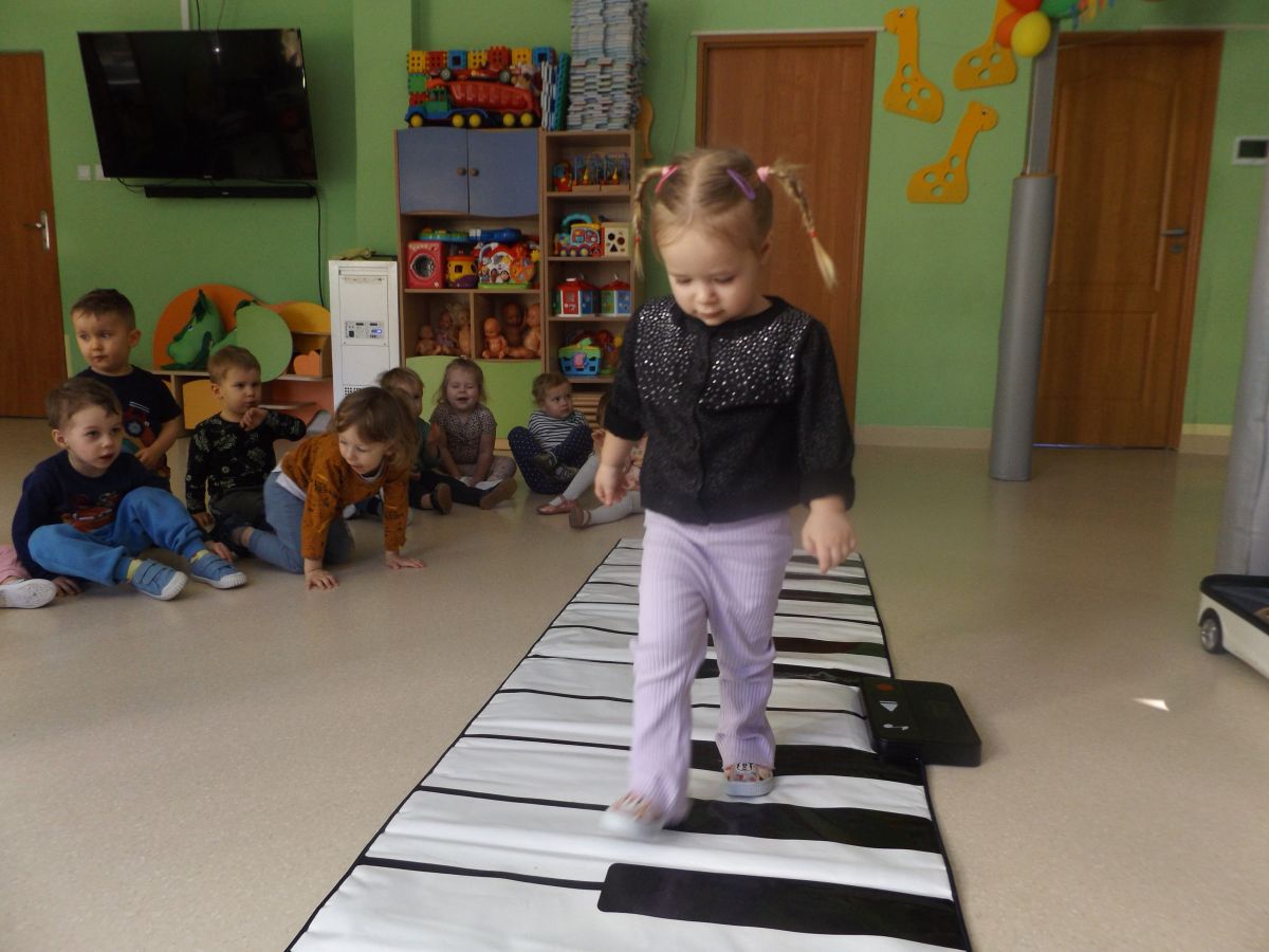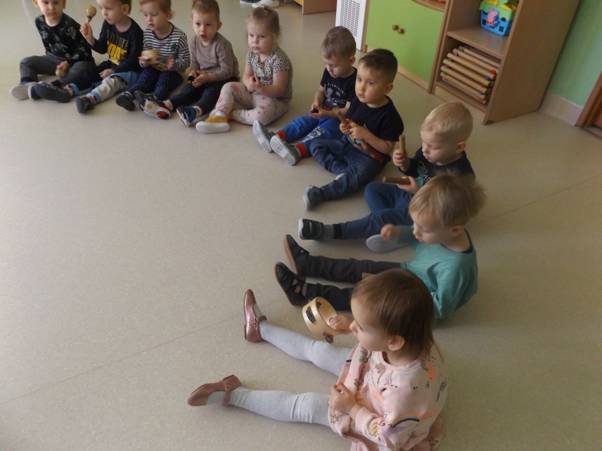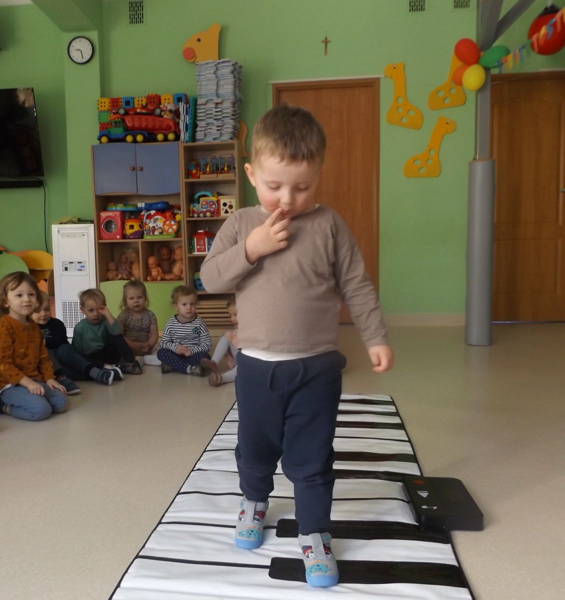 Podczas dzisiejszej rytmiki dzieciaki poznawały nutki, grały, tańczyły